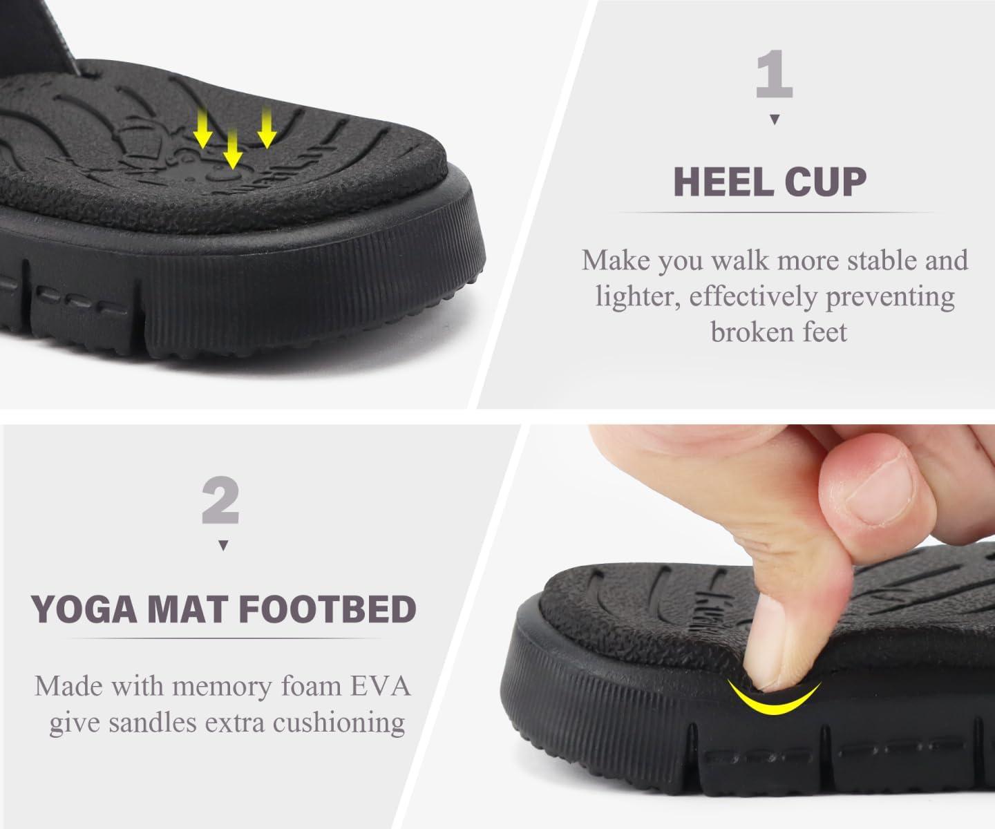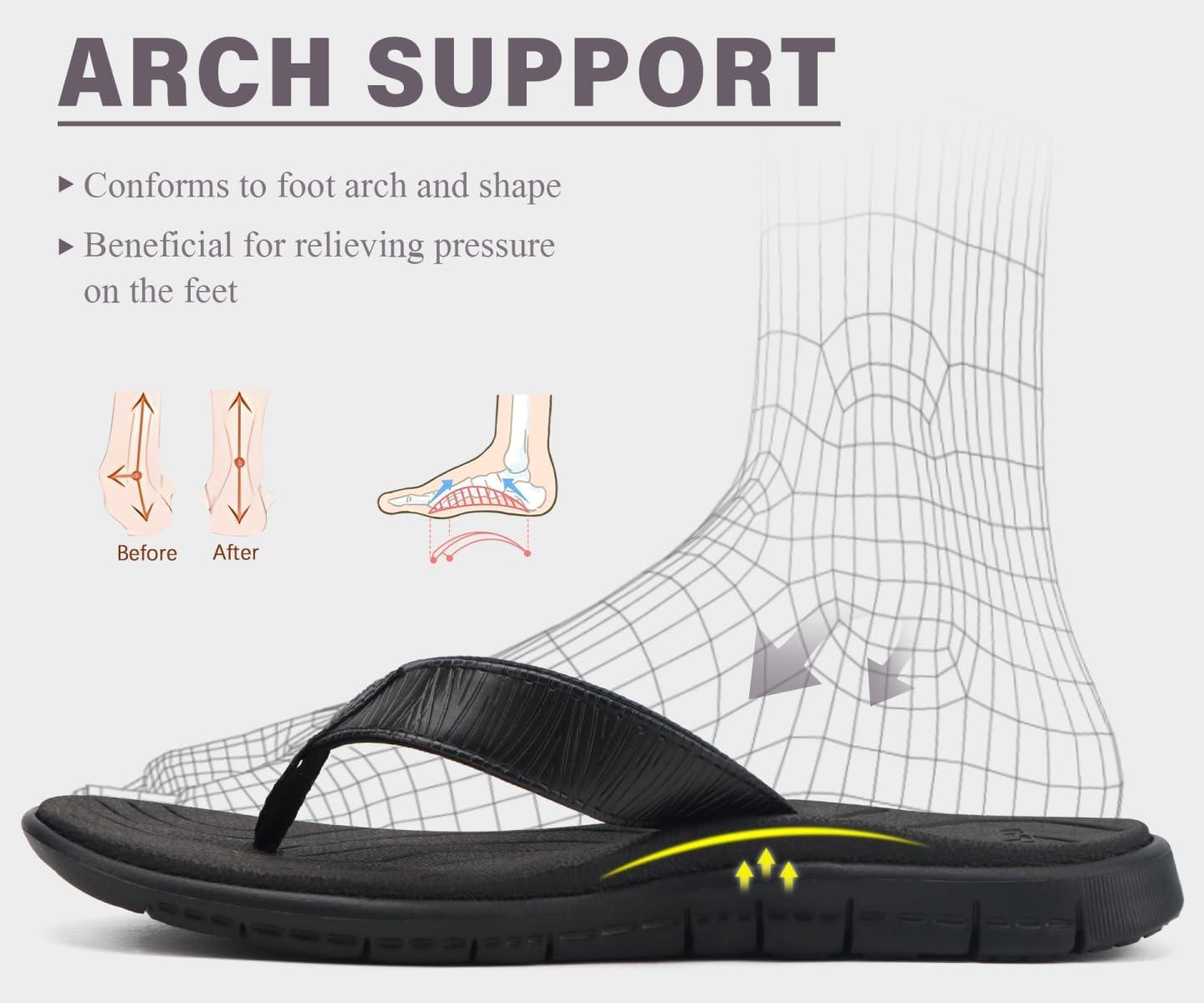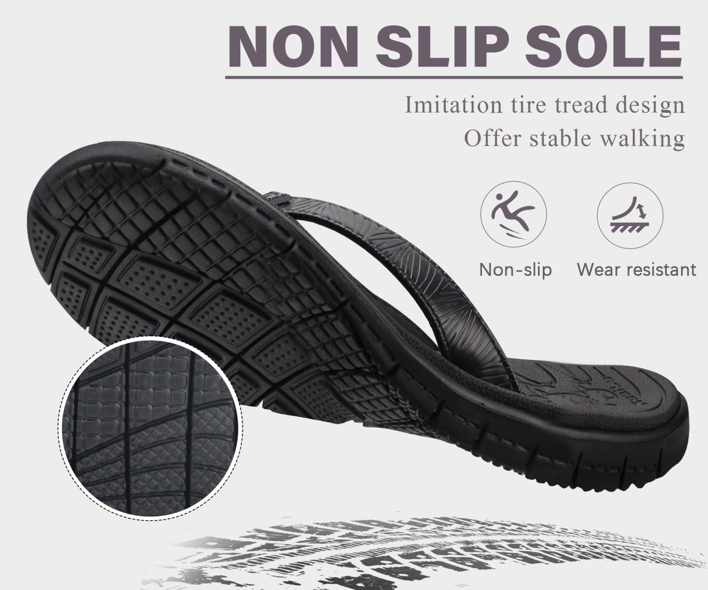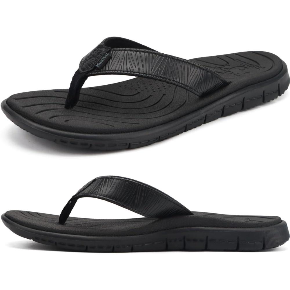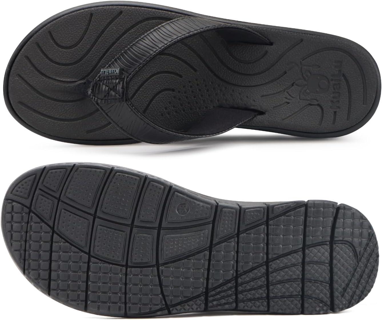 KuaiLu Comfortable Flip Flops for Women with Arch Support Summer Beach Walking Thong Sandals Slip On Indoor Outdoor(All Black)