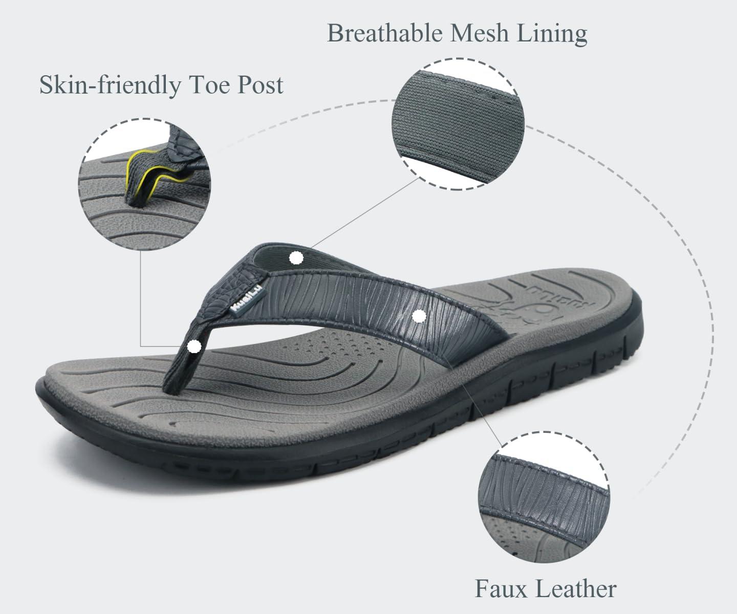 KuaiLu Comfortable Flip Flops for Women with Arch Support Summer Beach Walking Thong Sandals Slip On Indoor Outdoor(Grey)