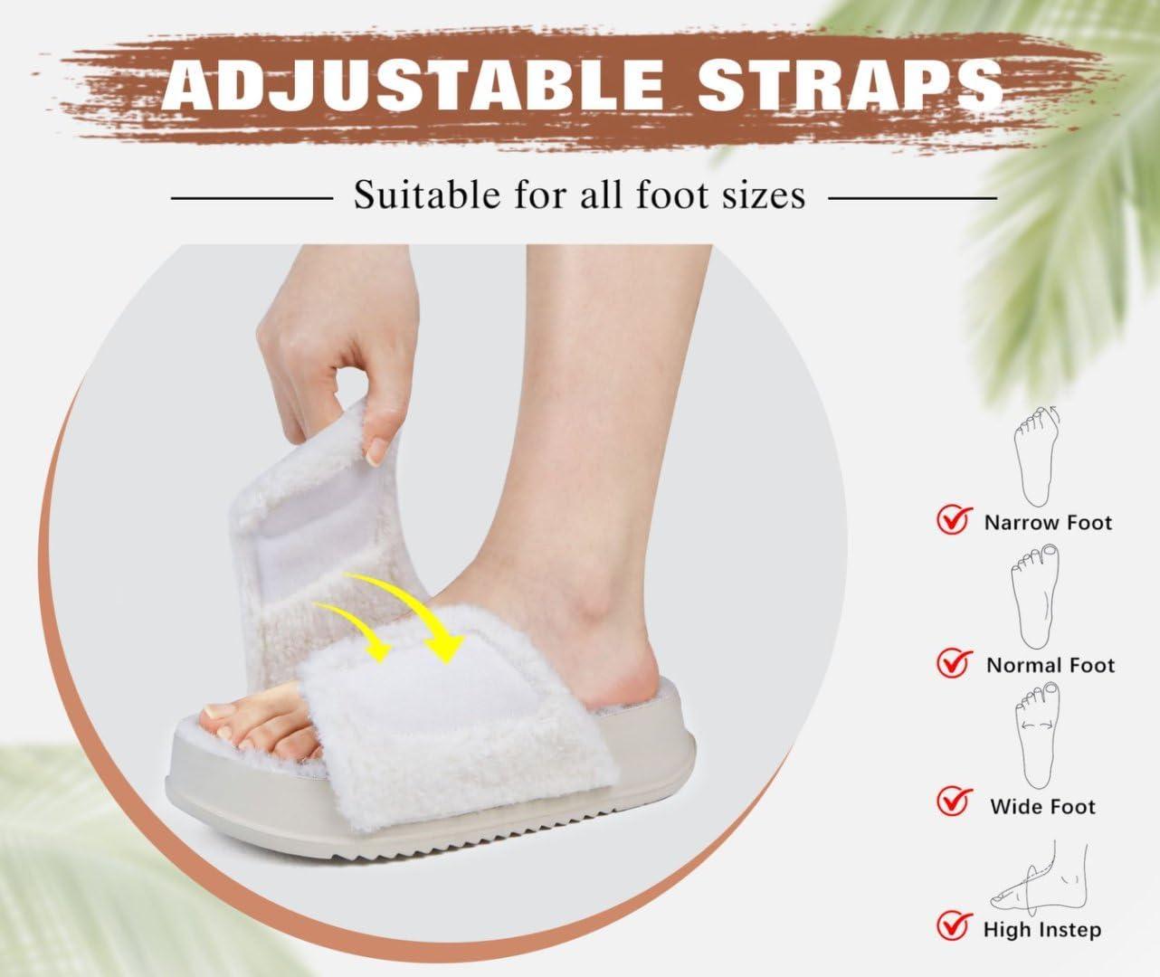 imageKuaiLu Cushion Slippers For Women with Orthotic Arch Support Wide Adjustable Open Toe Furry Fur Sandals Warm Teddy Fleece Recovery Slides Slip On House Shoes Indoor Outdoor OutfitsWhite