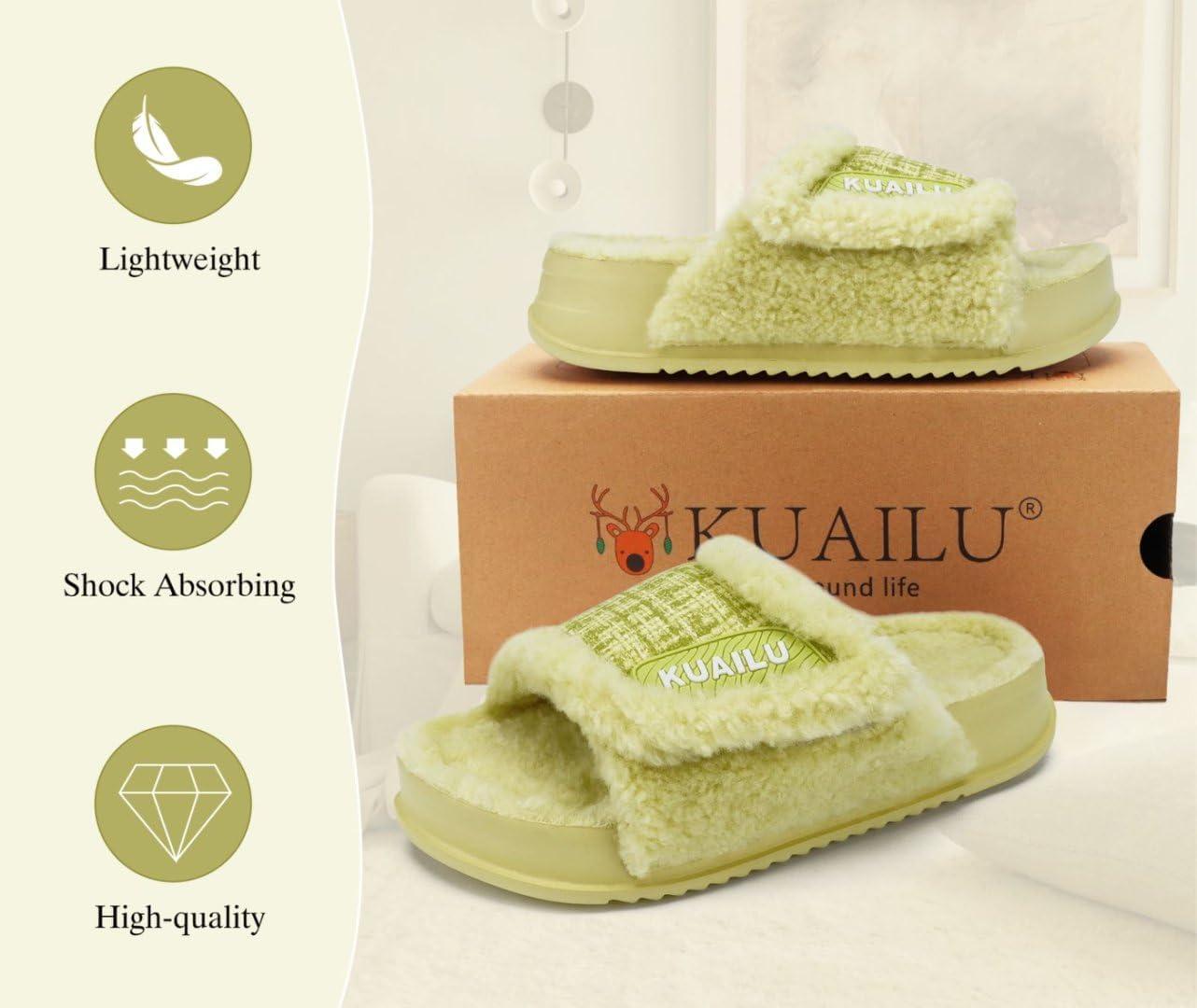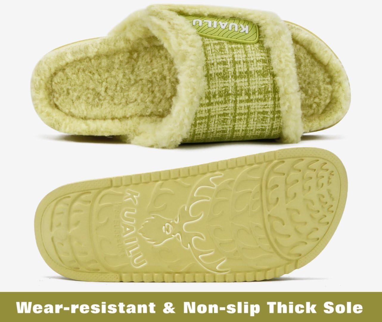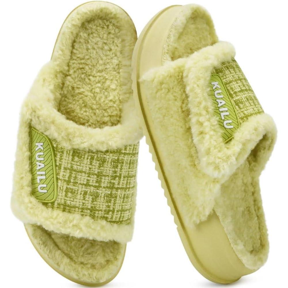Be the first to review “KuaiLu Cushion Slippers For Women with Orthotic Arch Support Wide Adjustable Open Toe Furry Fur Sandals Warm Teddy Fleece Recovery Slides Slip On House Shoes Indoor Outdoor Outfits(Yellow-green)”