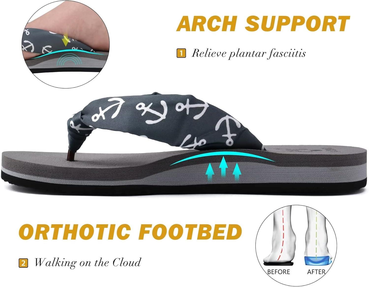 KuaiLu Flip Flops Women Yoga Foam Ladies Comfort Arch Support Summer Beach Casual Thong Sandals(Grey)