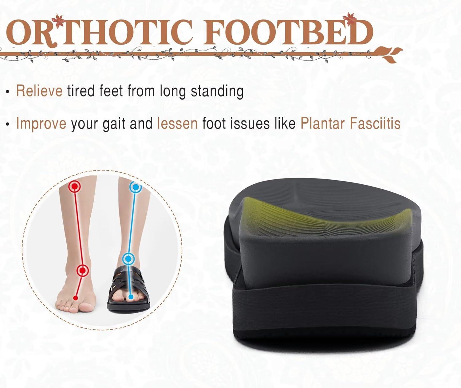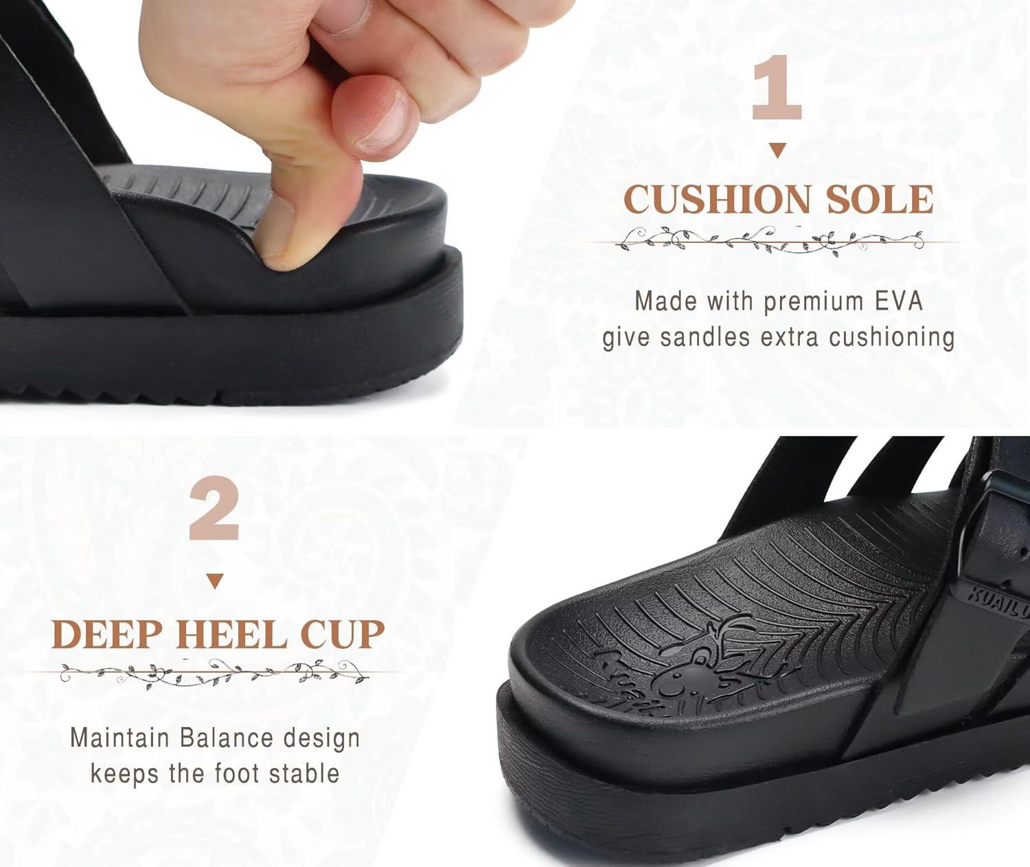 imageKuaiLu Gladiator Sandals for Women with Comfortable Arch Support Summer Beach Walking Fisherman Slides Boho Outfits Slip on Cushion Shoes Indoor OutdoorBlack