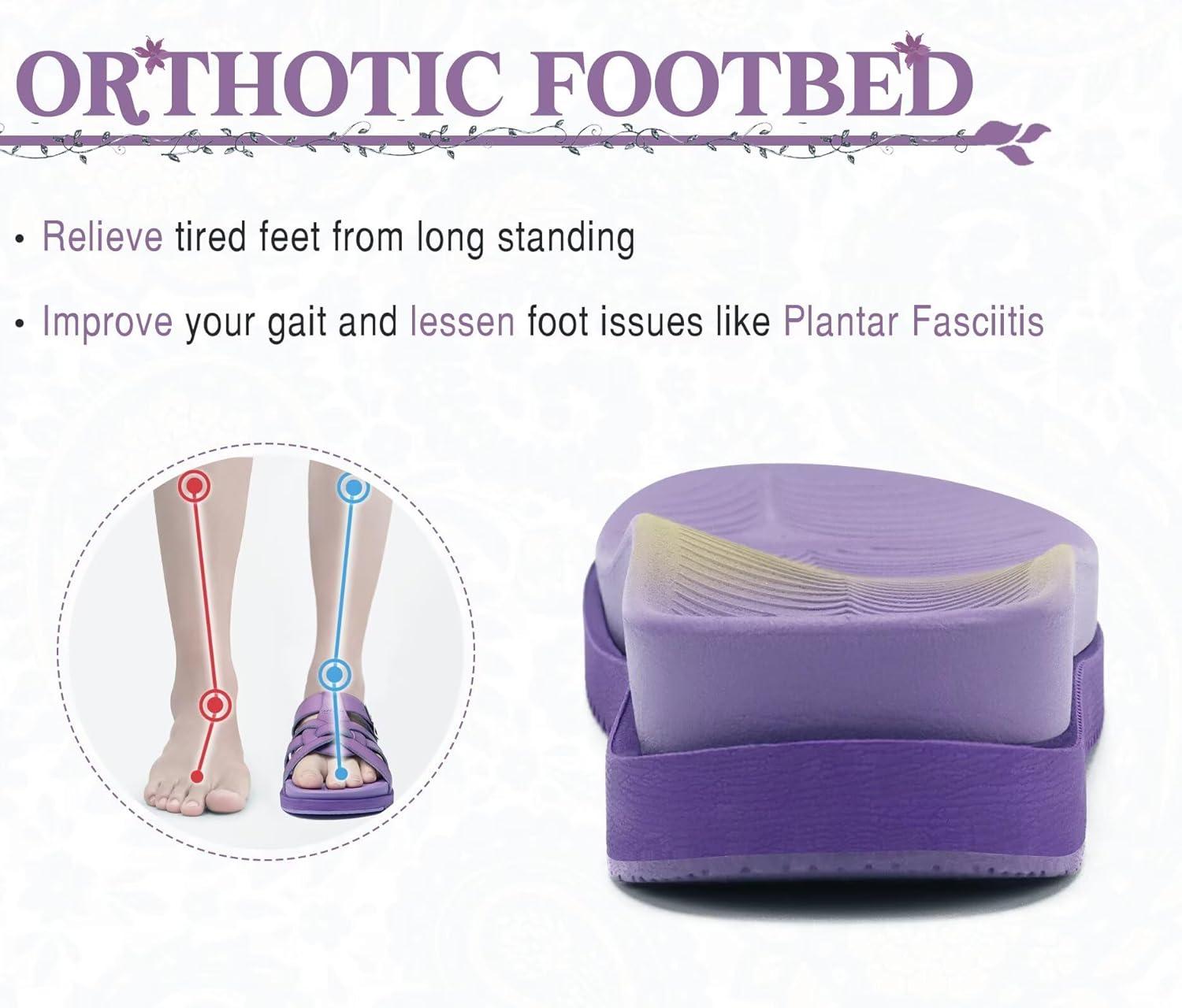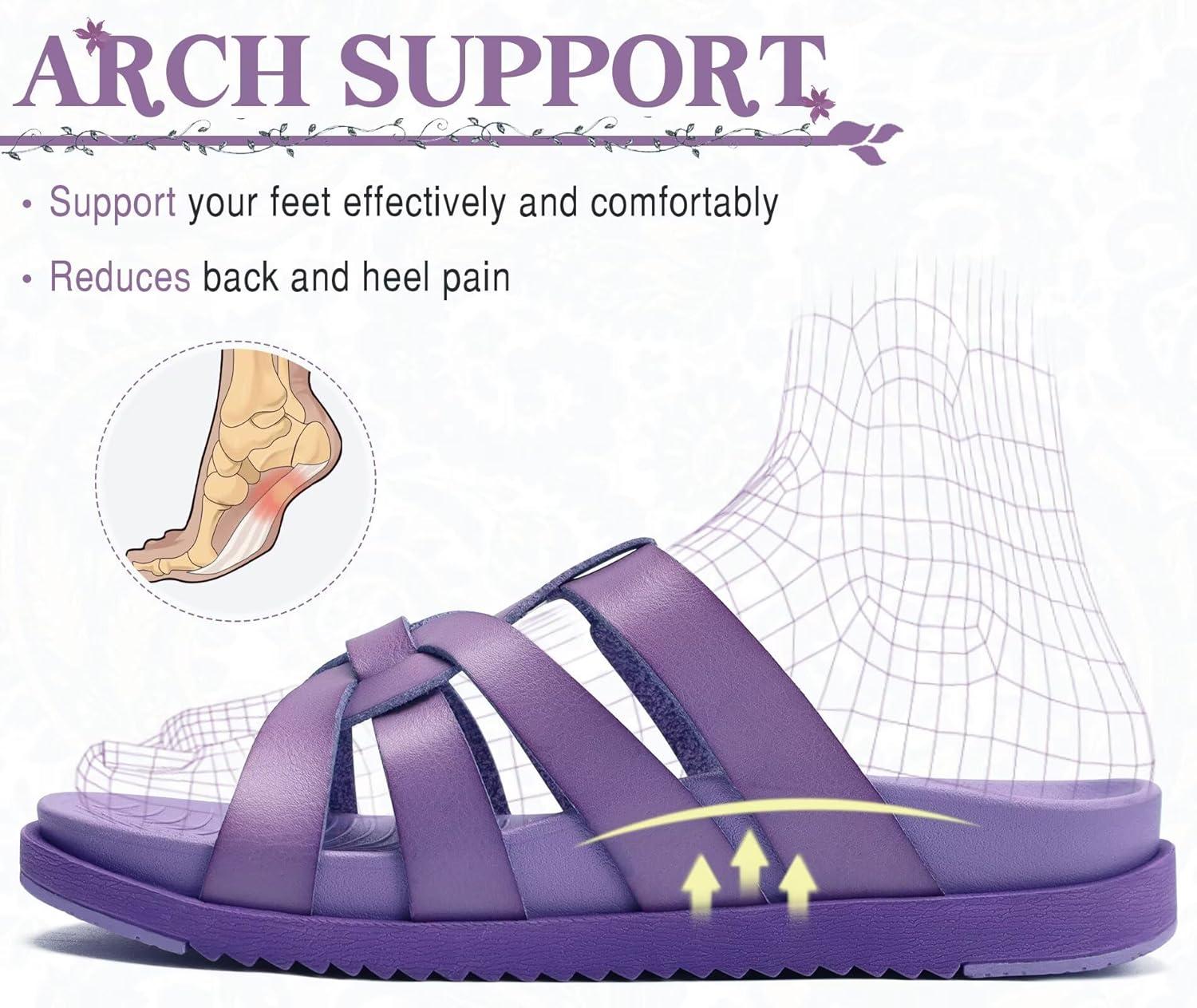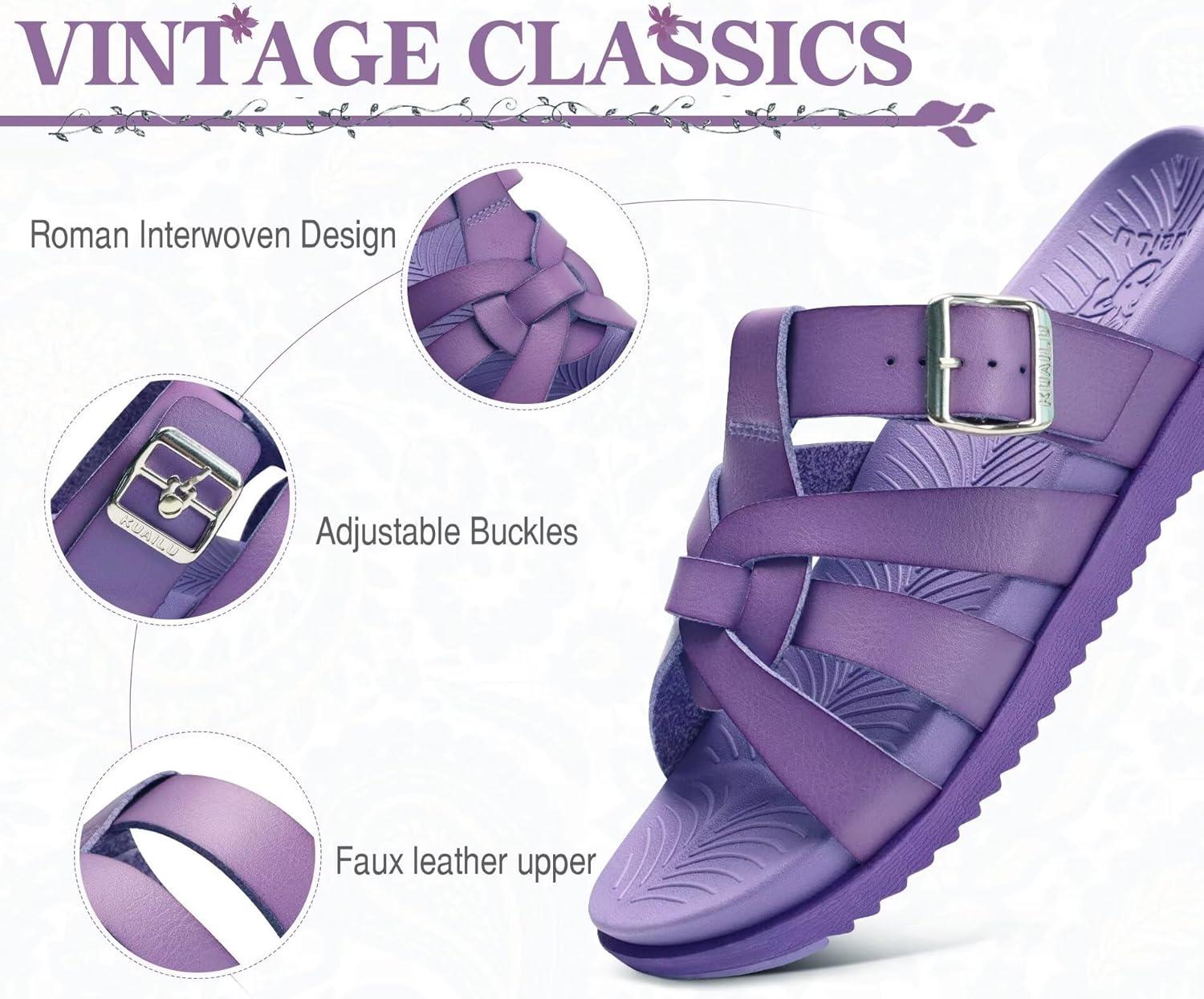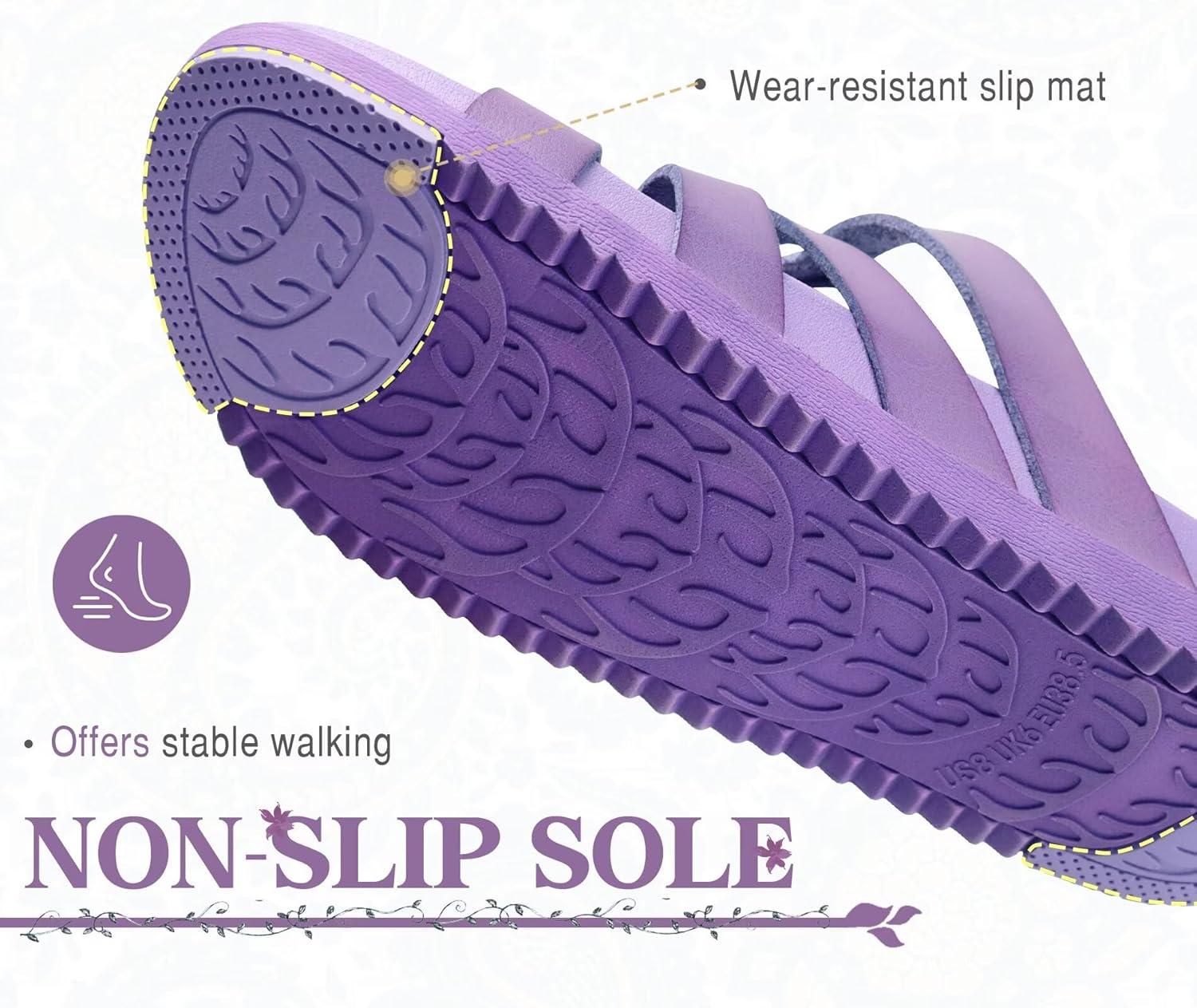 KuaiLu Gladiator Sandals for Women with Comfortable Arch Support Summer Beach Walking Fisherman Slides Boho Outfits Slip on Cushion Shoes Indoor Outdoor(Purple)