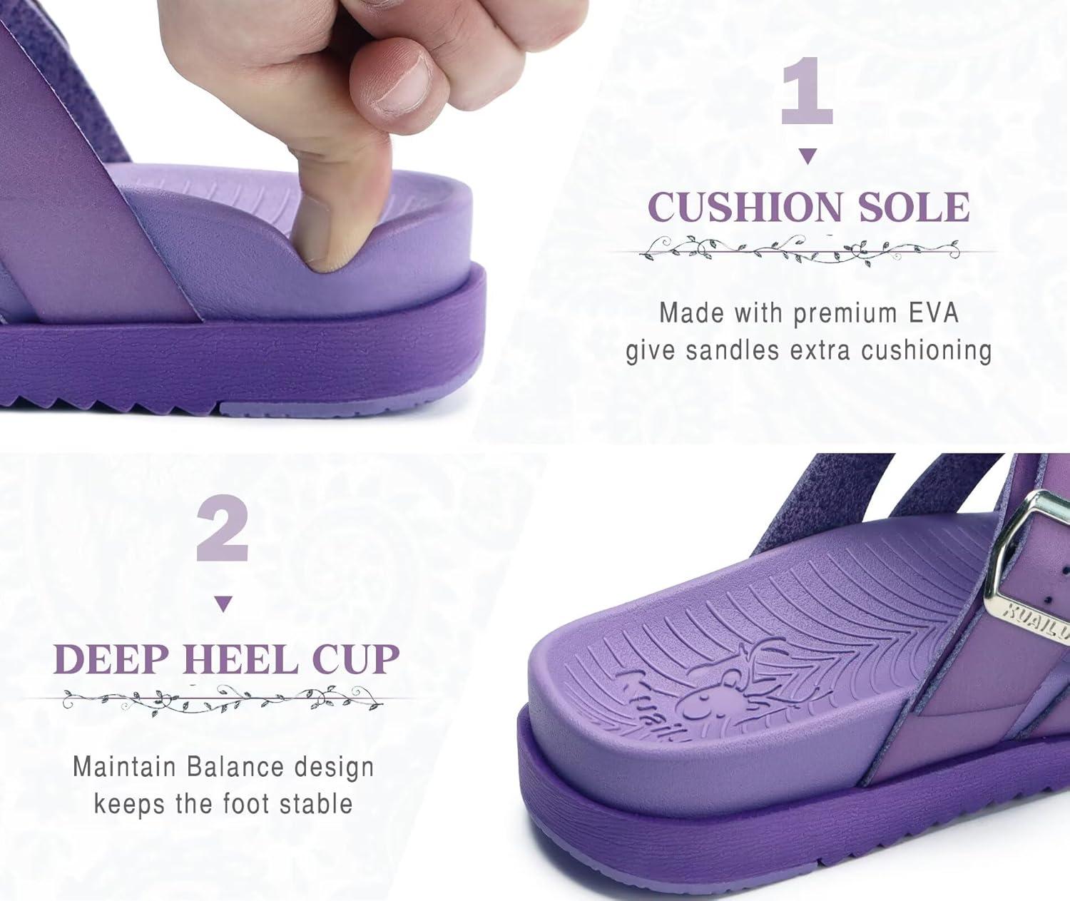 imageKuaiLu Gladiator Sandals for Women with Comfortable Arch Support Summer Beach Walking Fisherman Slides Boho Outfits Slip on Cushion Shoes Indoor OutdoorPurple