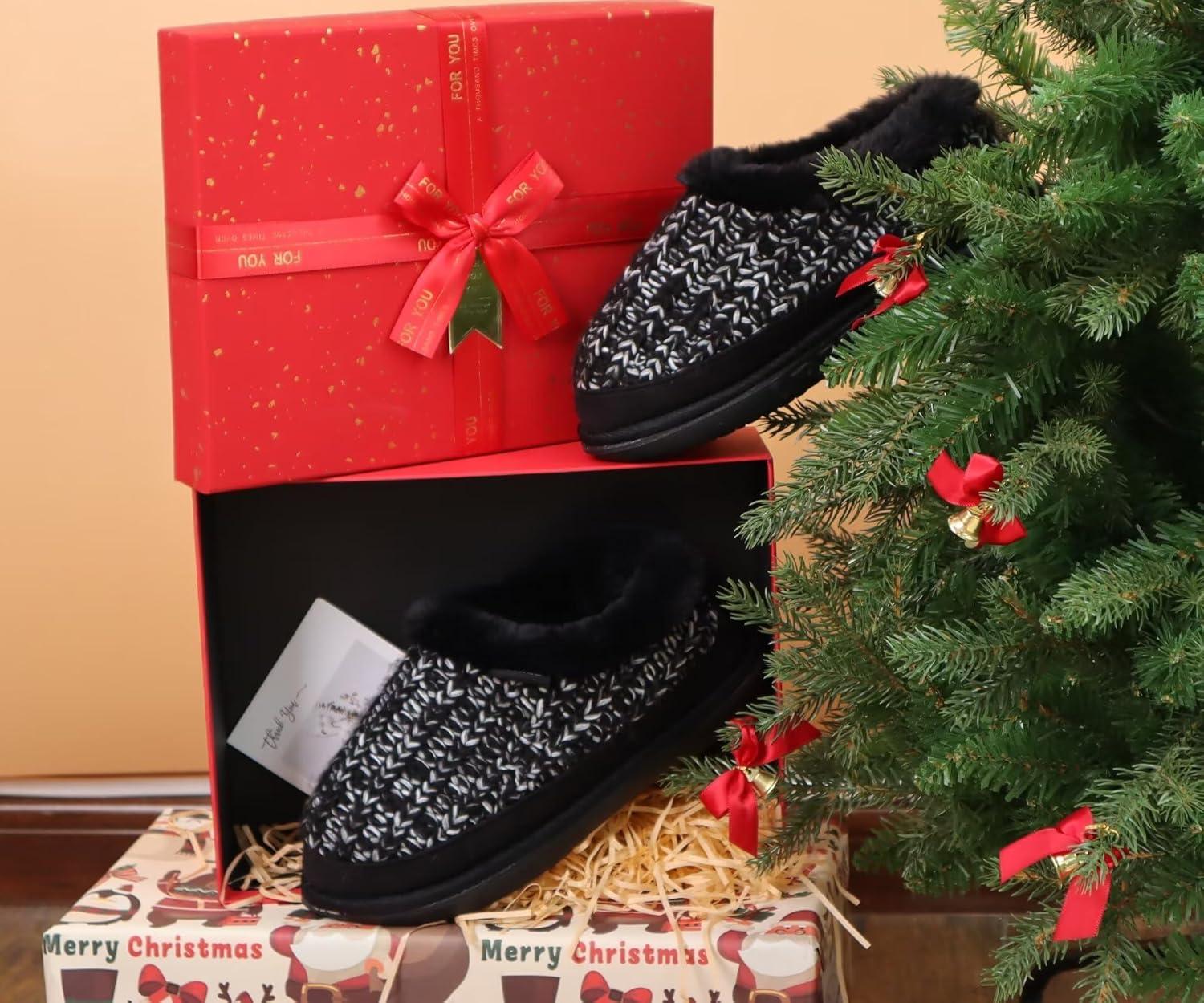 Get a free gift with your purchase of KuaiLu House Slippers for Women Comfortable Memory Foam Plaid Slipper Ladies Warm Fuzzy Plush Fur Lined Winter Home Shoes Orthotic Plantar Fasciitis Arch Support Indoor Outdoor(Black(go One Size Up)). Limited quantities available!