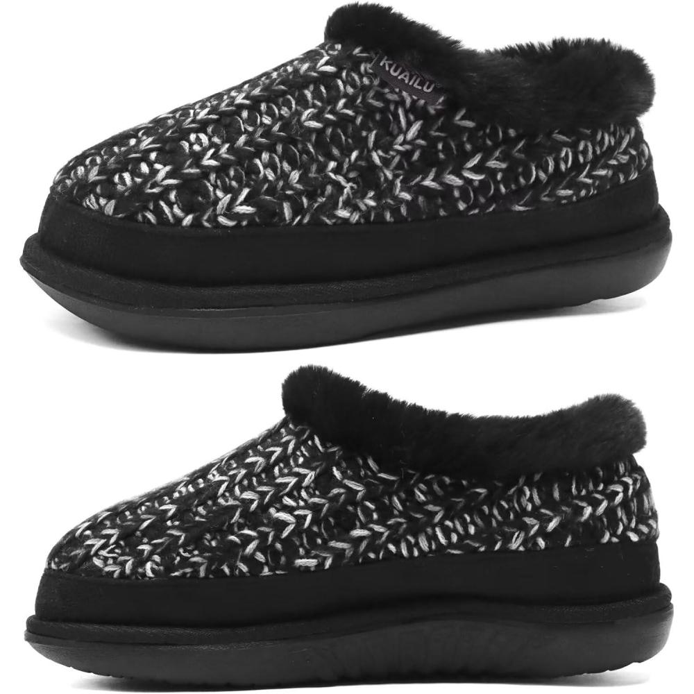 imageKuaiLu House Slippers for Women Comfortable Memory Foam Plaid Slipper Ladies Warm Fuzzy Plush Fur Lined Winter Home Shoes Orthotic Plantar Fasciitis Arch Support Indoor OutdoorBlackgo One Size Up