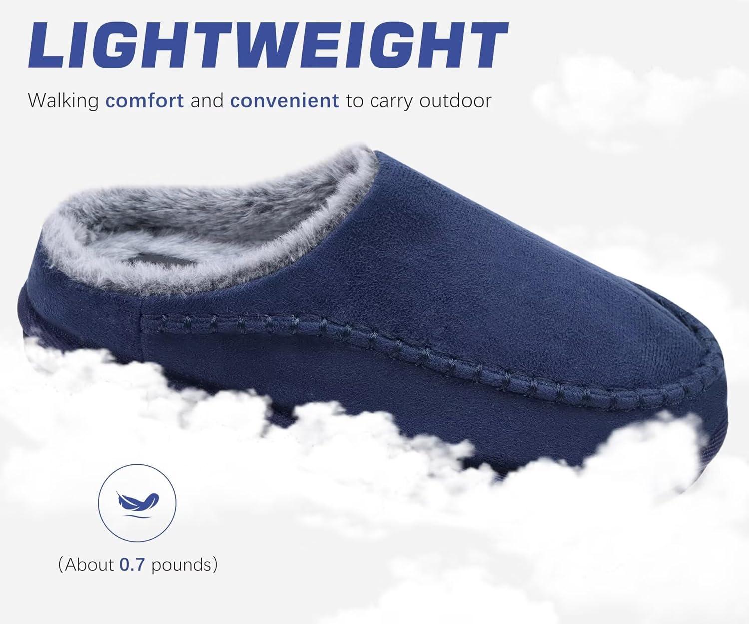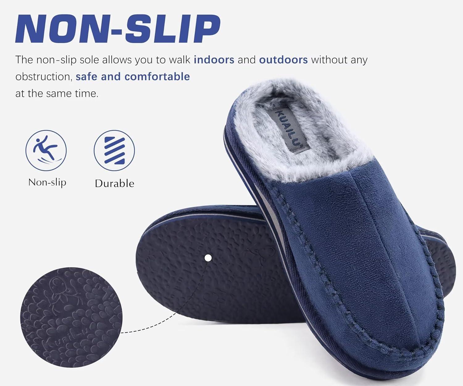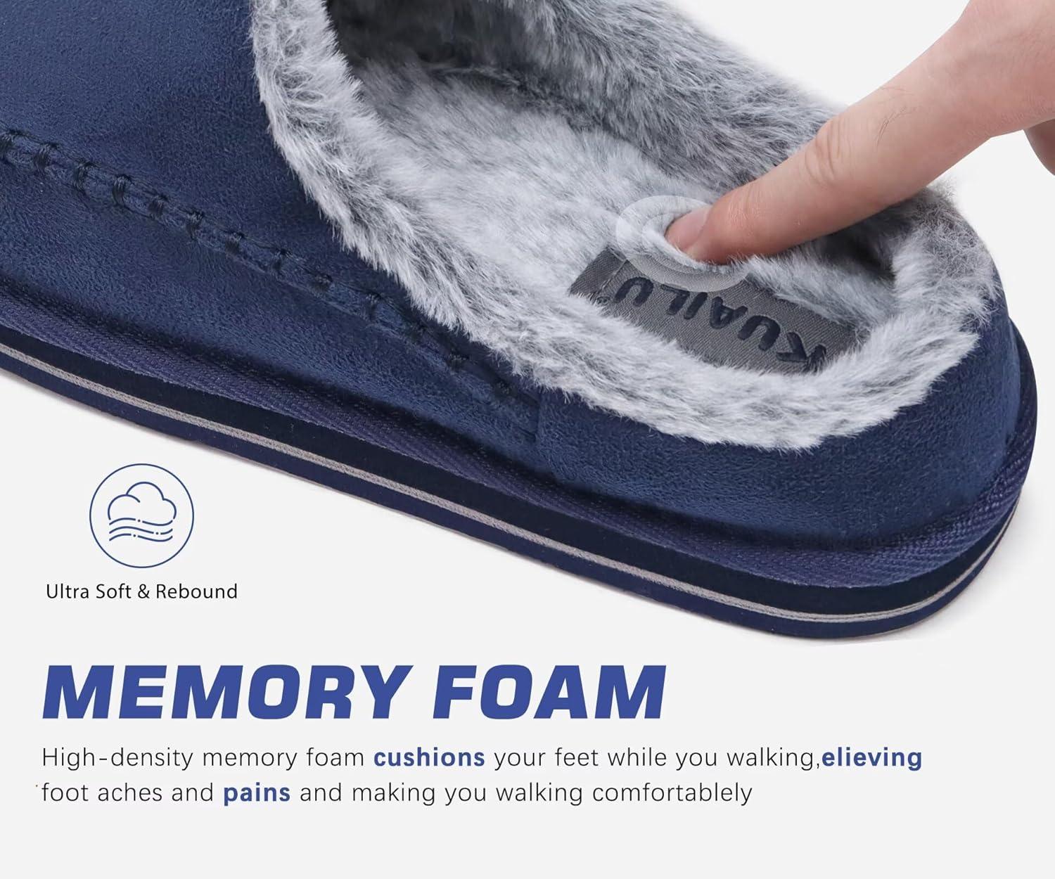 KuaiLu Mens Clog Slippers with Arch Support Suede Faux Fur Memory Foam Warm House Shoes Comfortable Slip-on Mans Bedroom Indoor Outdoor Slippers Rubber Sole(Blue)
