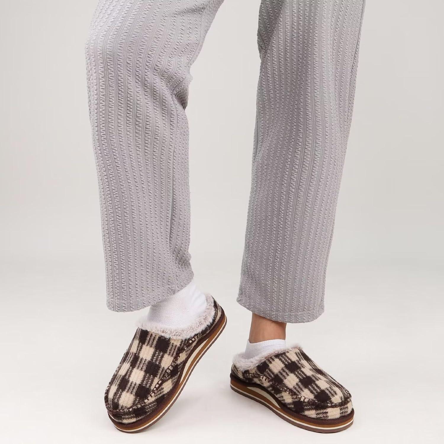 imageKuaiLu Mens Clog Slippers with Arch Support Suede Faux Fur Memory Foam Warm House Shoes Comfortable Slipon Mans Bedroom Indoor Outdoor Slippers Rubber SoleBorwnkhaki Plaid