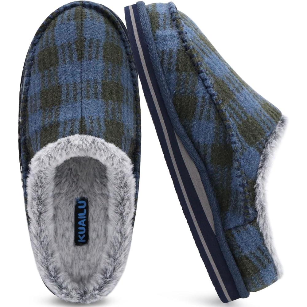 Score big savings on KuaiLu Mens Clog Slippers with Arch Support Suede Faux Fur Memory Foam Warm House Shoes Comfortable Slip-on Mans Bedroom Indoor Outdoor Slippers Rubber Sole(Darkbule Plaid) during our back-to-school sale. Limited quantities available.