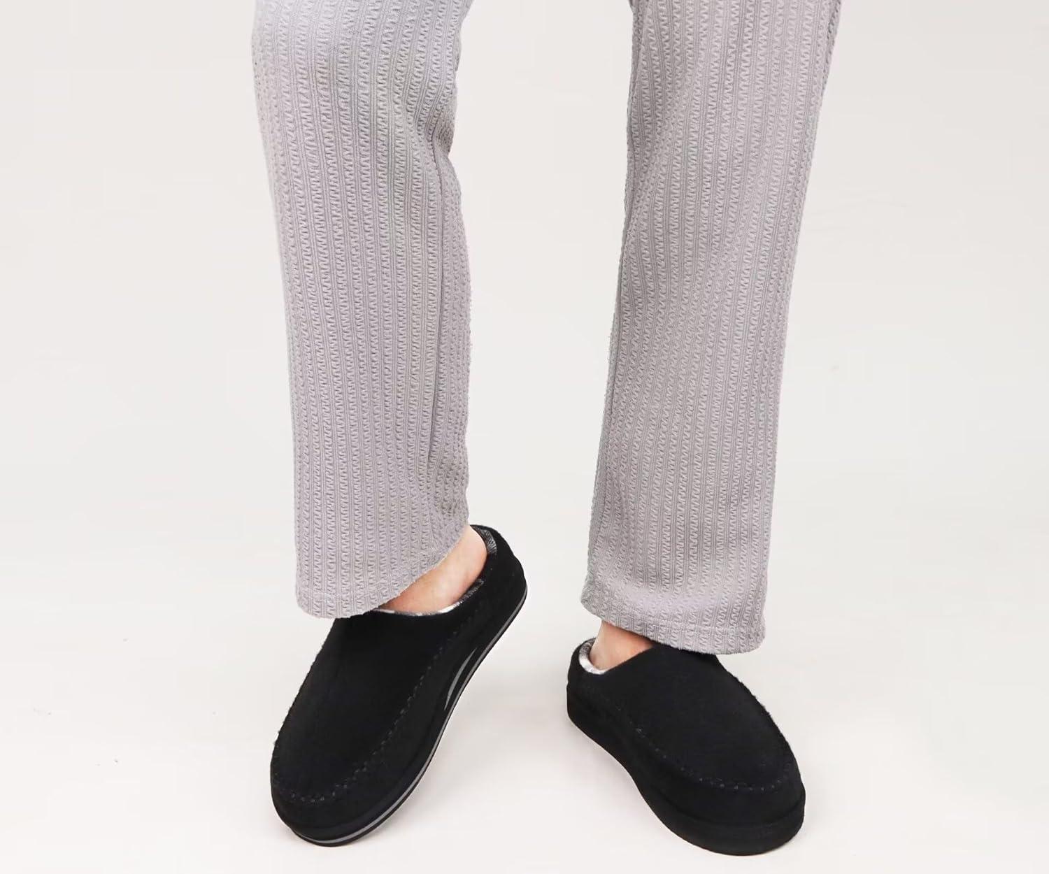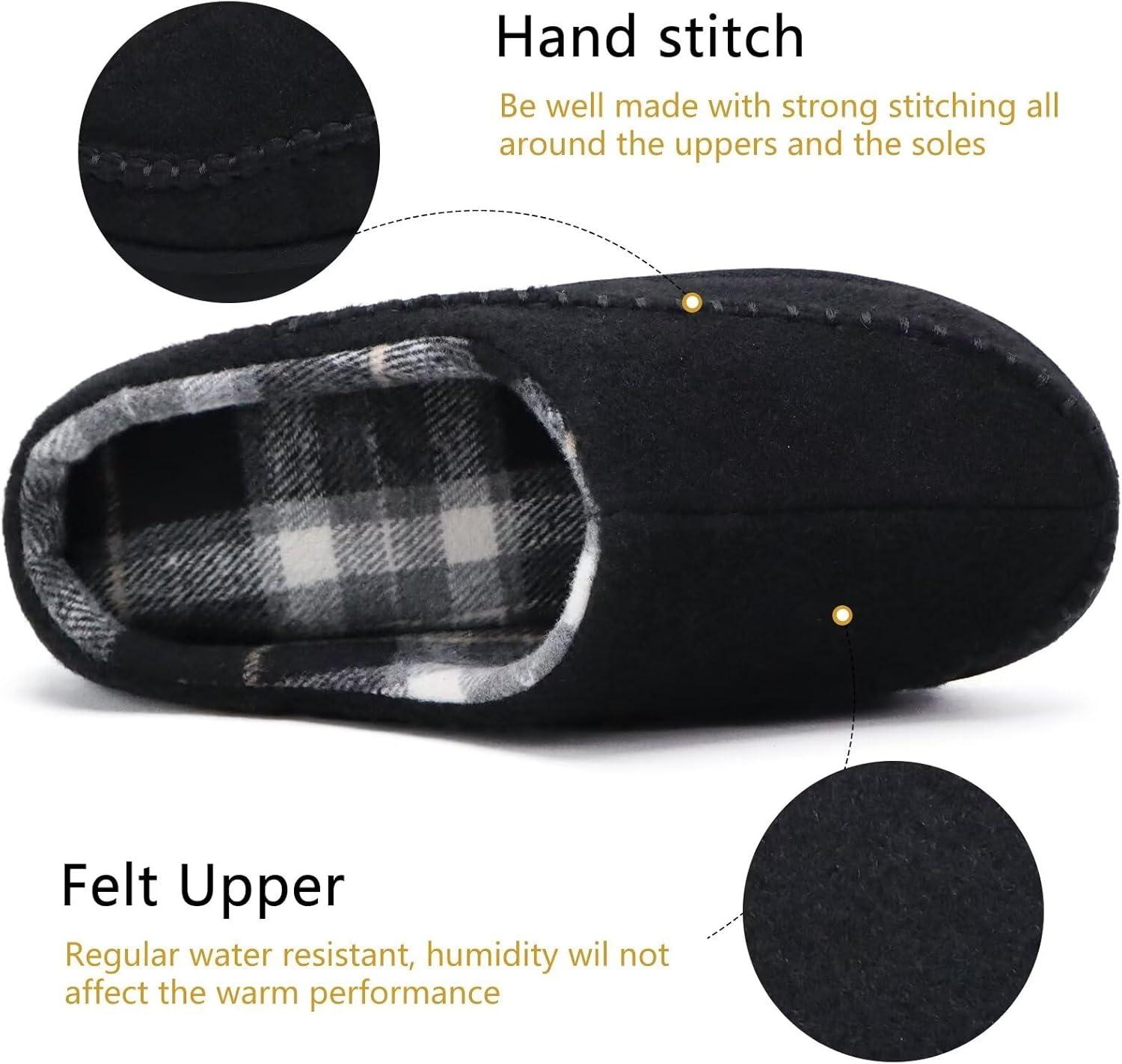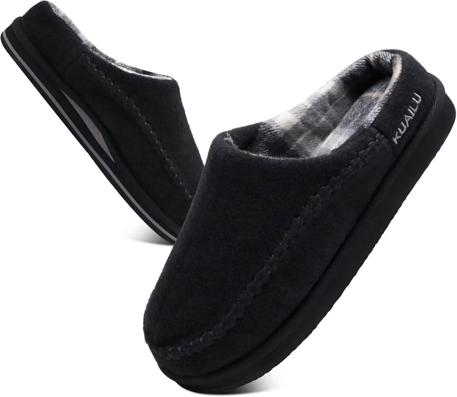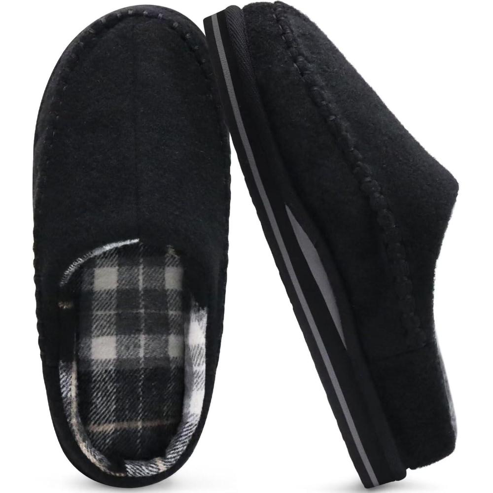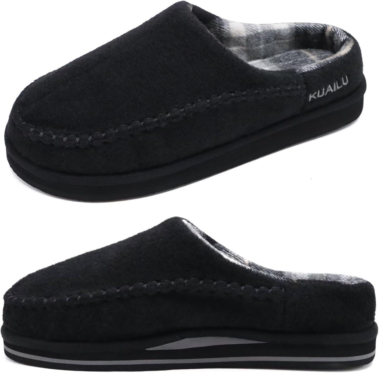 KuaiLu Mens Clog Slippers with Arch Support Suede Faux Fur Memory Foam Warm House Shoes Comfortable Slip-on Mans Bedroom Indoor Outdoor Slippers Rubber Sole(Felt Black)