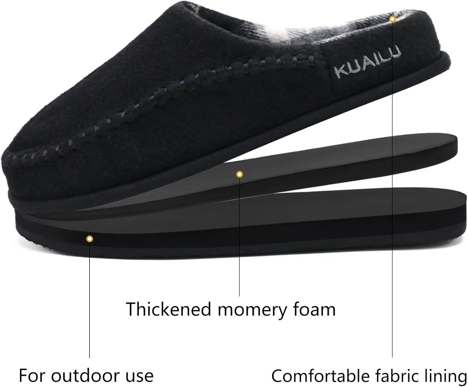 imageKuaiLu Mens Clog Slippers with Arch Support Suede Faux Fur Memory Foam Warm House Shoes Comfortable Slipon Mans Bedroom Indoor Outdoor Slippers Rubber SoleFelt Black