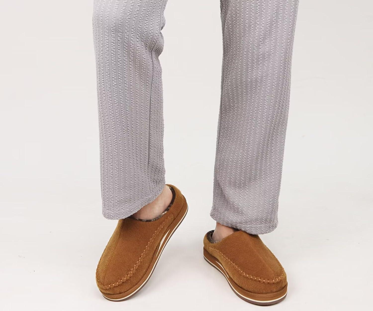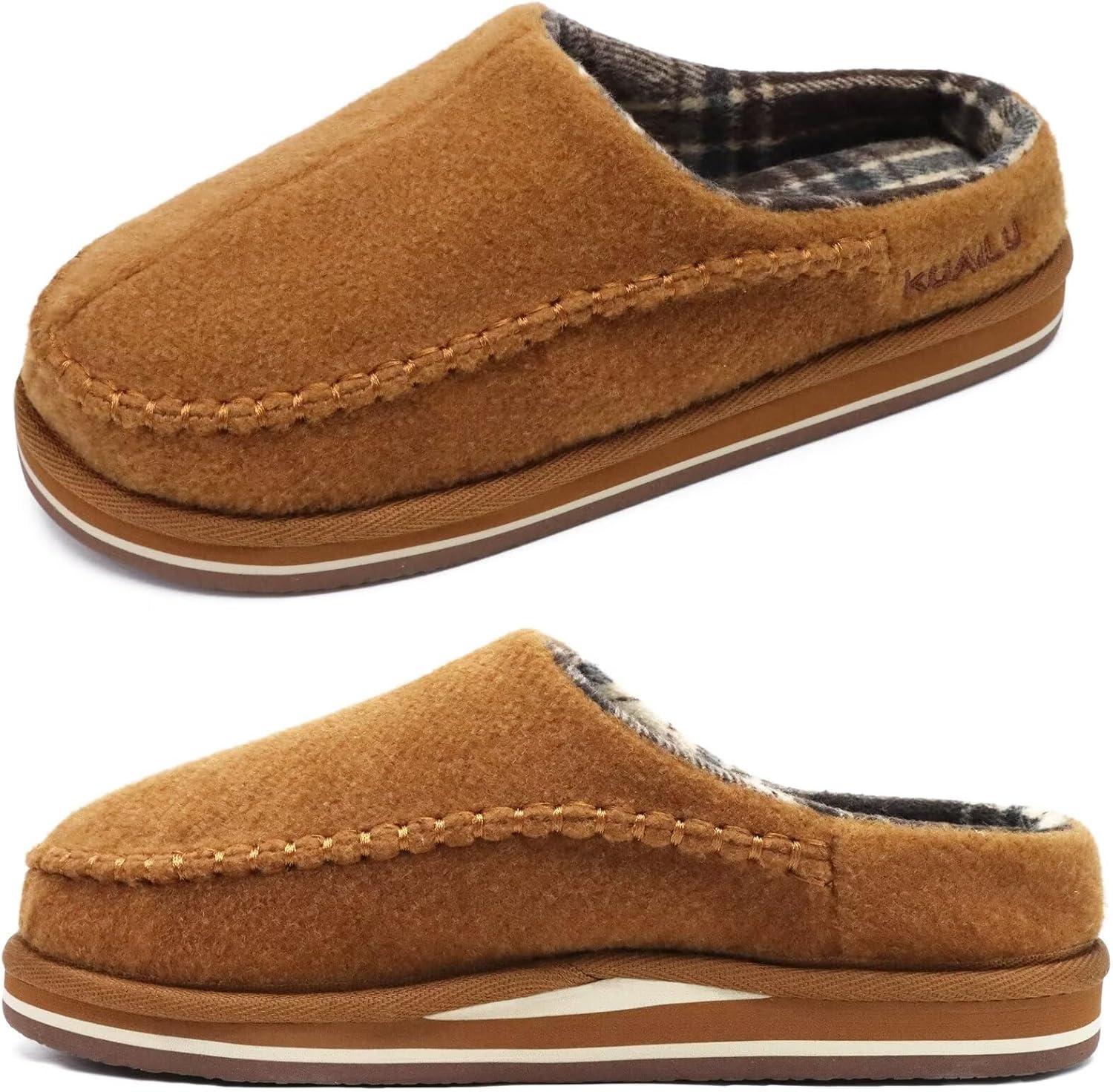 imageKuaiLu Mens Clog Slippers with Arch Support Suede Faux Fur Memory Foam Warm House Shoes Comfortable Slipon Mans Bedroom Indoor Outdoor Slippers Rubber SoleFelt Brown