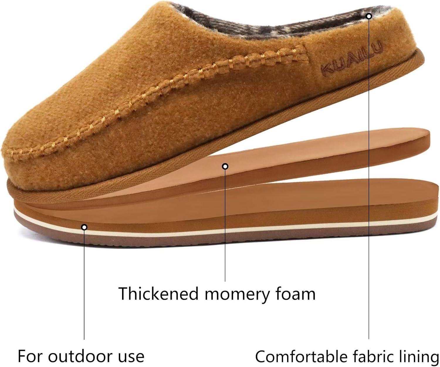 imageKuaiLu Mens Clog Slippers with Arch Support Suede Faux Fur Memory Foam Warm House Shoes Comfortable Slipon Mans Bedroom Indoor Outdoor Slippers Rubber SoleFelt Khaki