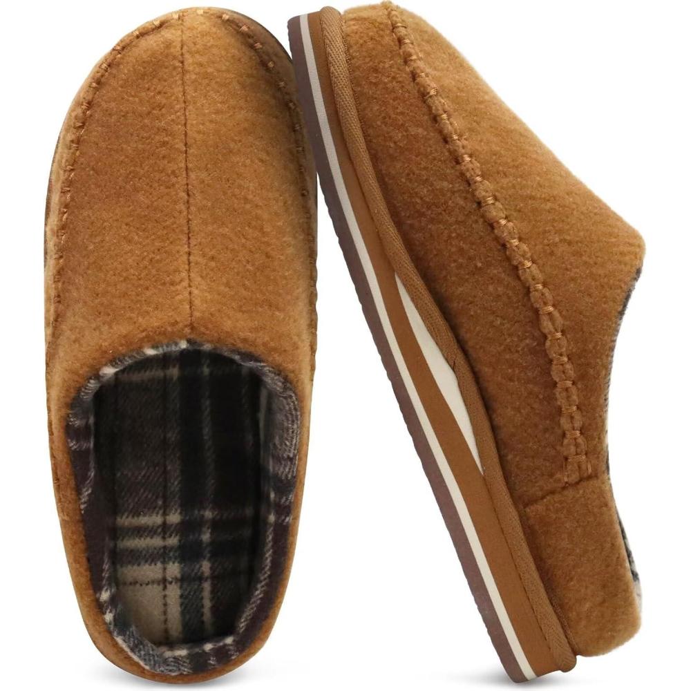 KuaiLu Mens Clog Slippers with Arch Support Suede Faux Fur Memory Foam Warm House Shoes Comfortable Slip-on Mans Bedroom Indoor Outdoor Slippers Rubber Sole(Felt Brown)
