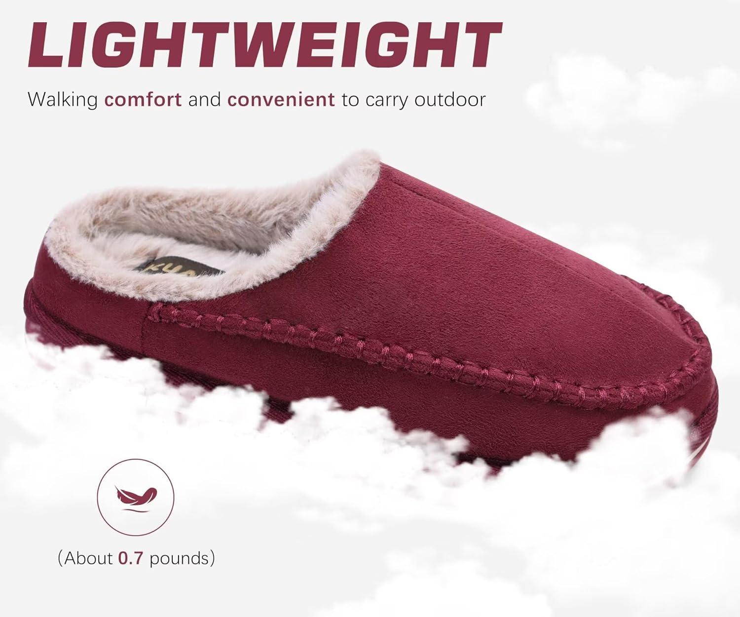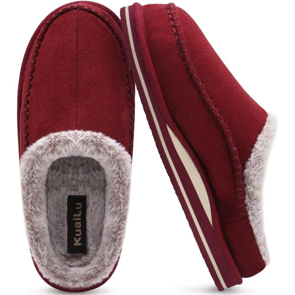imageKuaiLu Mens Clog Slippers with Arch Support Suede Faux Fur Memory Foam Warm House Shoes Comfortable Slipon Mans Bedroom Indoor Outdoor Slippers Rubber SoleRed