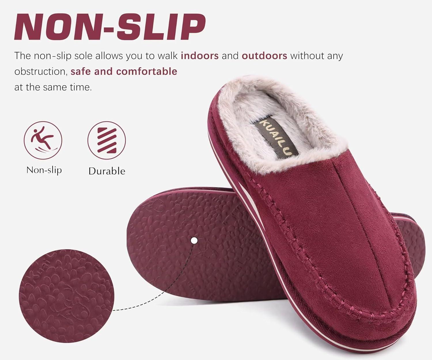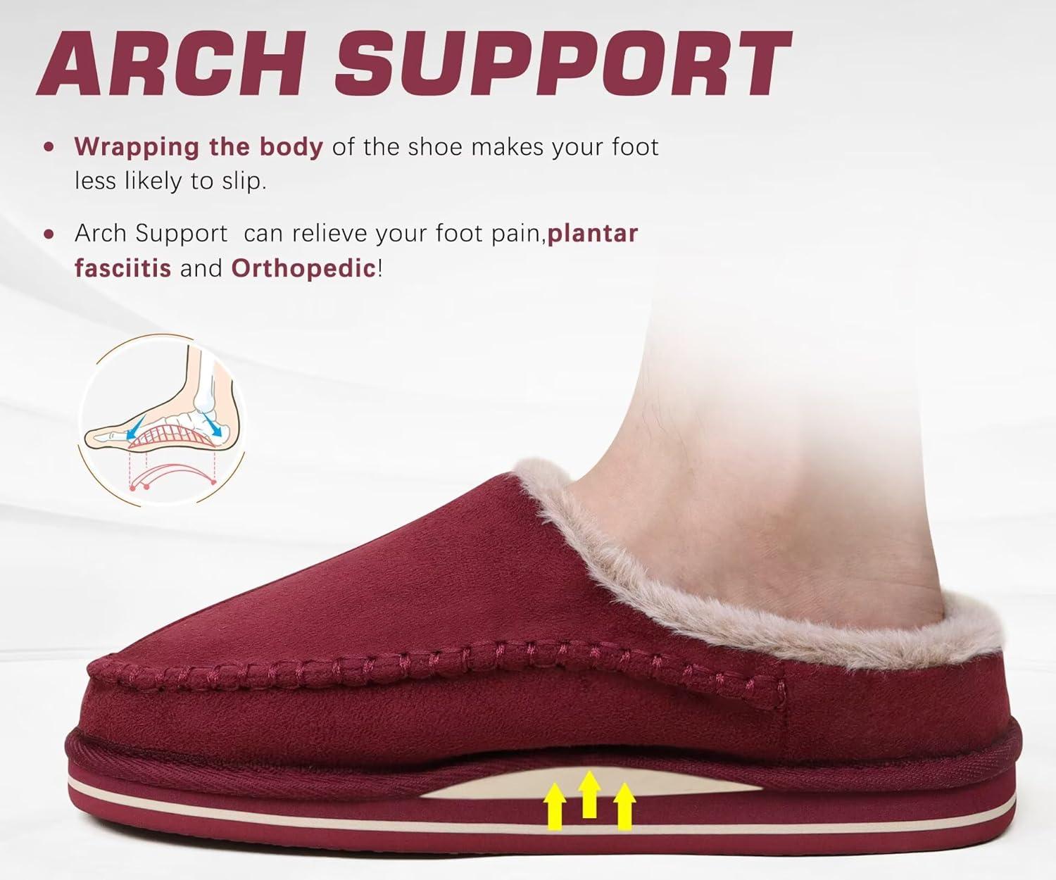 KuaiLu Mens Clog Slippers with Arch Support Suede Faux Fur Memory Foam Warm House Shoes Comfortable Slip-on Mans Bedroom Indoor Outdoor Slippers Rubber Sole(Red)
