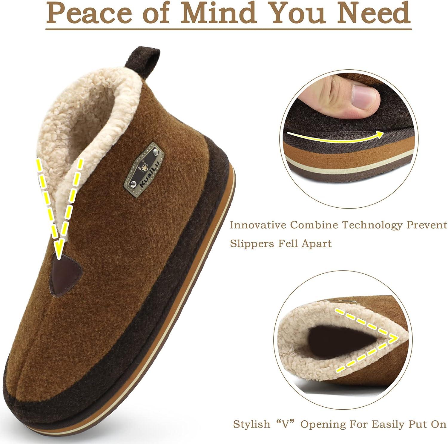 KuaiLu Mens Felt Winter Warm Boot Slippers Cosy Memory Foam Fleece Lined Bootie Slippers with Comfy Arch Support House Shoes Non-Slip Indoor Outdoor Hard Sole
