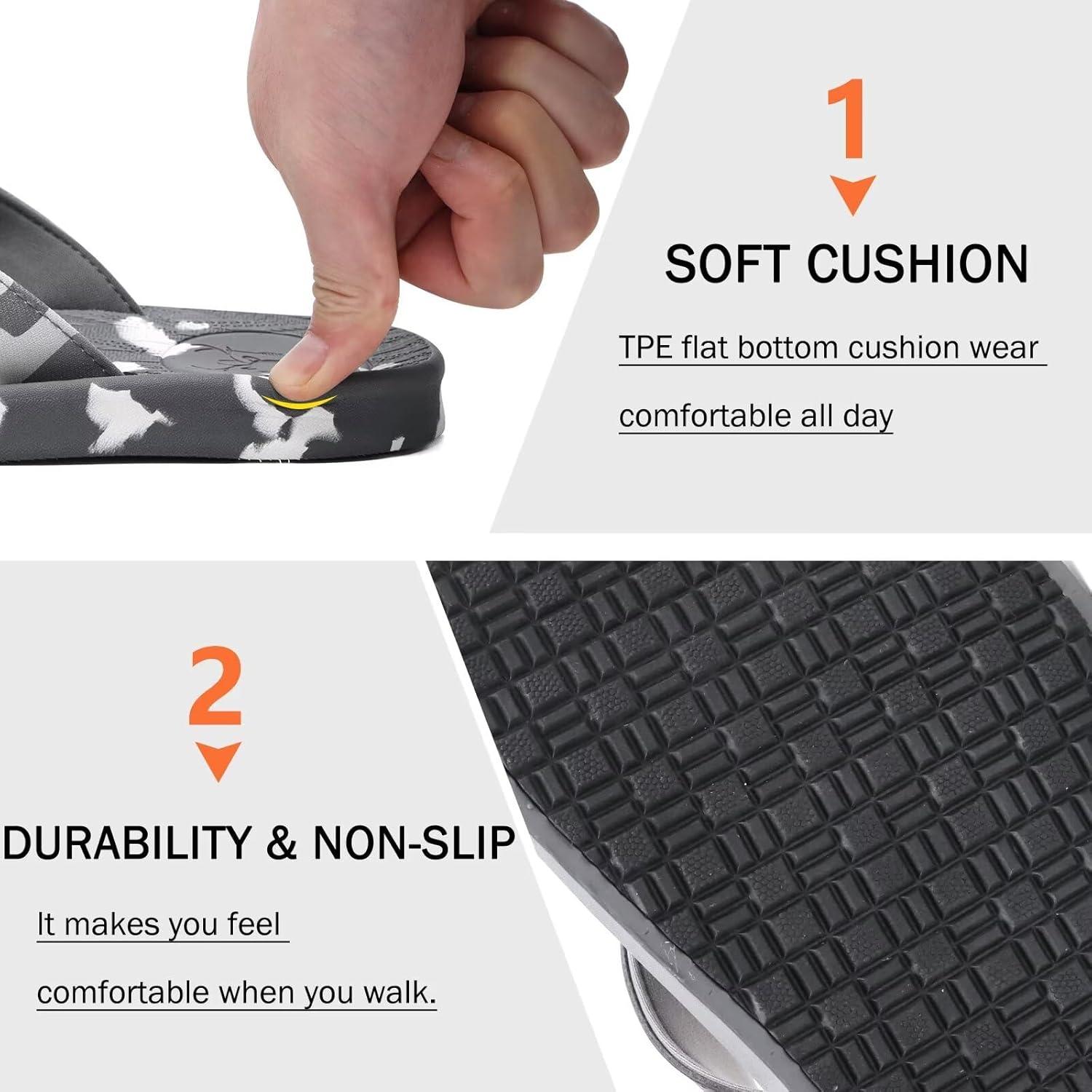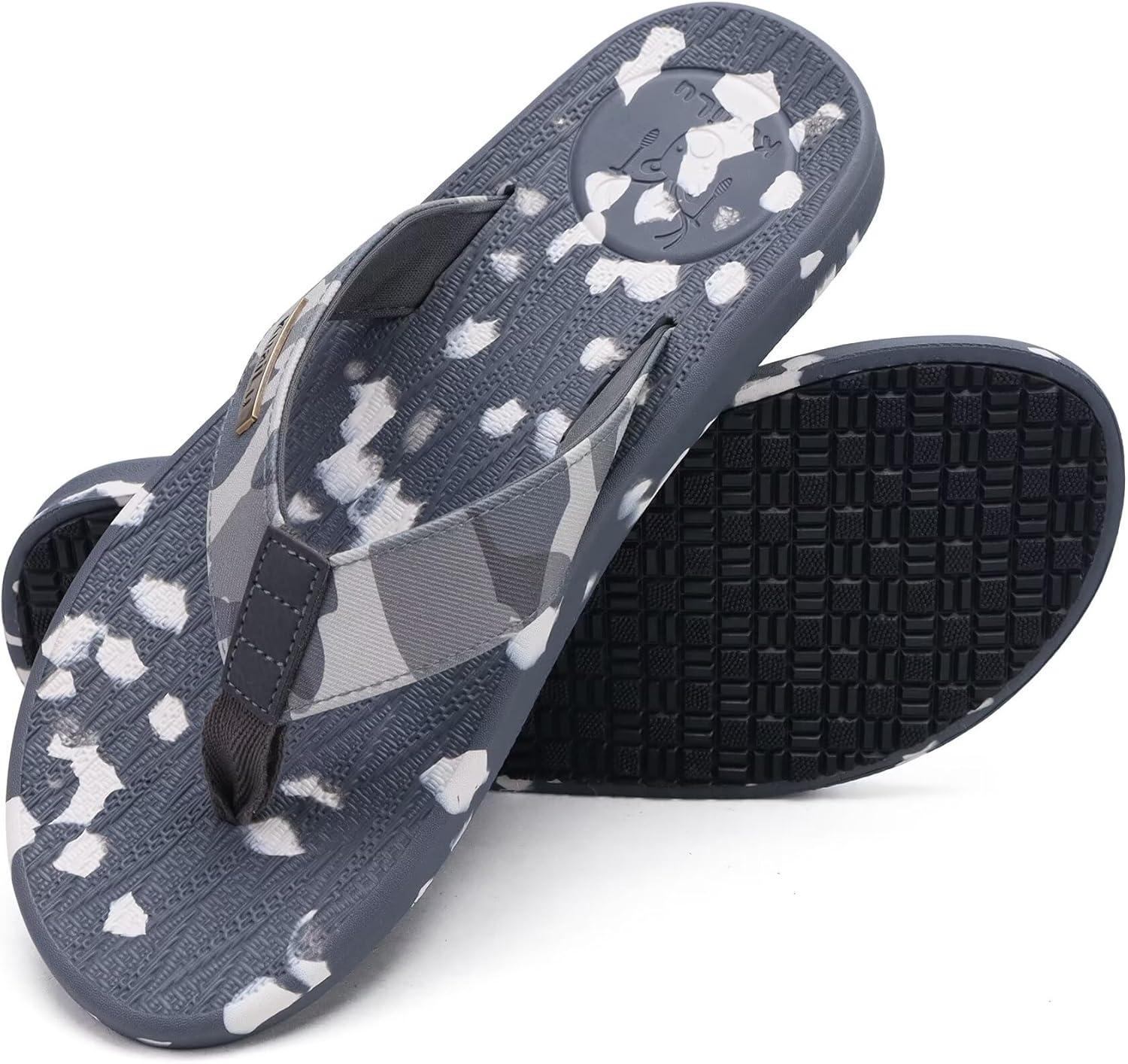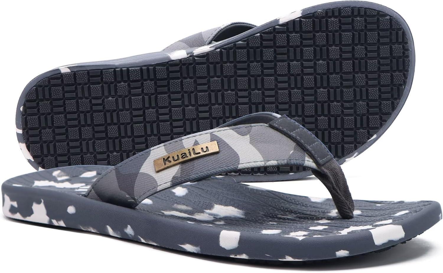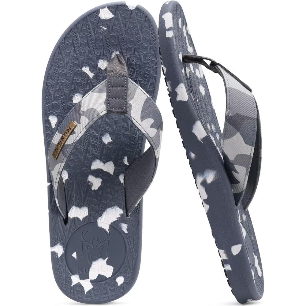 KuaiLu Mens Flip Flops Arch Support Comfortable Summer Beach Thong Sandals Yoga Foam Cushion Slip on Slippers(Camo-grey)