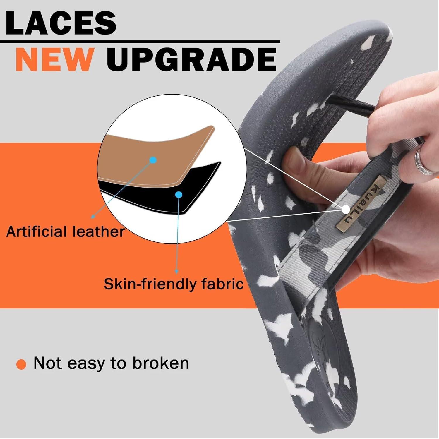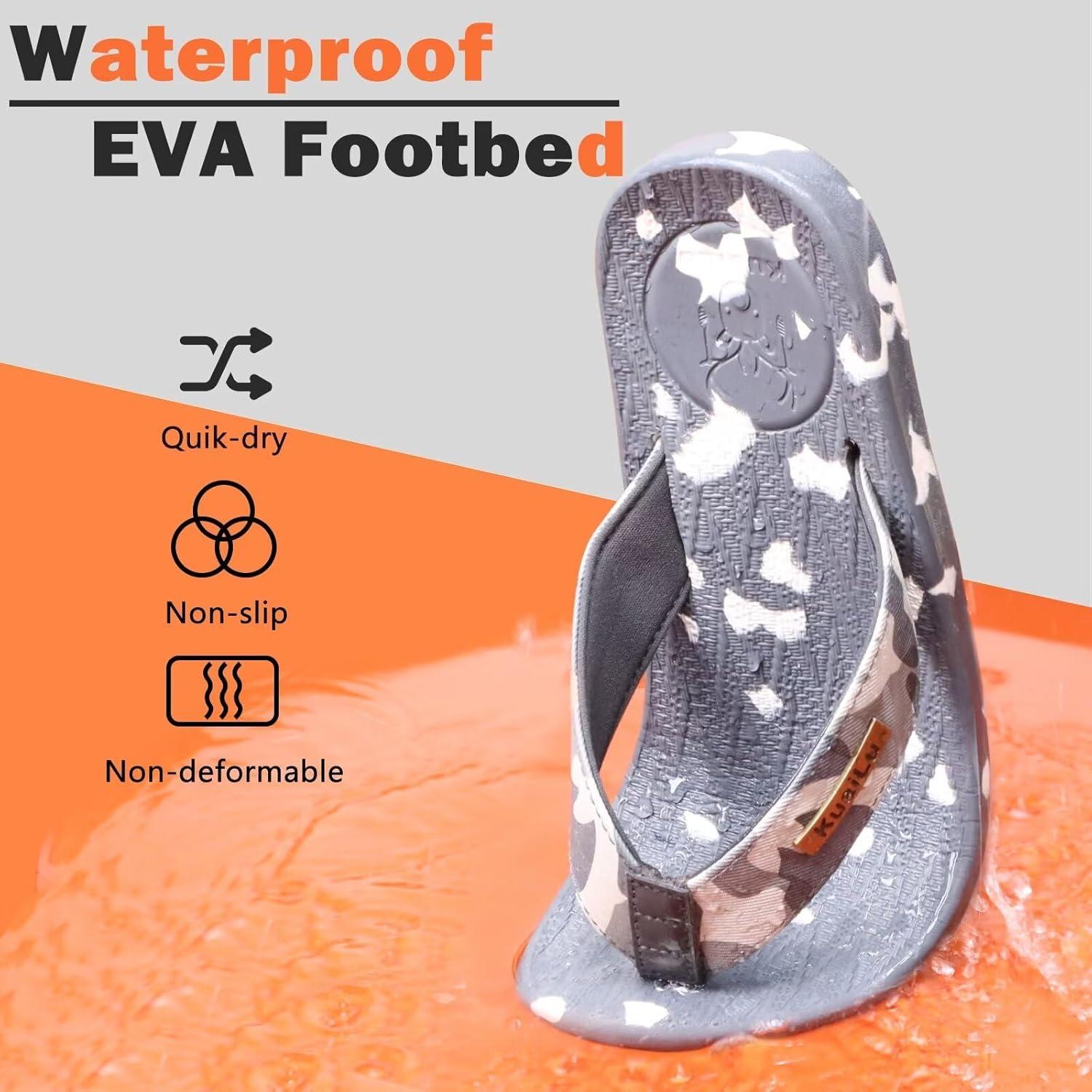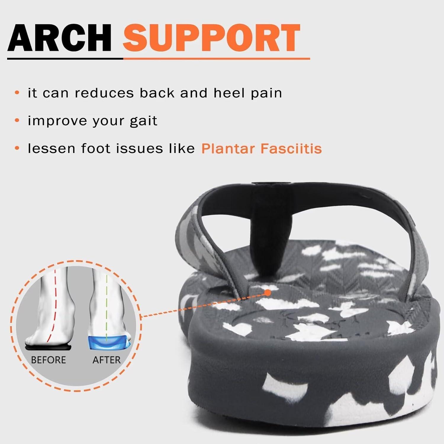 KuaiLu Mens Flip Flops Arch Support Comfortable Summer Beach Thong Sandals Yoga Foam Cushion Slip on Slippers(Camo-grey)