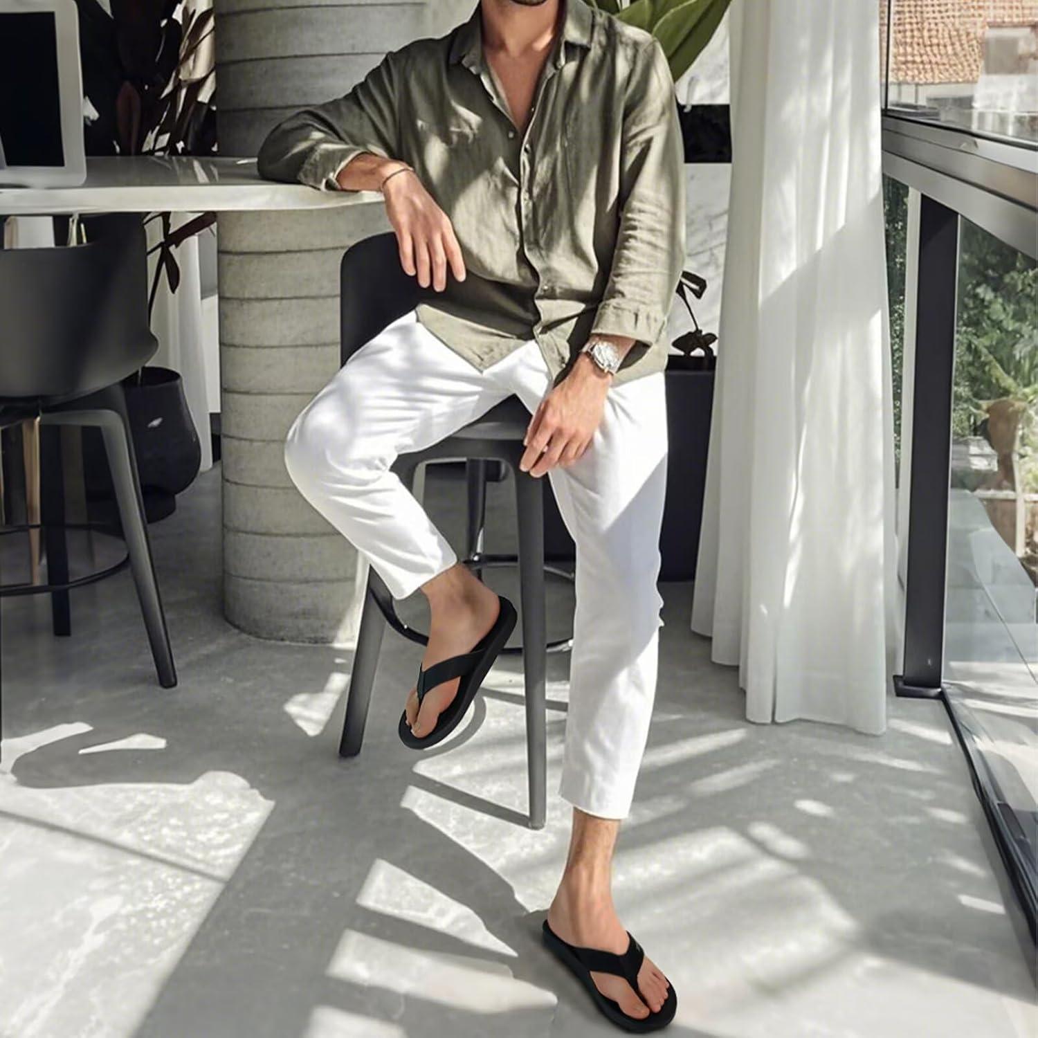Get the KuaiLu Mens Flip Flops Arch Support Comfortable Summer Beach Thong Sandals Yoga Foam Cushion Slip on Slippers(Pu-black) you want at a discounted price during our markdown sale event.