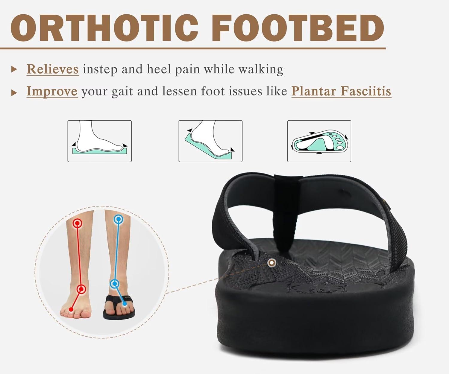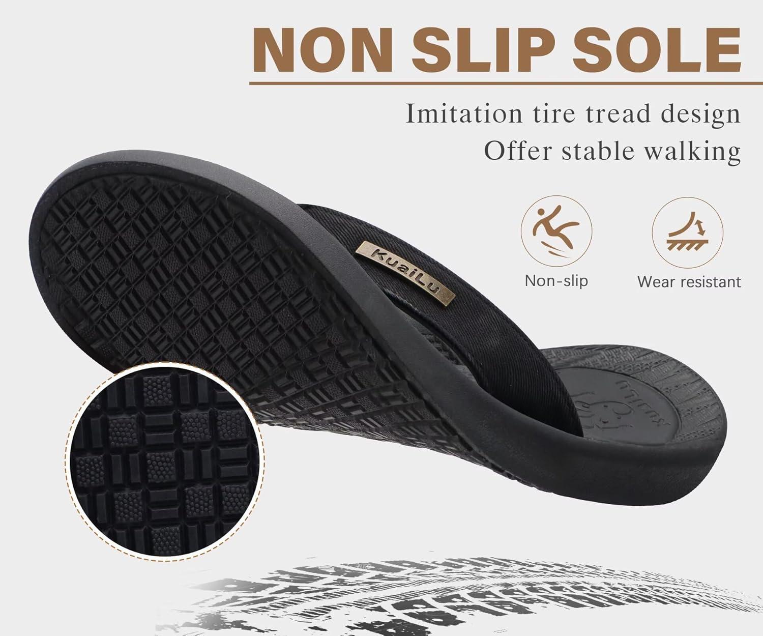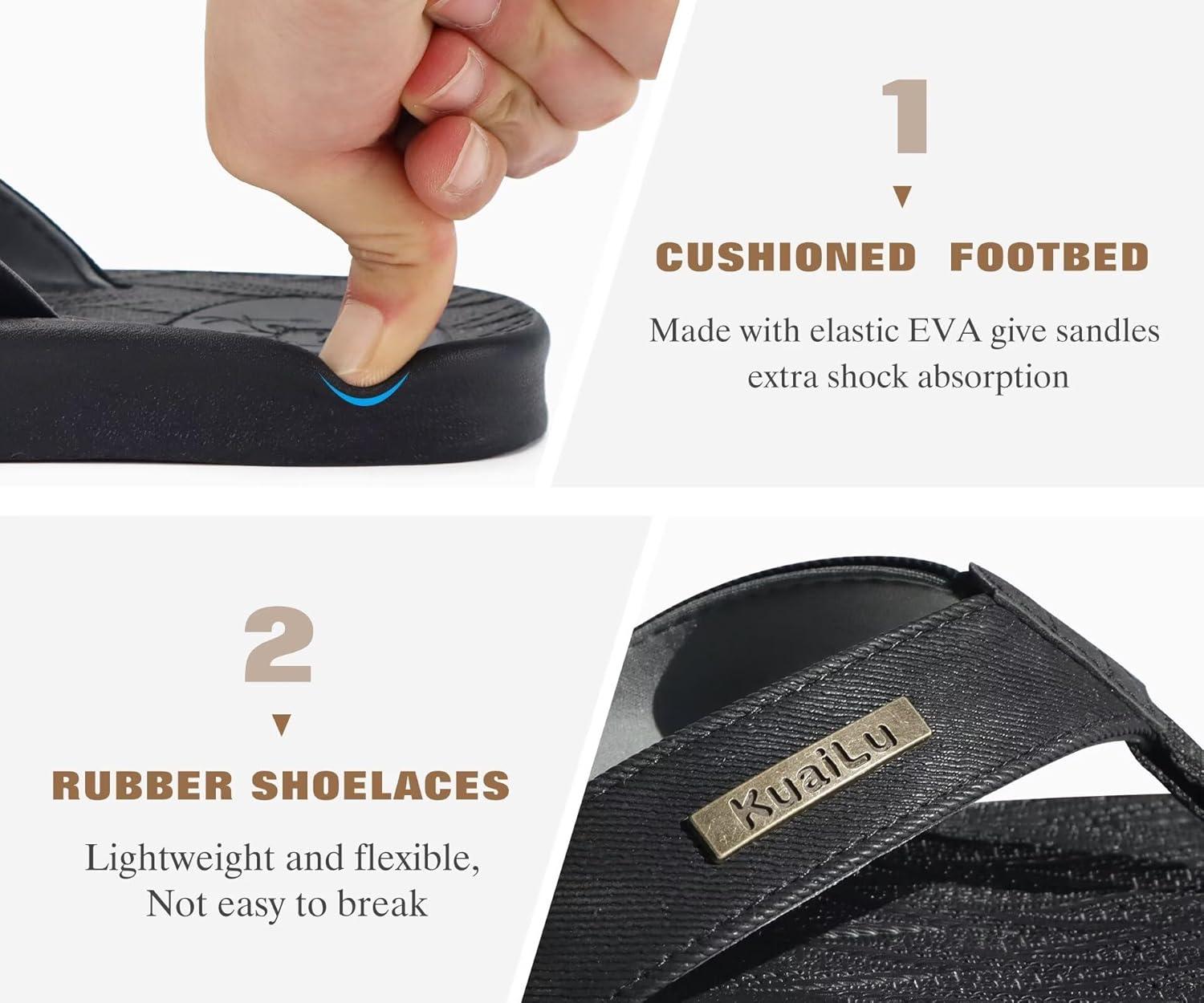 imageKuaiLu Mens Flip Flops Arch Support Comfortable Summer Beach Thong Sandals Yoga Foam Cushion Slip on SlippersPublack