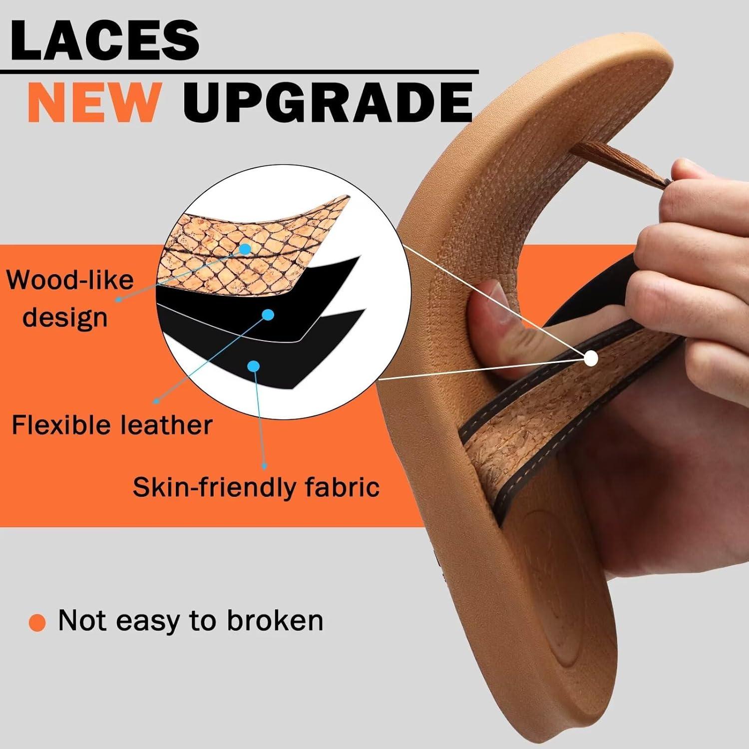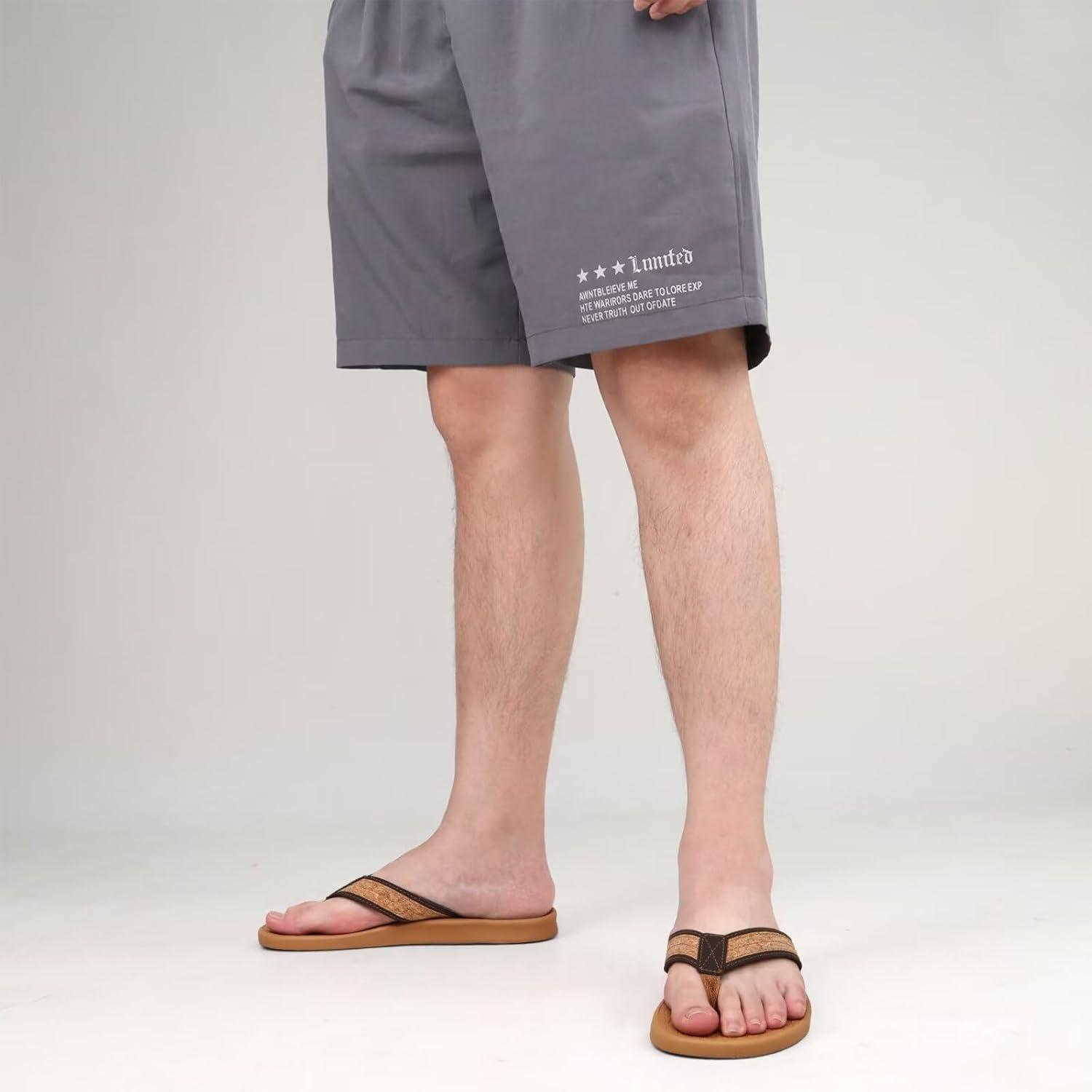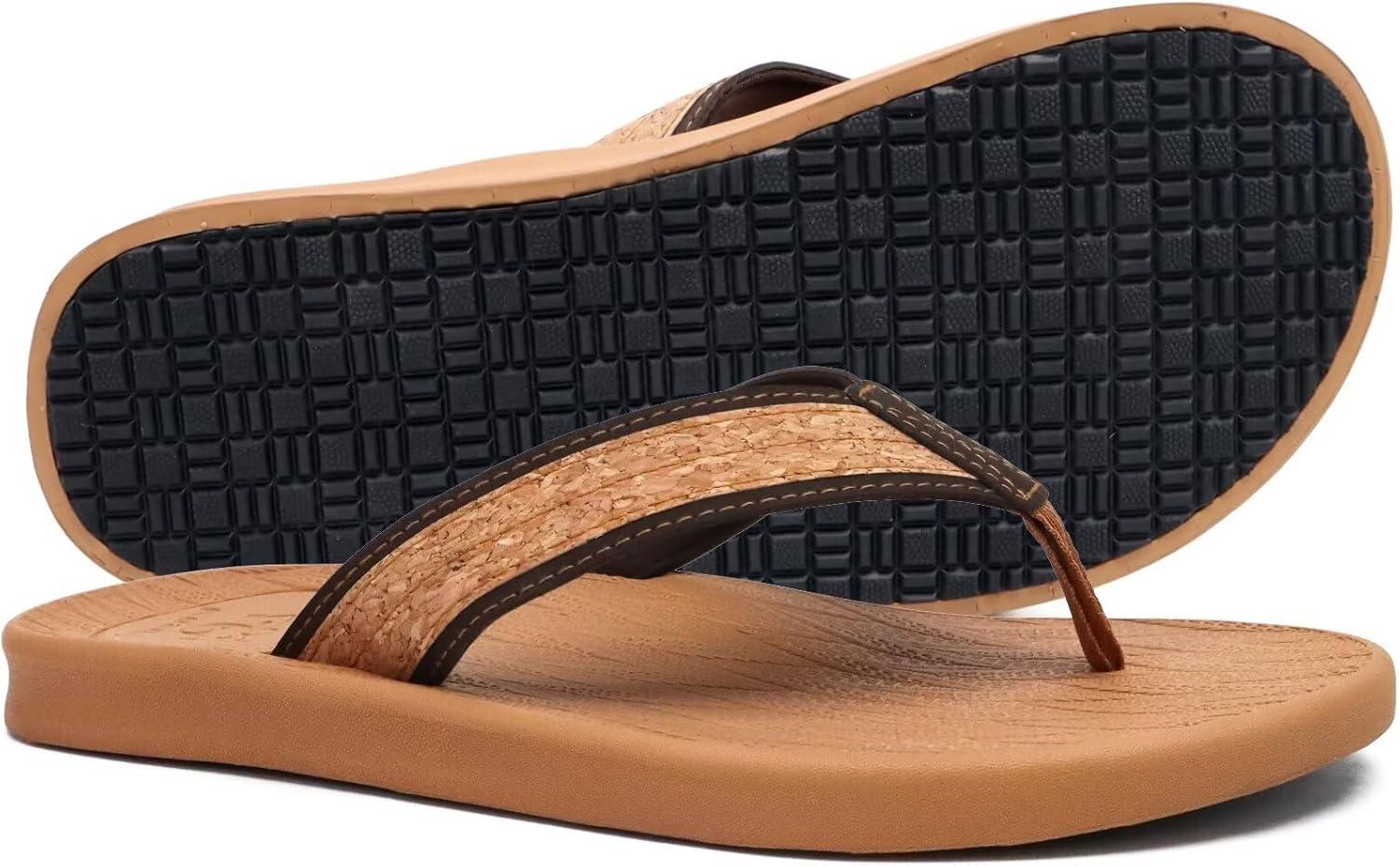KuaiLu Mens Flip Flops Arch Support Comfortable Summer Beach Thong Sandals Yoga Foam Cushion Slip on Slippers(Wood-like Khaki)