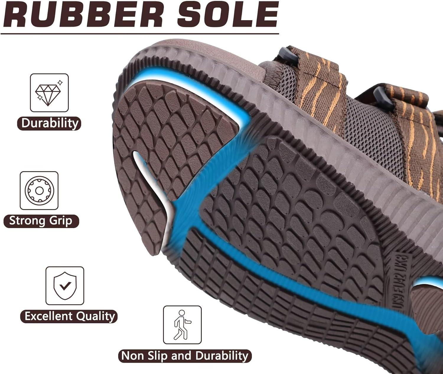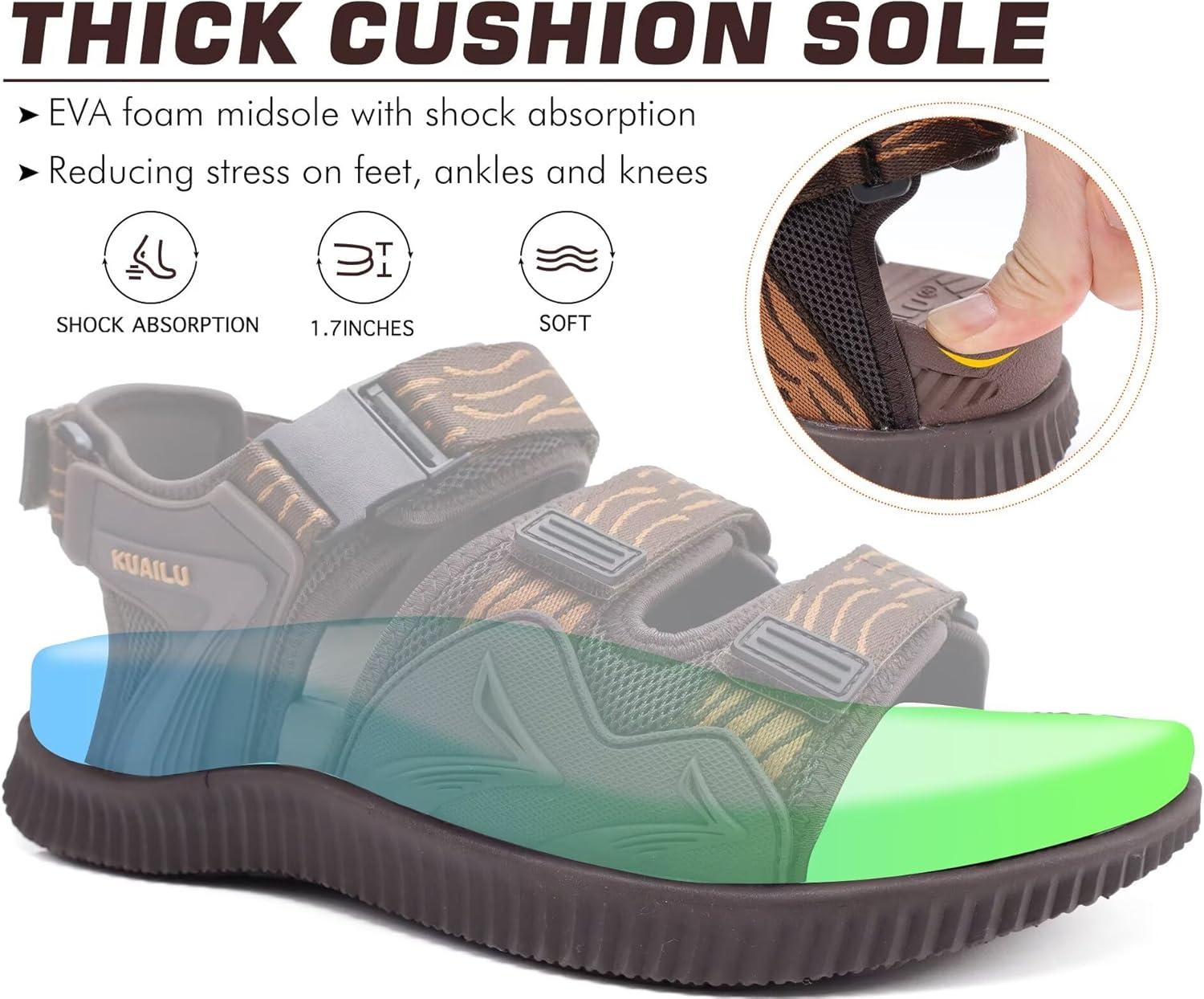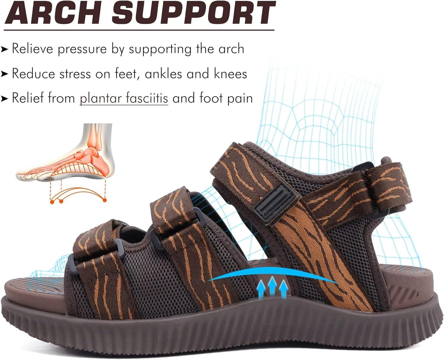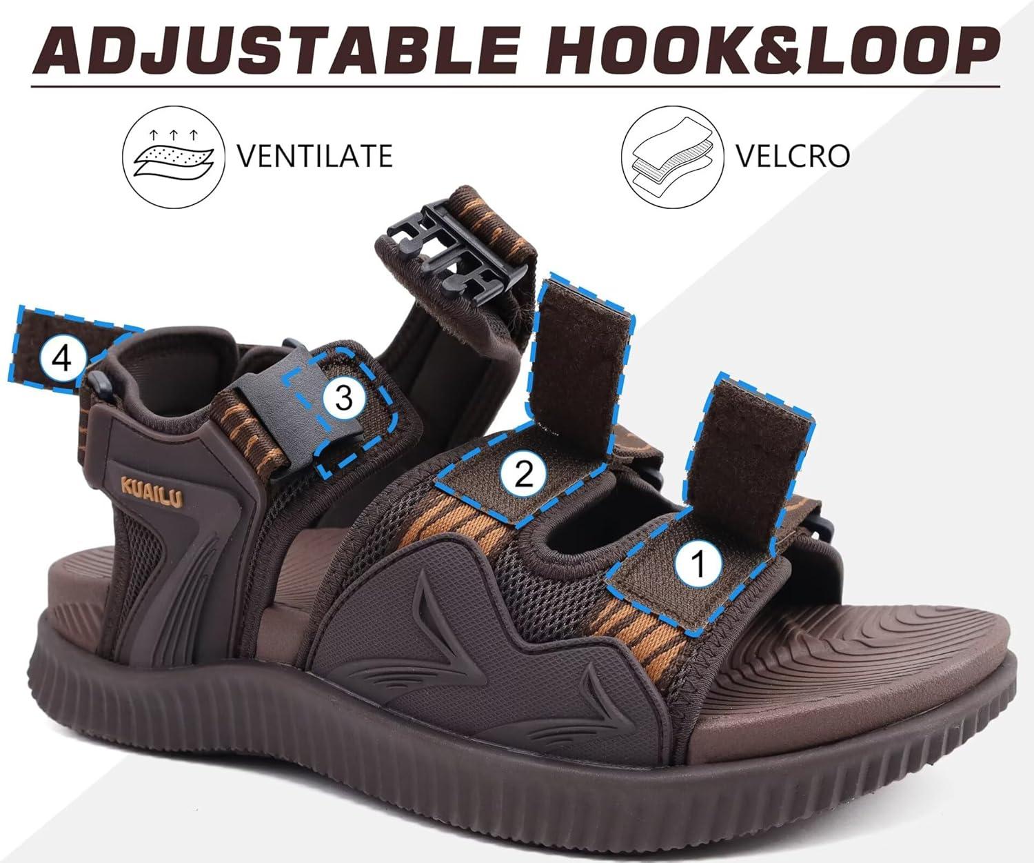 KuaiLu Mens Hiking Sandals with Arch Support Orthopedic Walking Recovery Sandals for Plantar Fasciitis Open Toe Summer Athletic Sport Comfortable Cushion Breathable Outdoor Water Sandals Size7-13(Brown)
