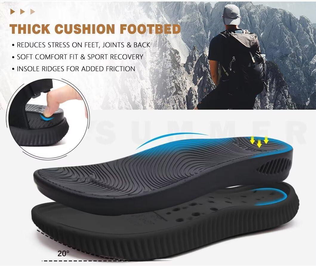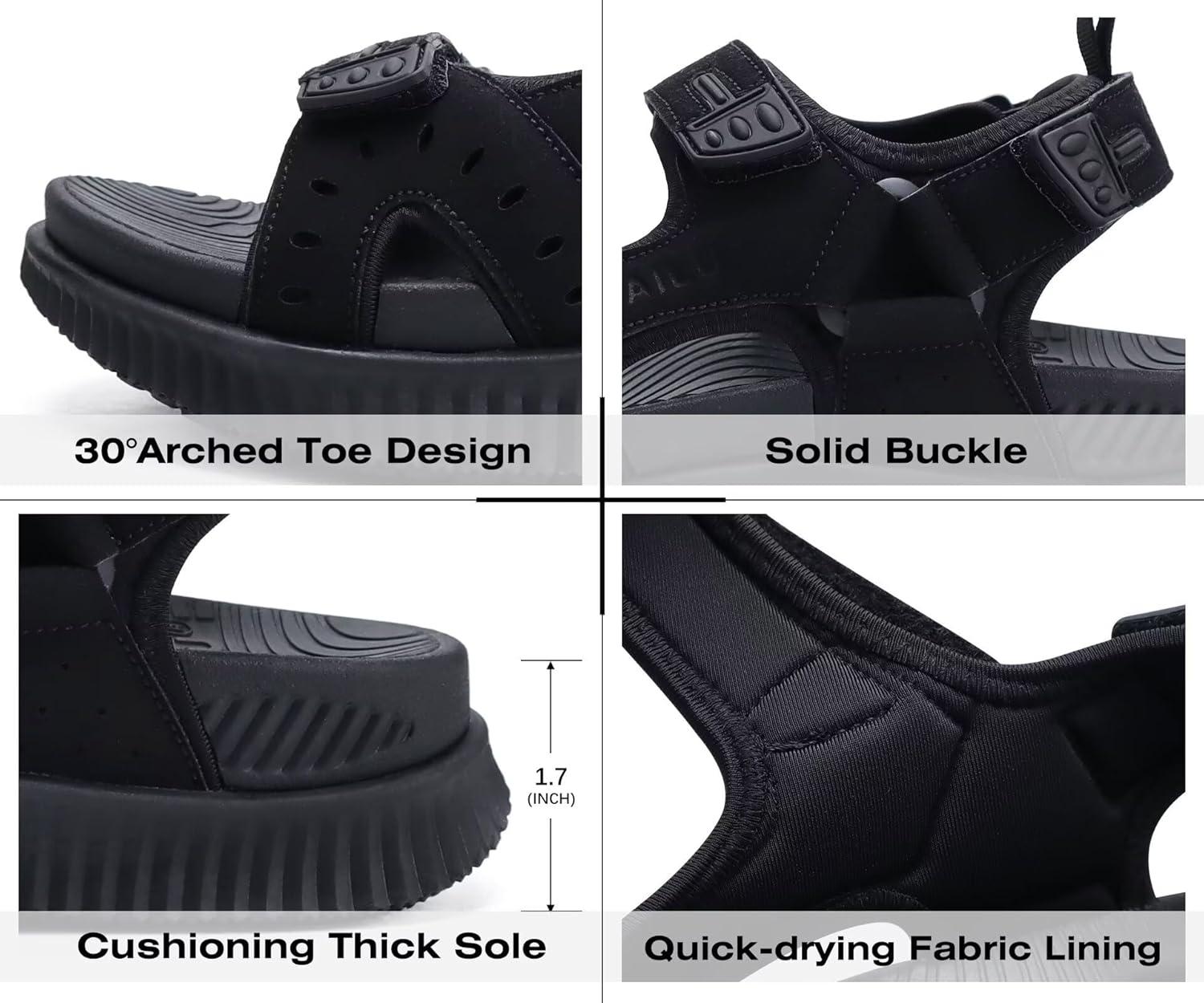 KuaiLu Mens Hiking Sandals With Arch Support Sport Recovery Athletic Walking Sandals For Man Outdoor Summer Casual Thick Cushion Beach Water Fisherman Sandal Size 7-15(Black)