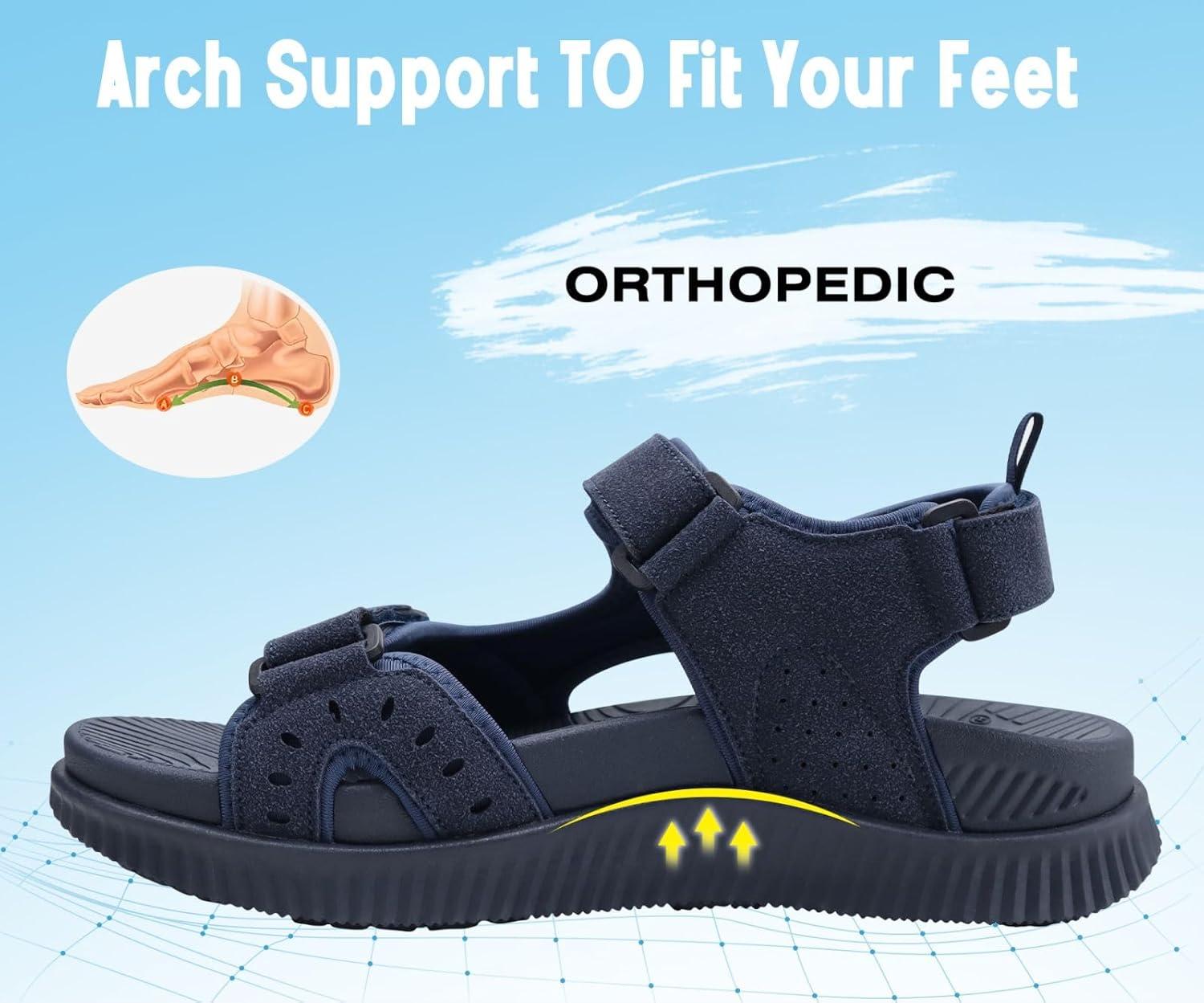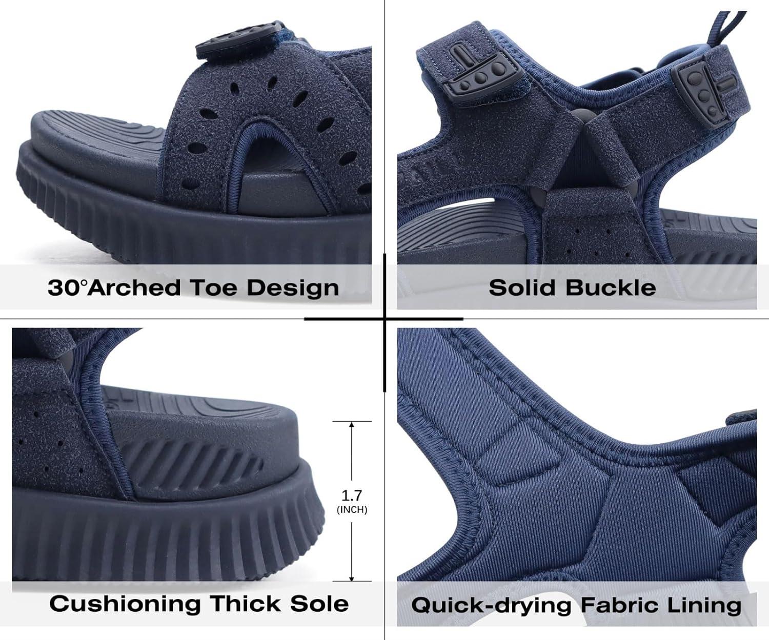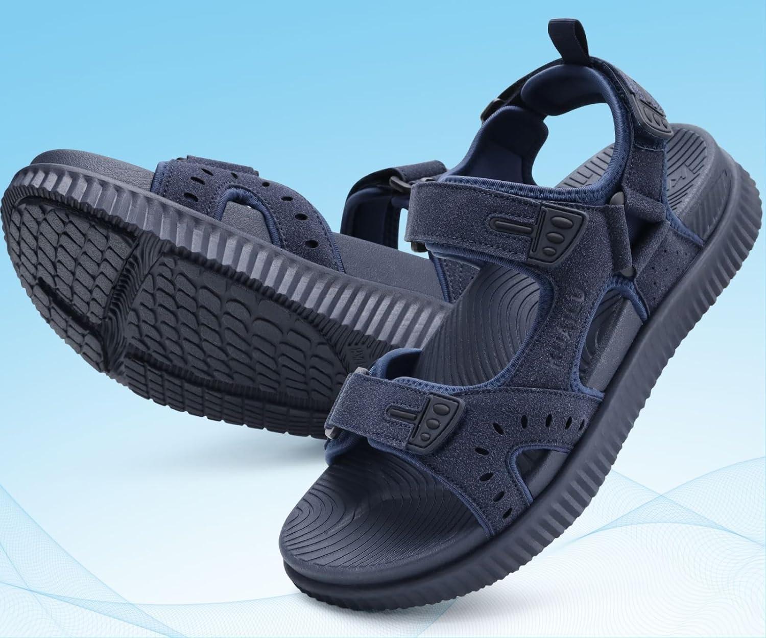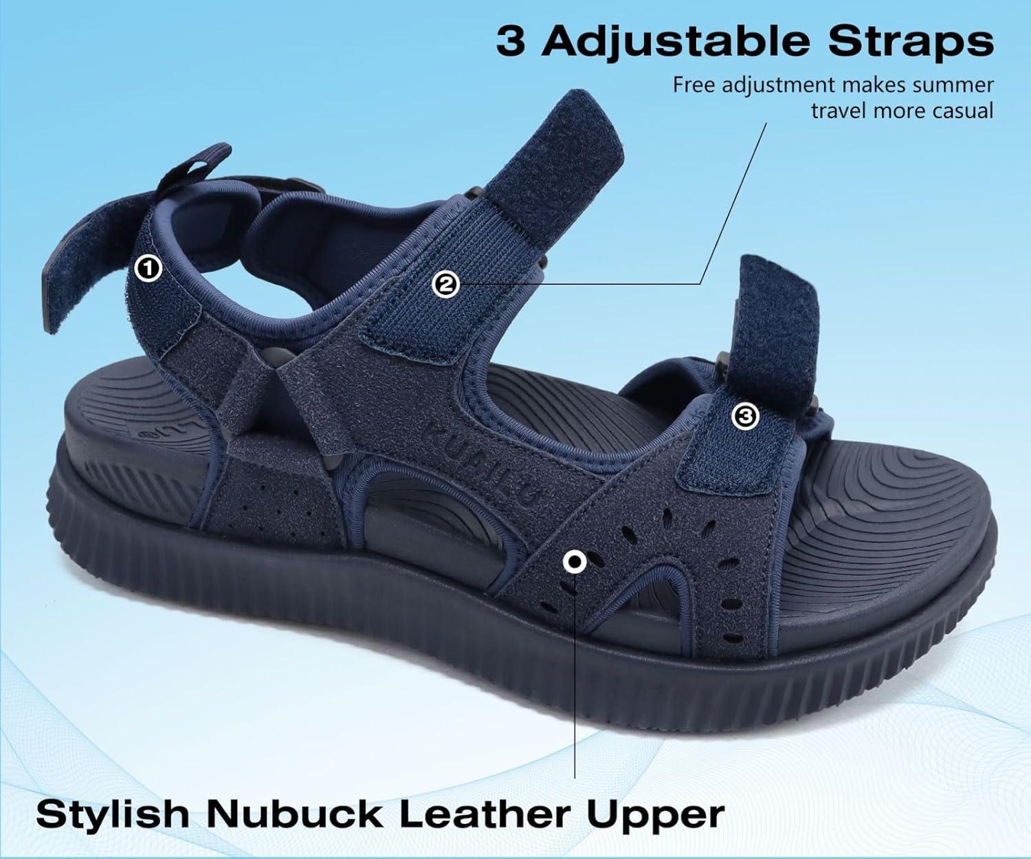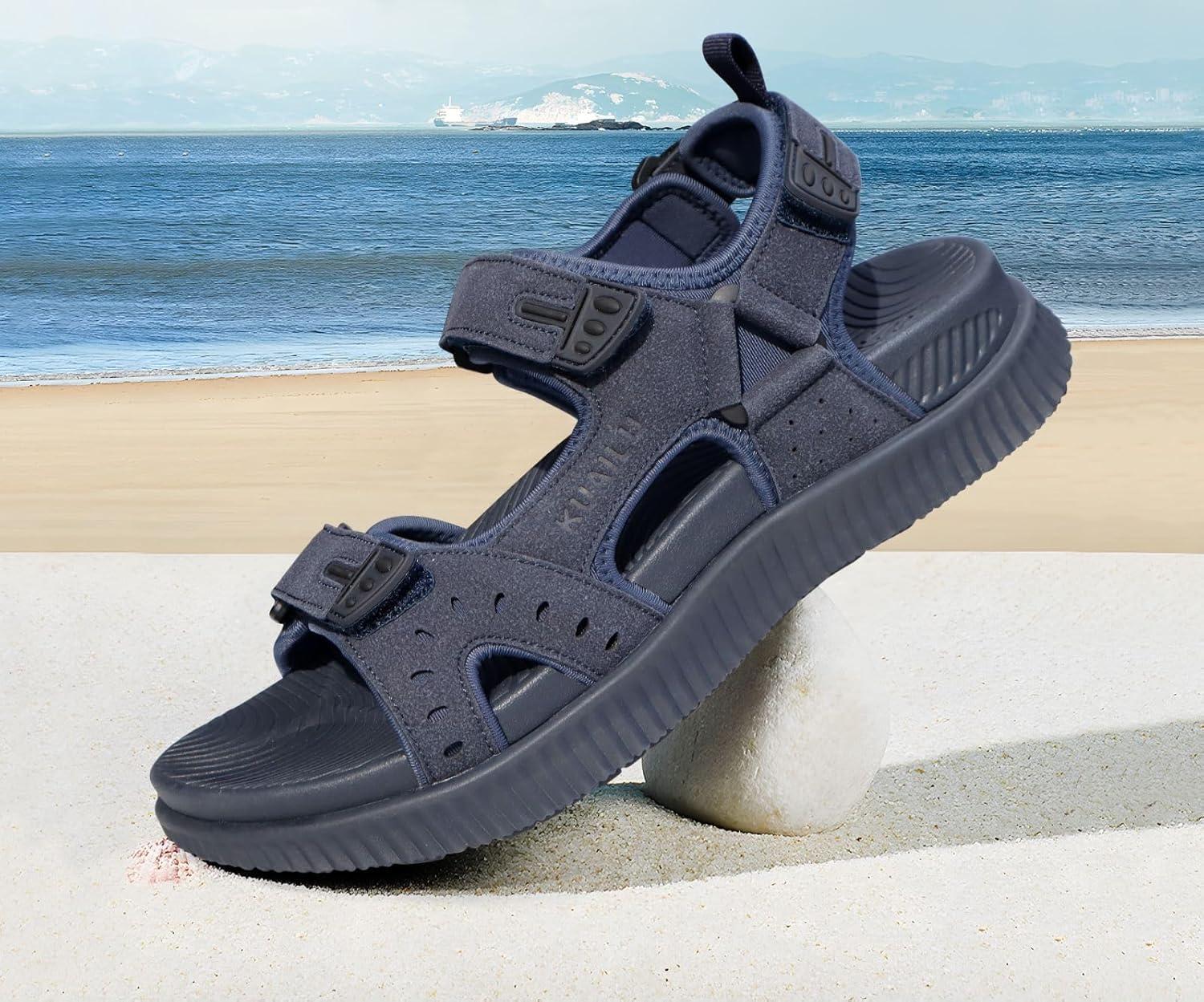 KuaiLu Mens Hiking Sandals With Arch Support Sport Recovery Athletic Walking Sandals For Man Outdoor Summer Casual Thick Cushion Beach Water Fisherman Sandal Size 7-15(Dark Blue)