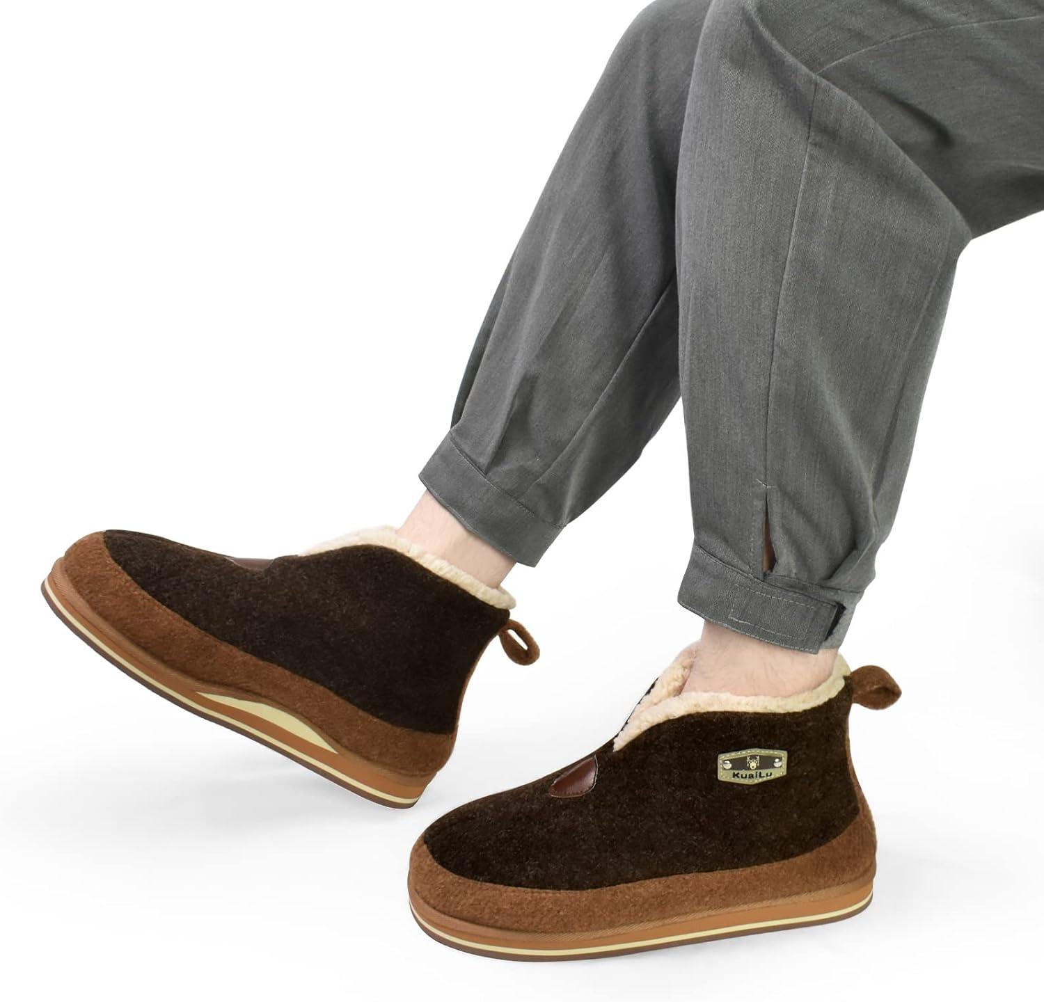 KuaiLu Mens House Slippers Booties Cozy Memory Foam Boots Warm Plush Lining Winter Felt Home Bedroom Slipper Socks Indoor Outdoor Non-Slip Shoes(Reddish Brown)