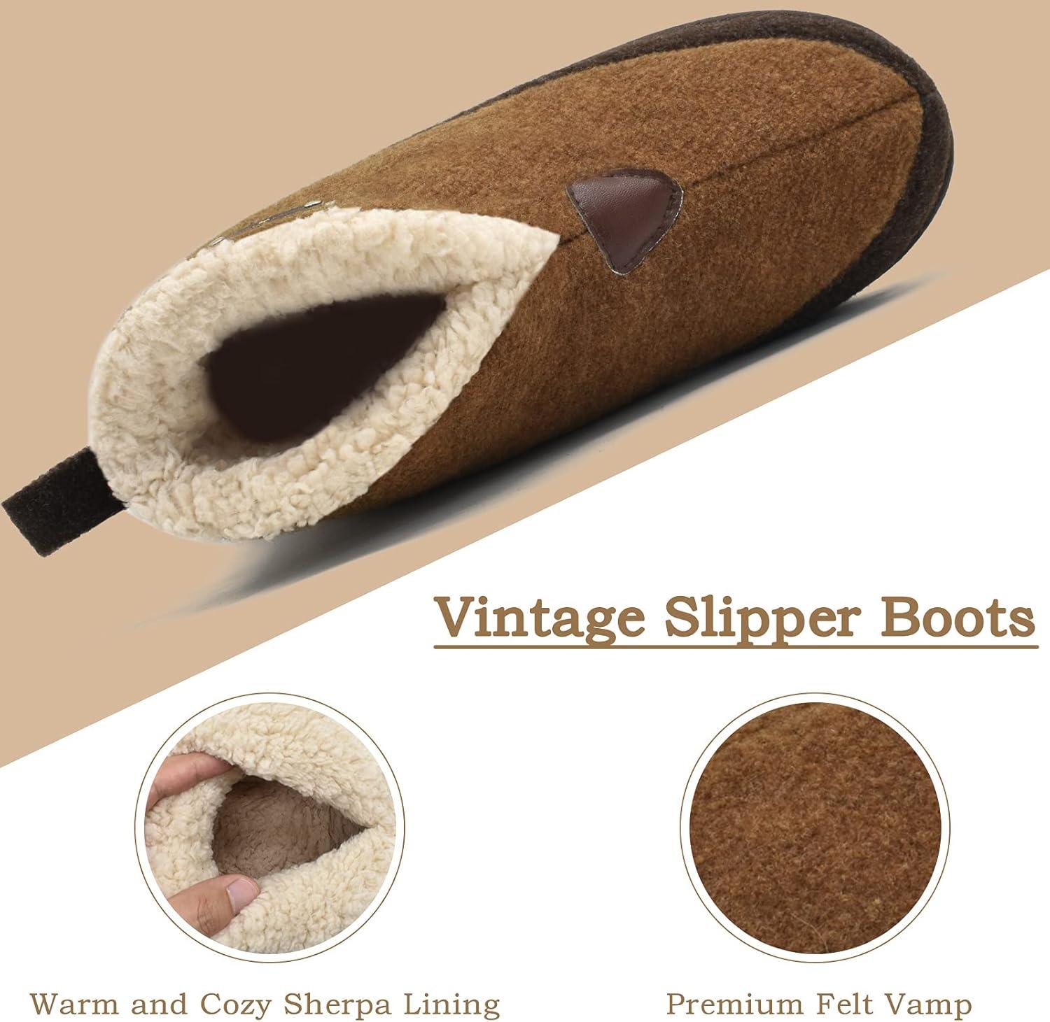 KuaiLu Mens House Slippers Booties Cozy Memory Foam Boots Warm Plush Lining Winter Felt Home Bedroom Slipper Socks Indoor Outdoor Non-Slip Shoes(Khaki)