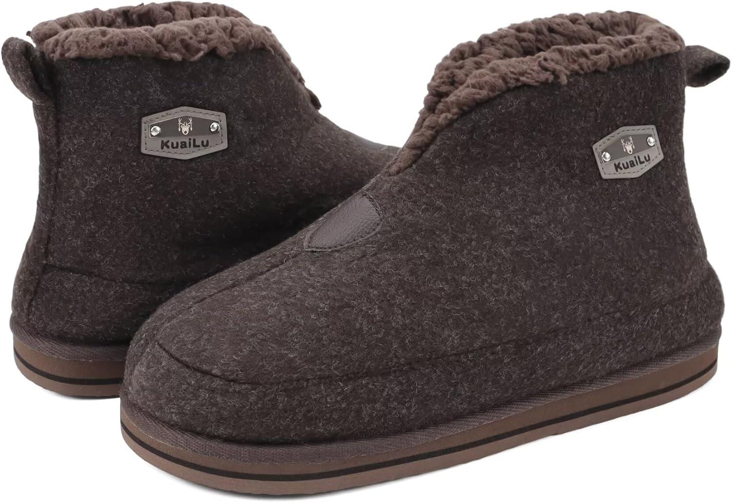KuaiLu Mens House Slippers Booties Cozy Memory Foam Boots Warm Plush Lining Winter Felt Home Bedroom Slipper Socks Indoor Outdoor Non-Slip Shoes(Reddish Brown)