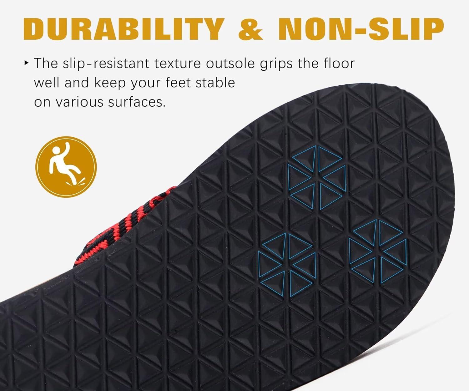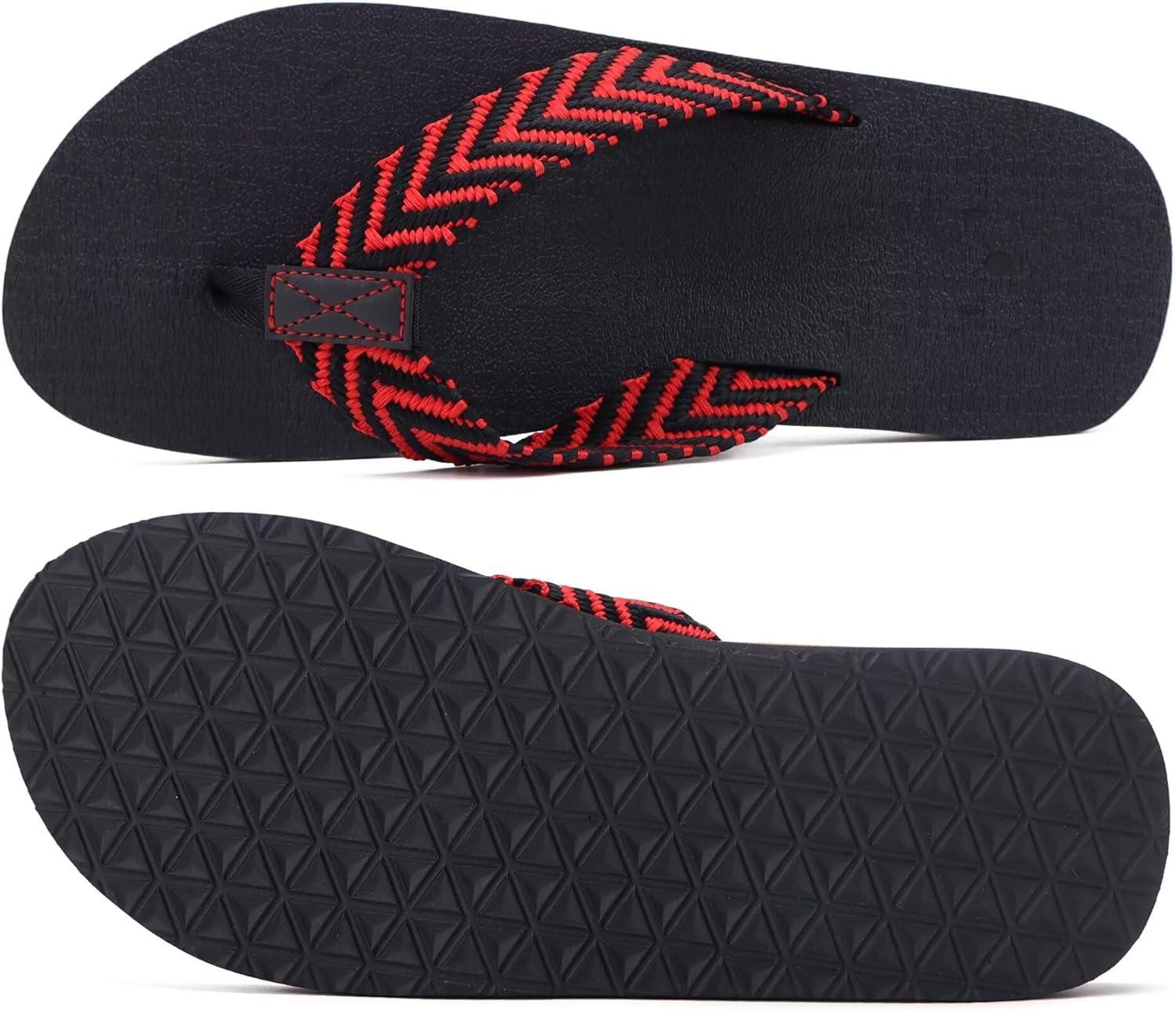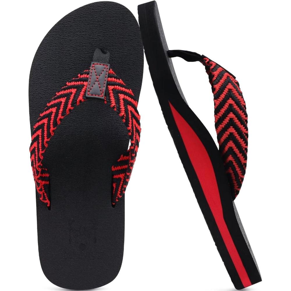 KuaiLu Men’s Leather Flip Flops Arch Support Summer Beach Pool Water Thong Sandals Waterproof Rubber Walking Shoes(Black/Red)