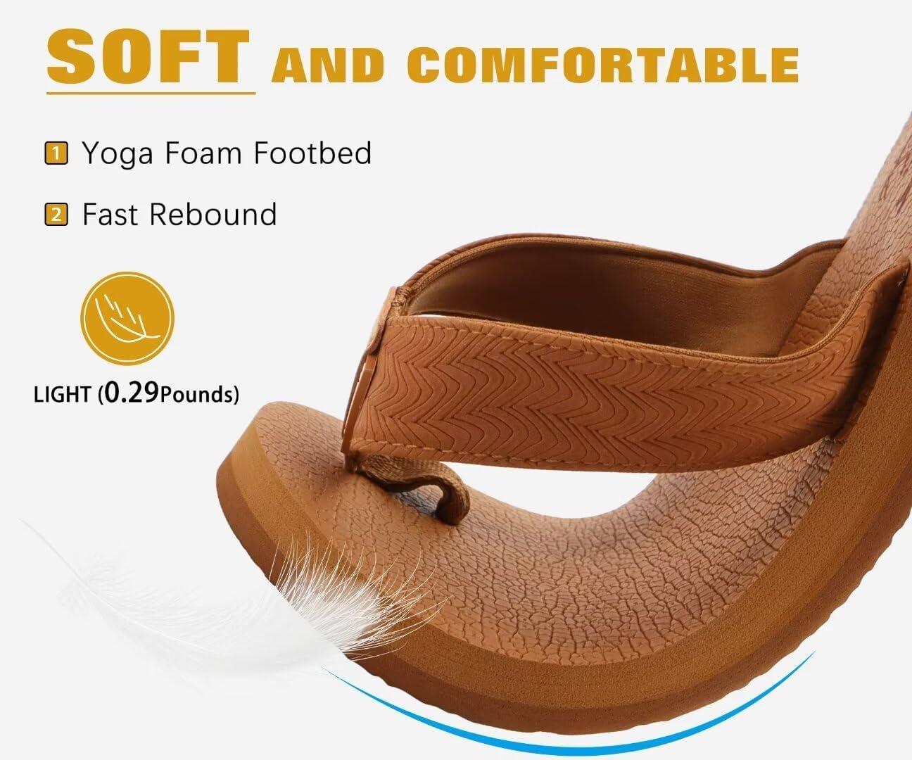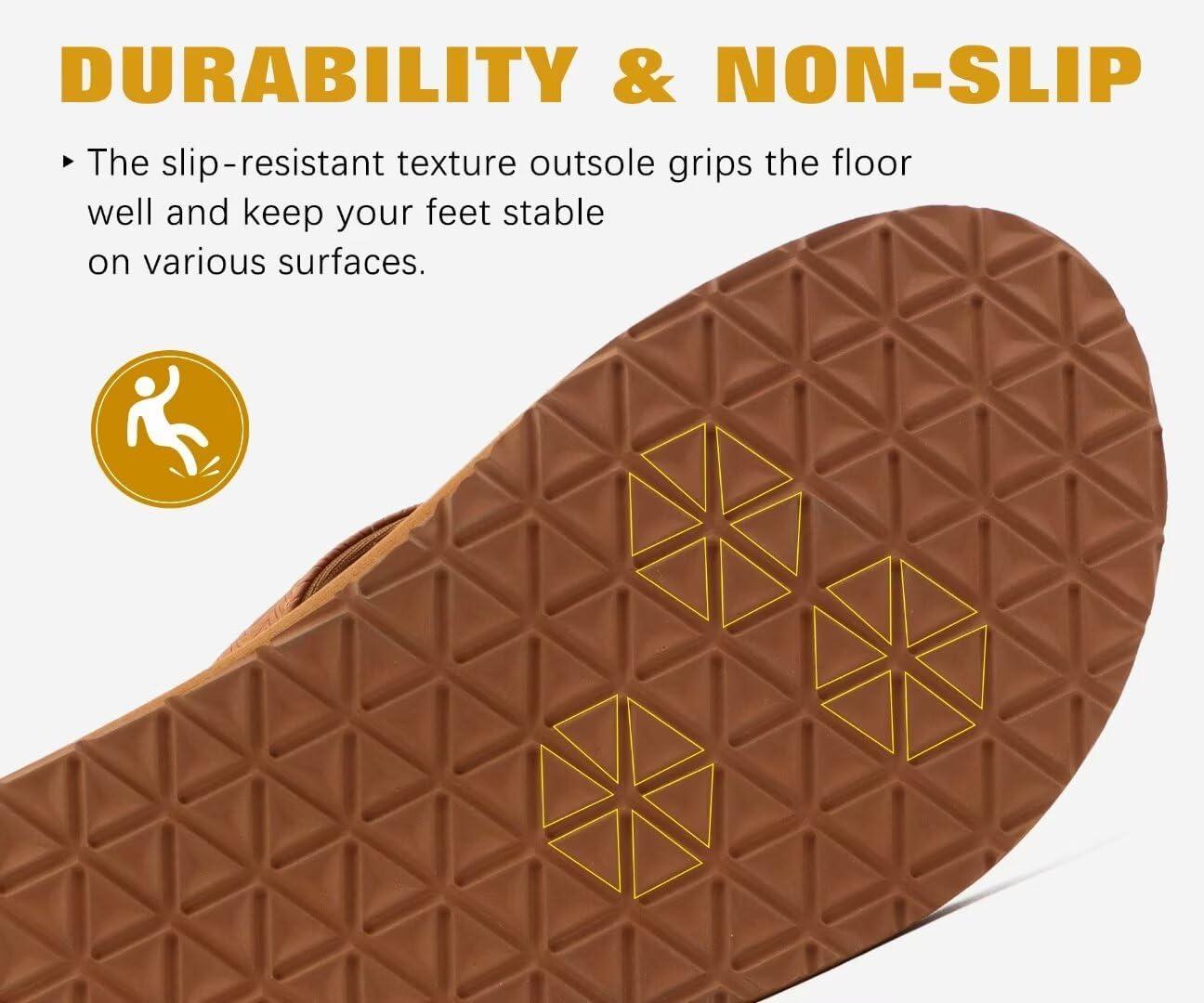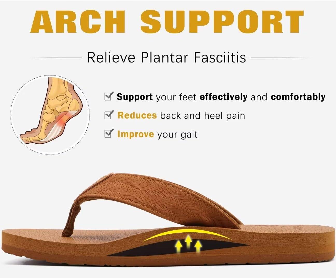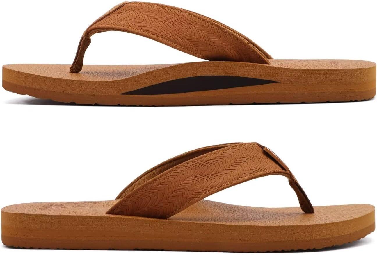 KuaiLu Men's Leather Flip Flops Arch Support Summer Beach Pool Water Thong Sandals Waterproof Rubber Walking Shoes(Tan)