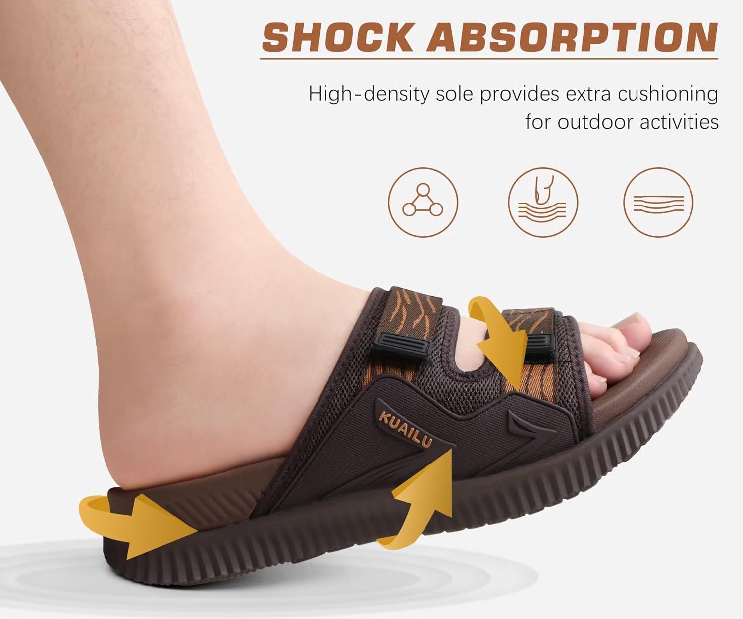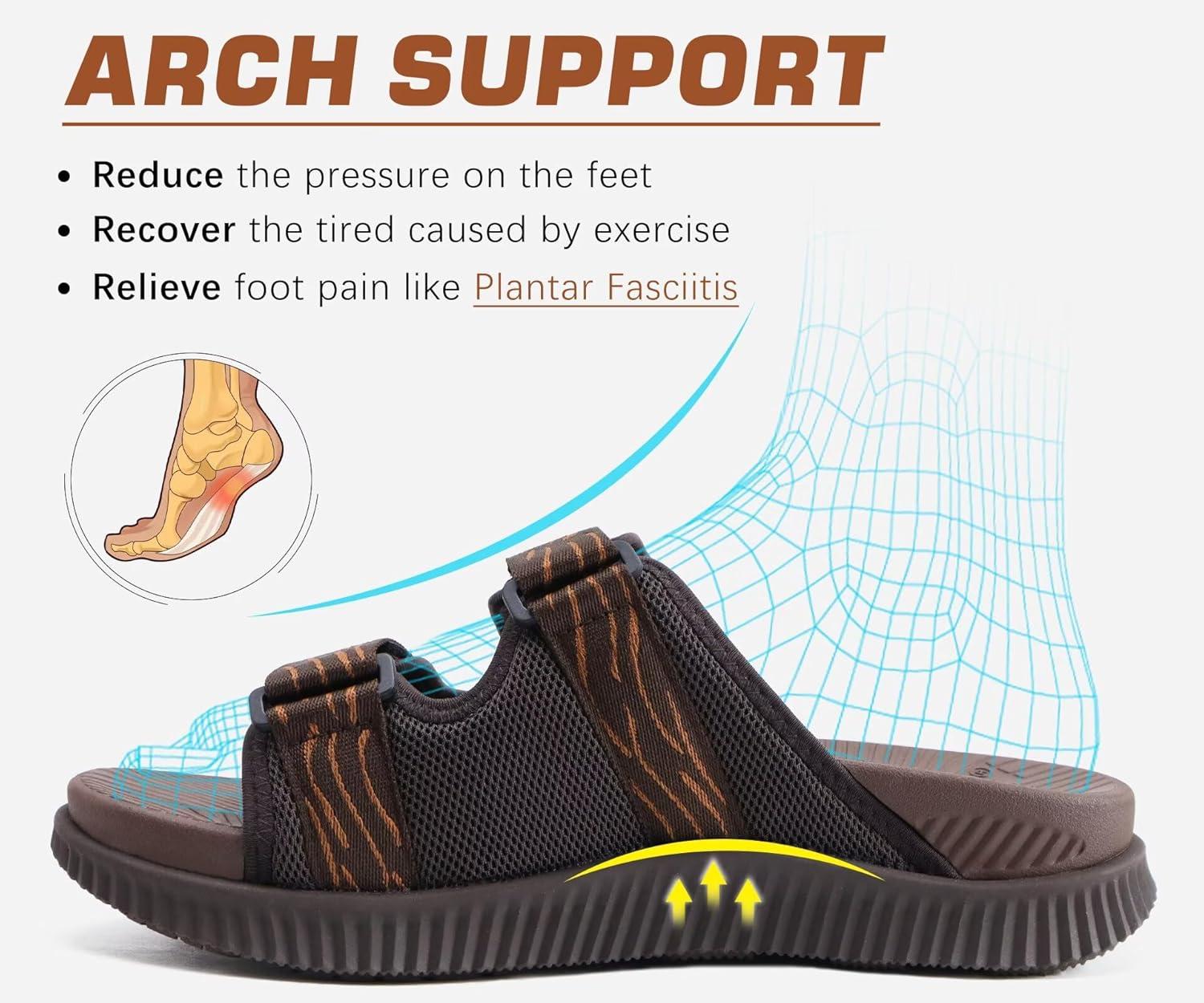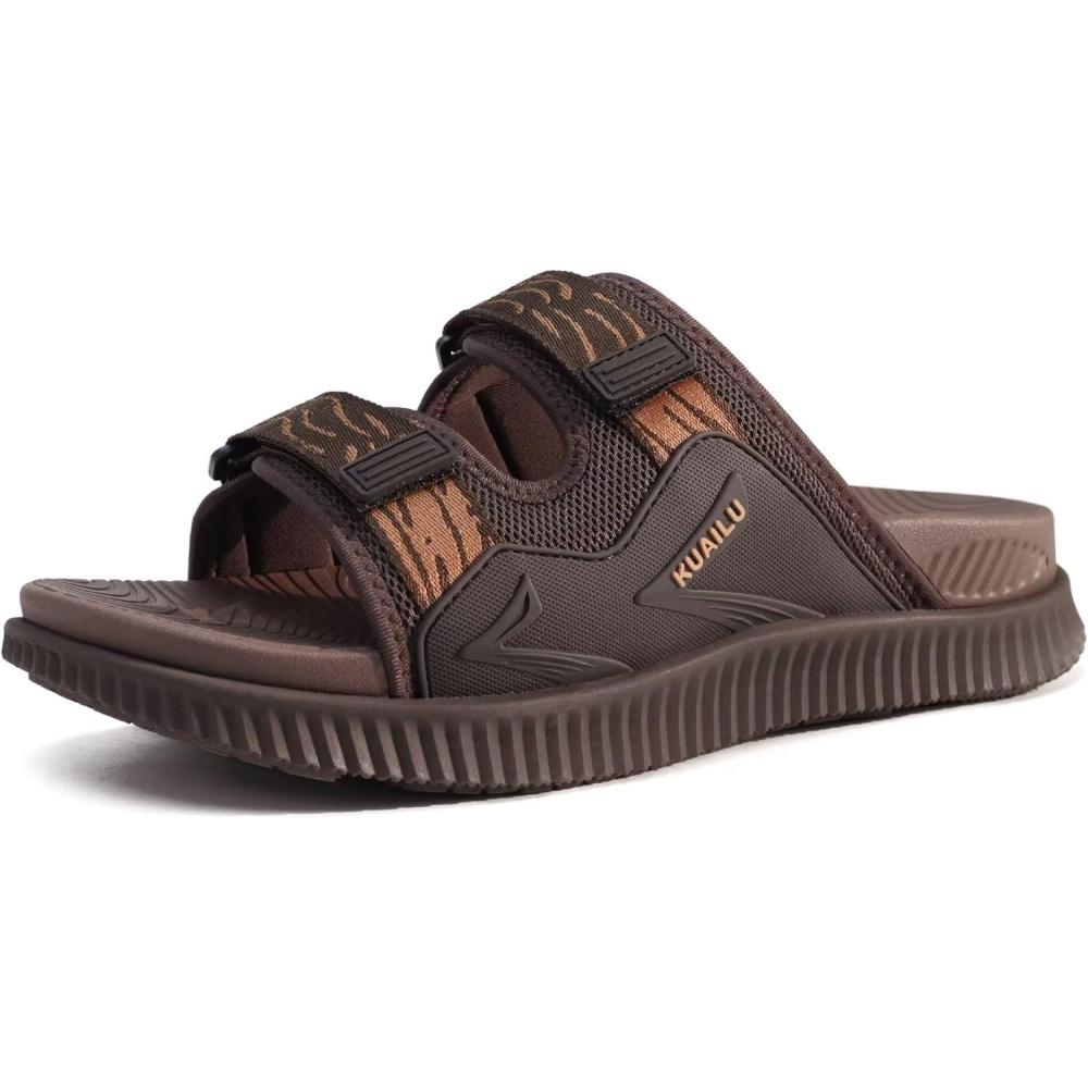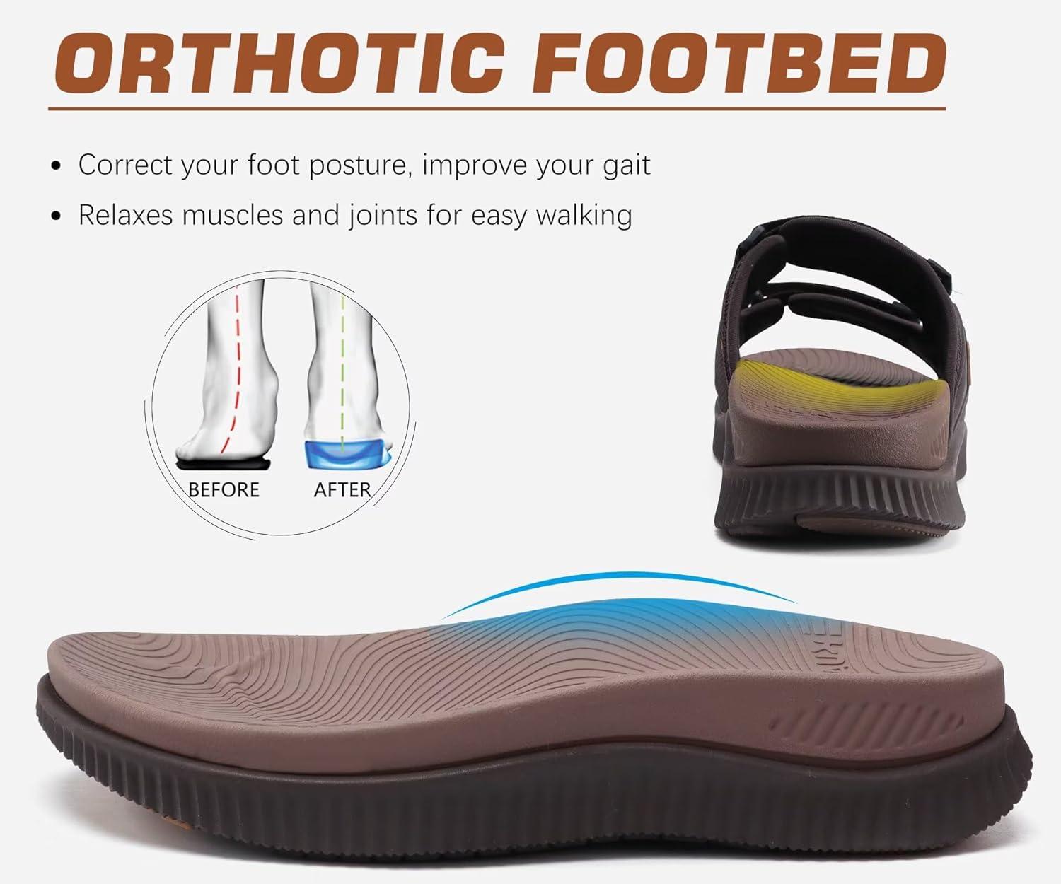KuaiLu Mens Orthotic Sandals Athletic Thick Cushion Recovery Sport Slides Adjustable Strap Open Toe Walking Sandles With Comfortable Plantar Fasciitis Arch Support(Brown)