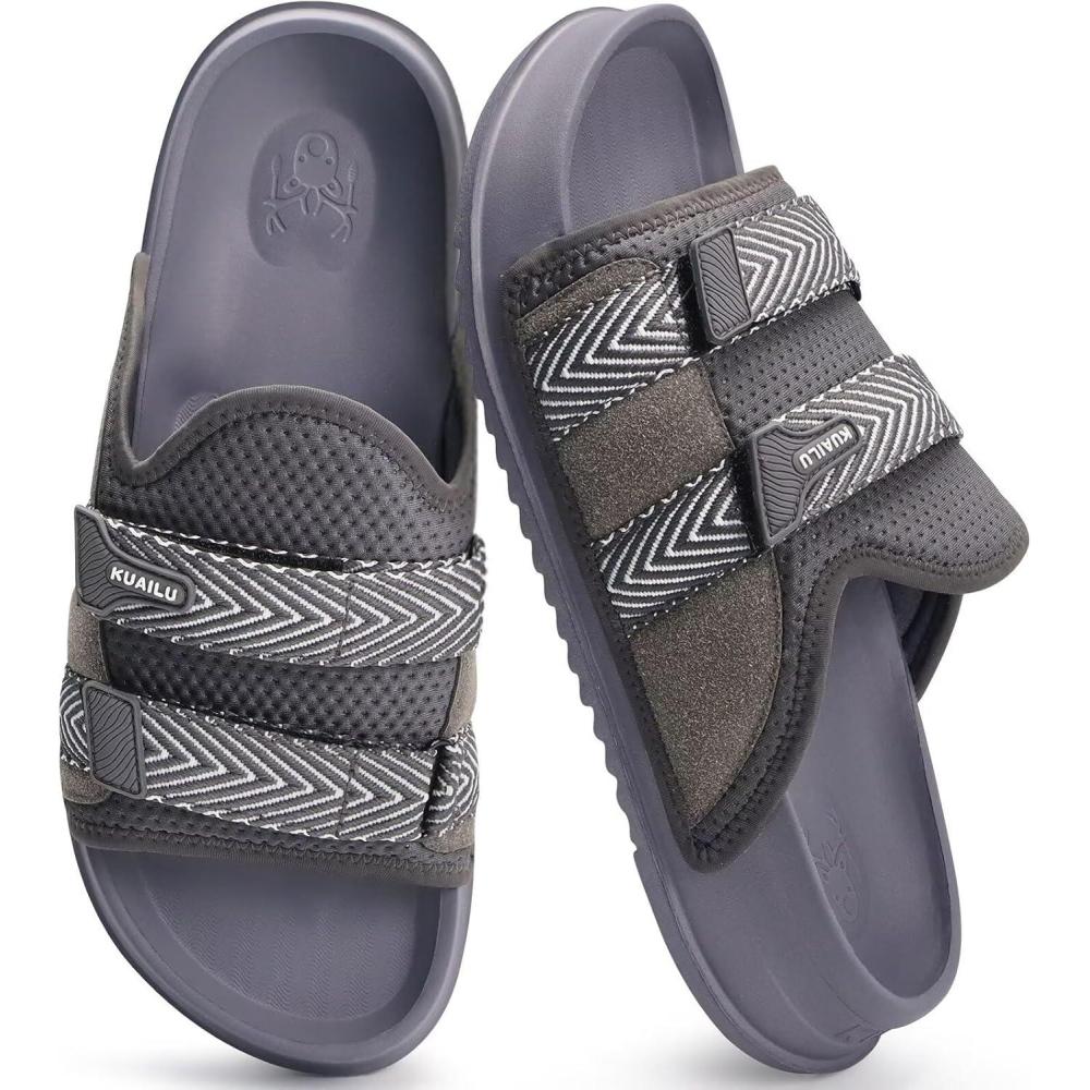 imageKuaiLu Mens Orthotic Sandals Comfortable Arch Support Fabric Sandal Slippers Shoes Man Casual Summer Cushion Slides Slip On Indoor Outdoor  Ultrasoft Comfort Fit FootbedDark Grey