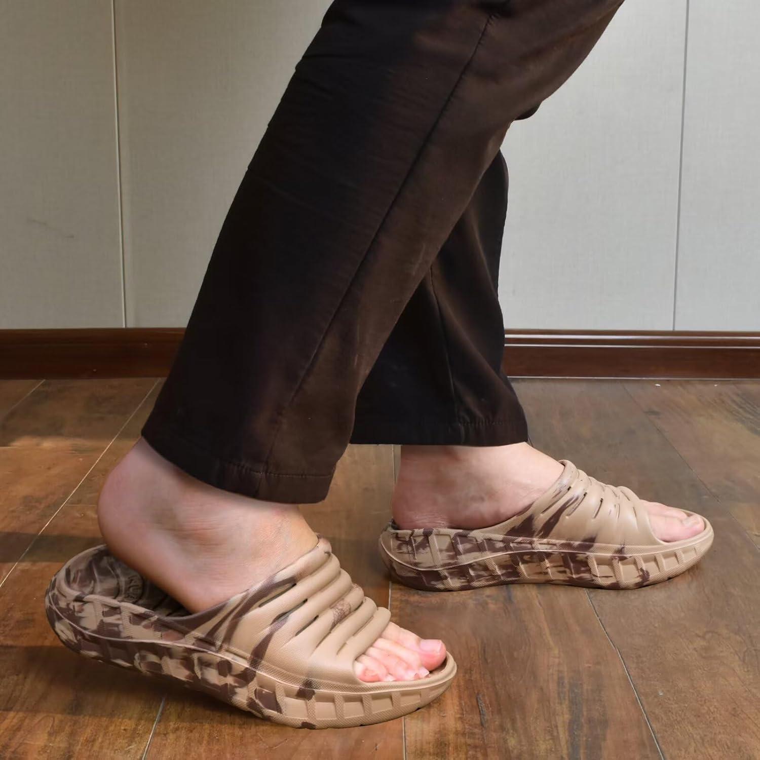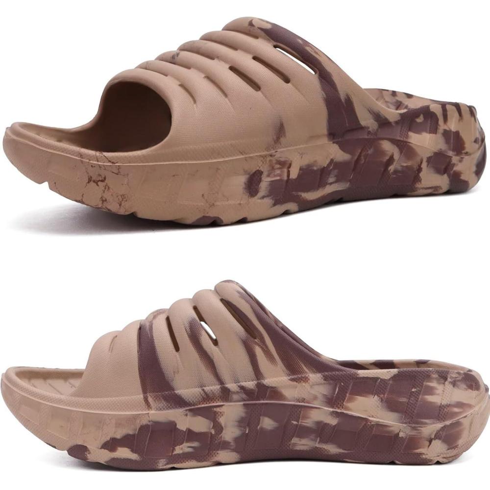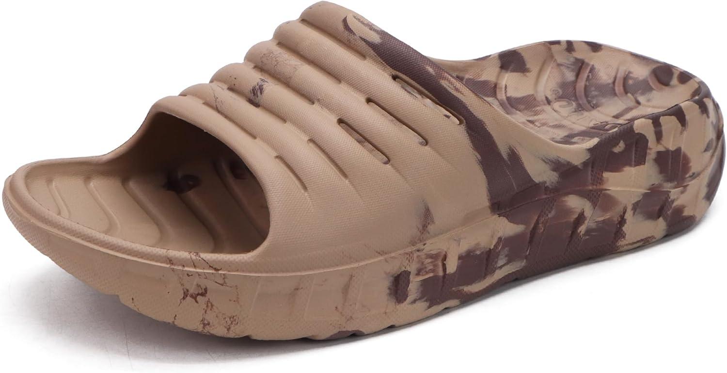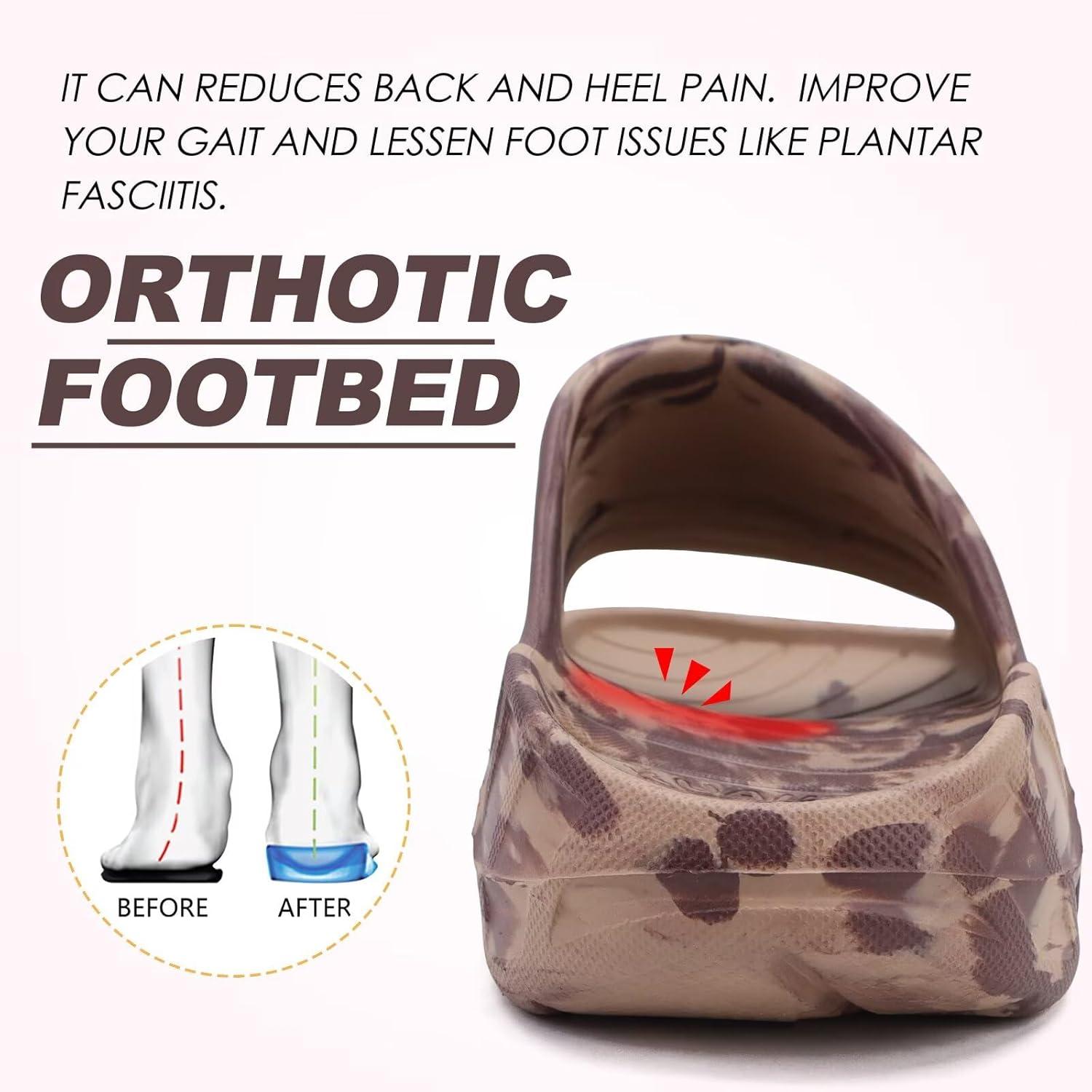 KuaiLu Mens Recovery Sandals Orthotic Thick Cushion Open Toe Sport Slides With Comfortable Plantar Fasciitis Arch Support, Reduces Stress on Feet, Joints & Back Post-Exercise(Mocha)