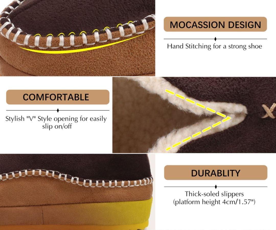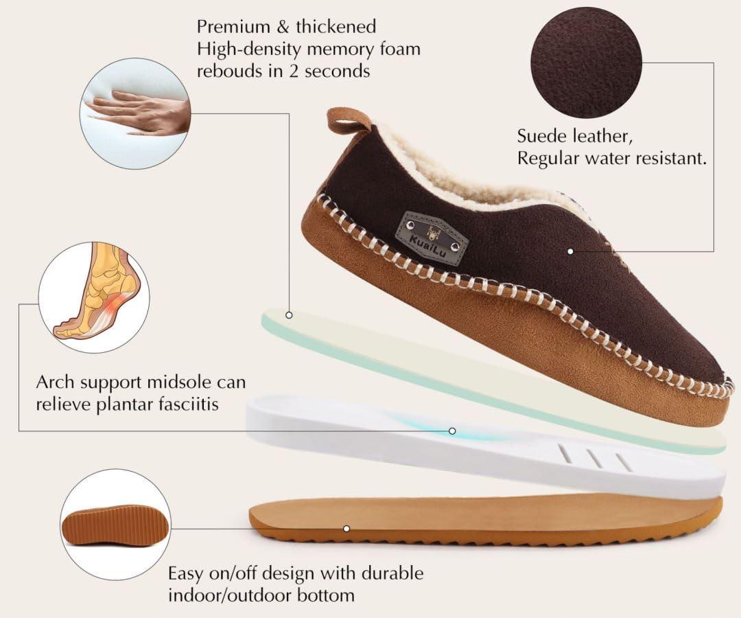 KuaiLu Men's Slippers Cozy Memory Foam House Slipper Shoes Warm Suede Winter Moccasins Slip-on Boots Slippers For Man with Fuzzy Sherpa Lining & Indoor/Outdoor Hard Rubber Sole(Khaki Brown)