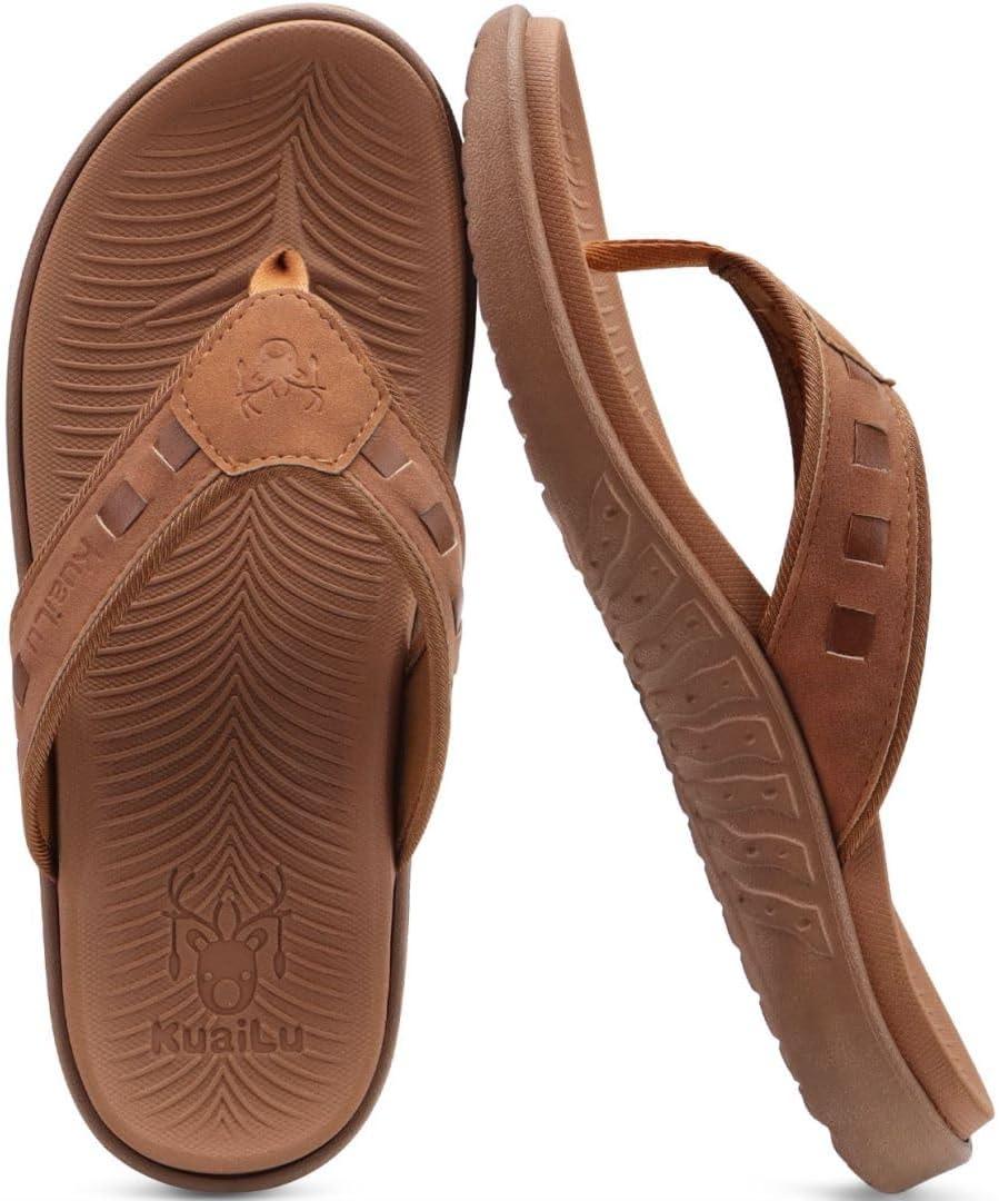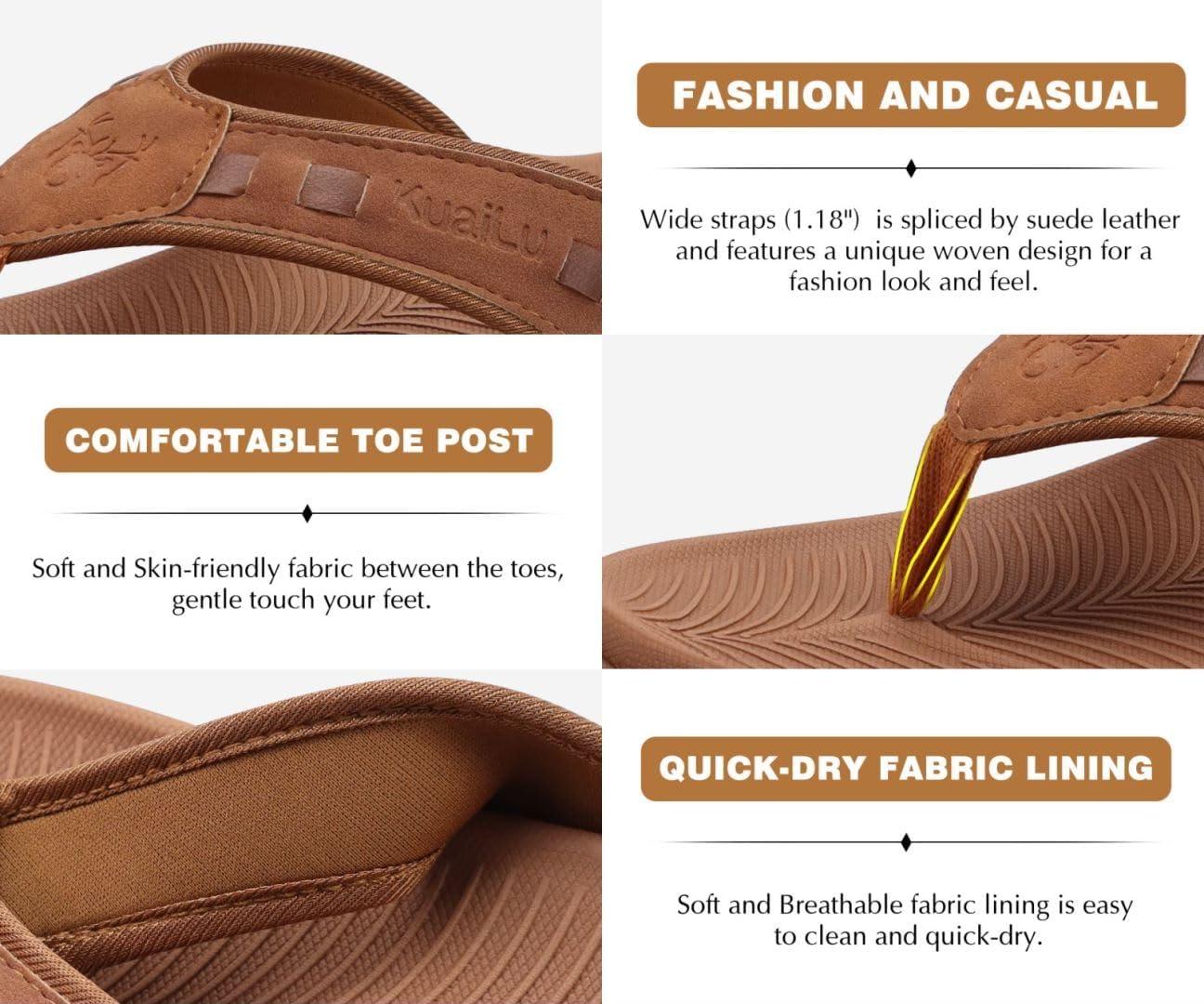 KuaiLu Mens Sport Flip Flops Comfort Orthotic Thong Sandals with Plantar Fasciitis Arch Support Outdoor Summer Beach Size 7~15(Fashion Khaki)