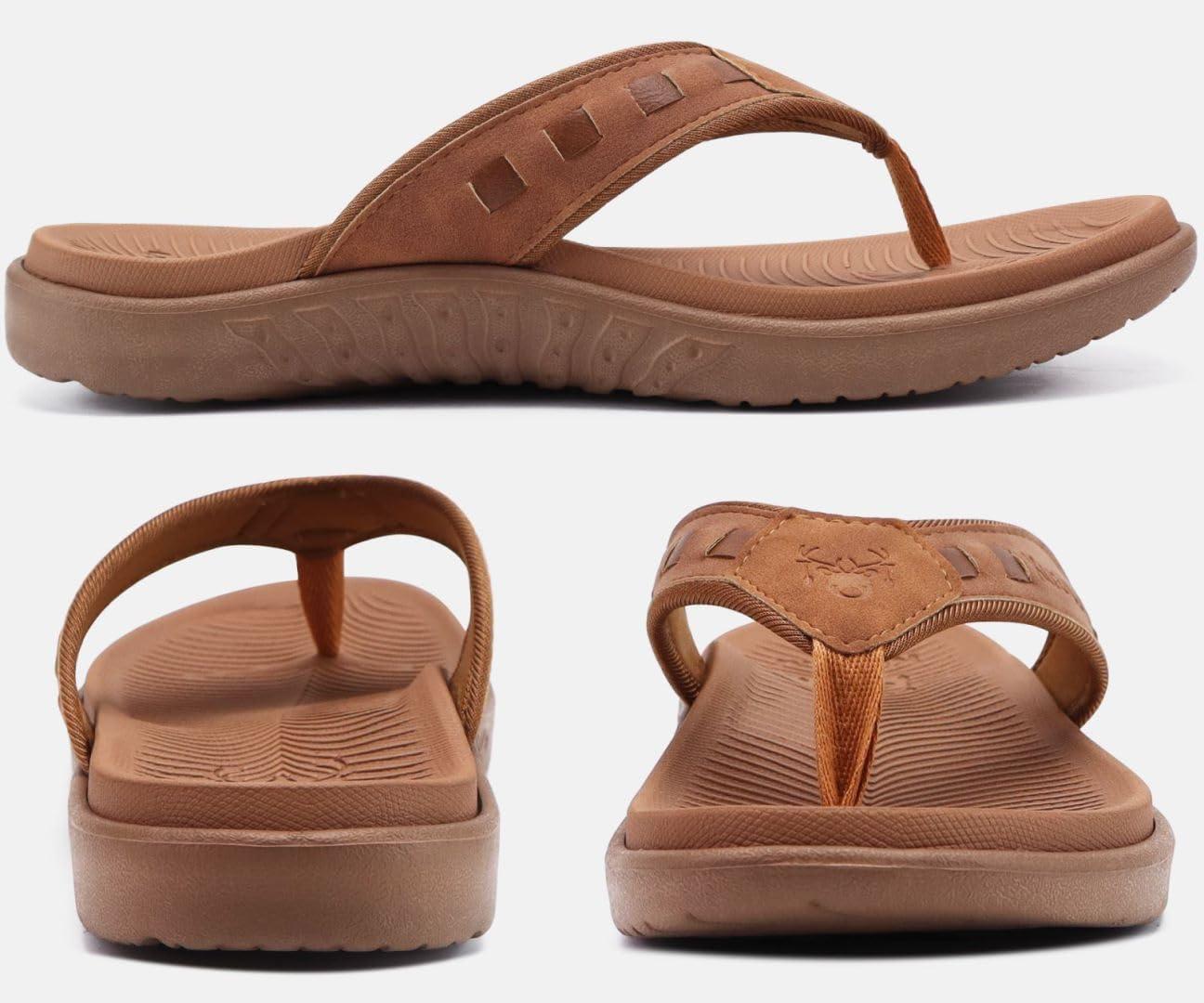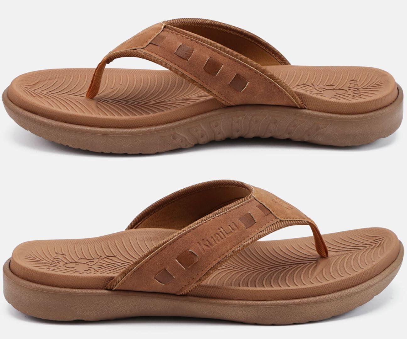 imageKuaiLu Mens Sport Flip Flops Comfort Orthotic Thong Sandals with Plantar Fasciitis Arch Support Outdoor Summer Beach Size 715Fashion Khaki