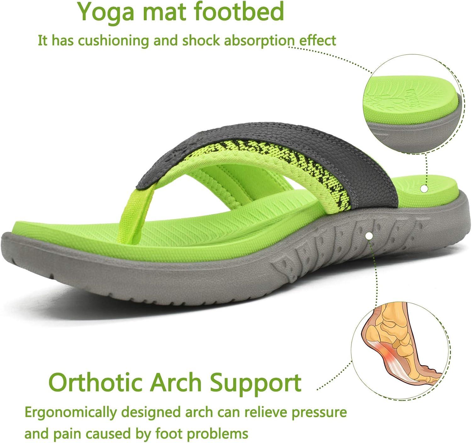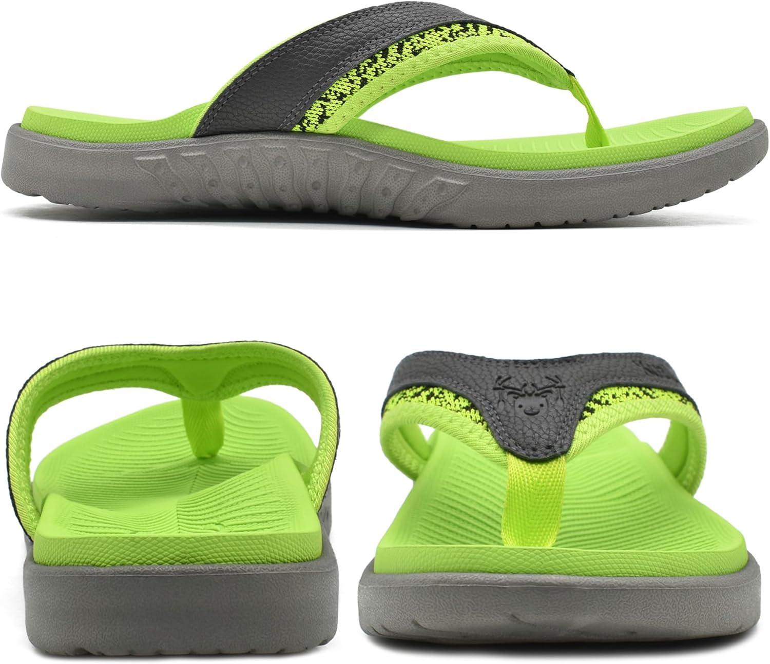 KuaiLu Mens Flip Flops Arch Support Comfortable Summer Beach Thong Sandals Yoga Foam Cushion Slip on Slippers(Black)