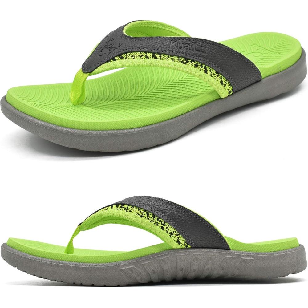 imageKuaiLu Mens Flip Flops Arch Support Comfortable Summer Beach Thong Sandals Yoga Foam Cushion Slip on SlippersBlack