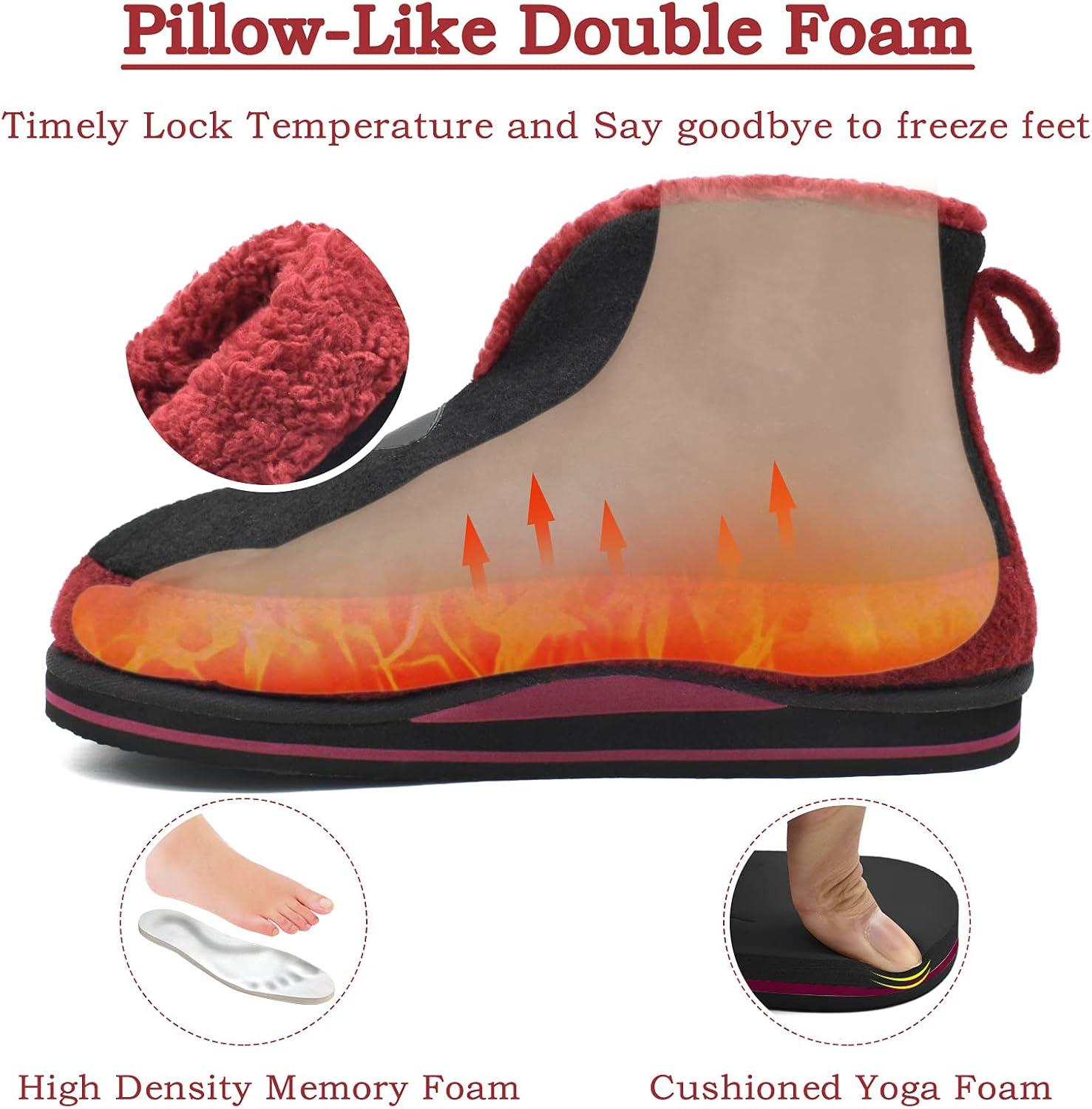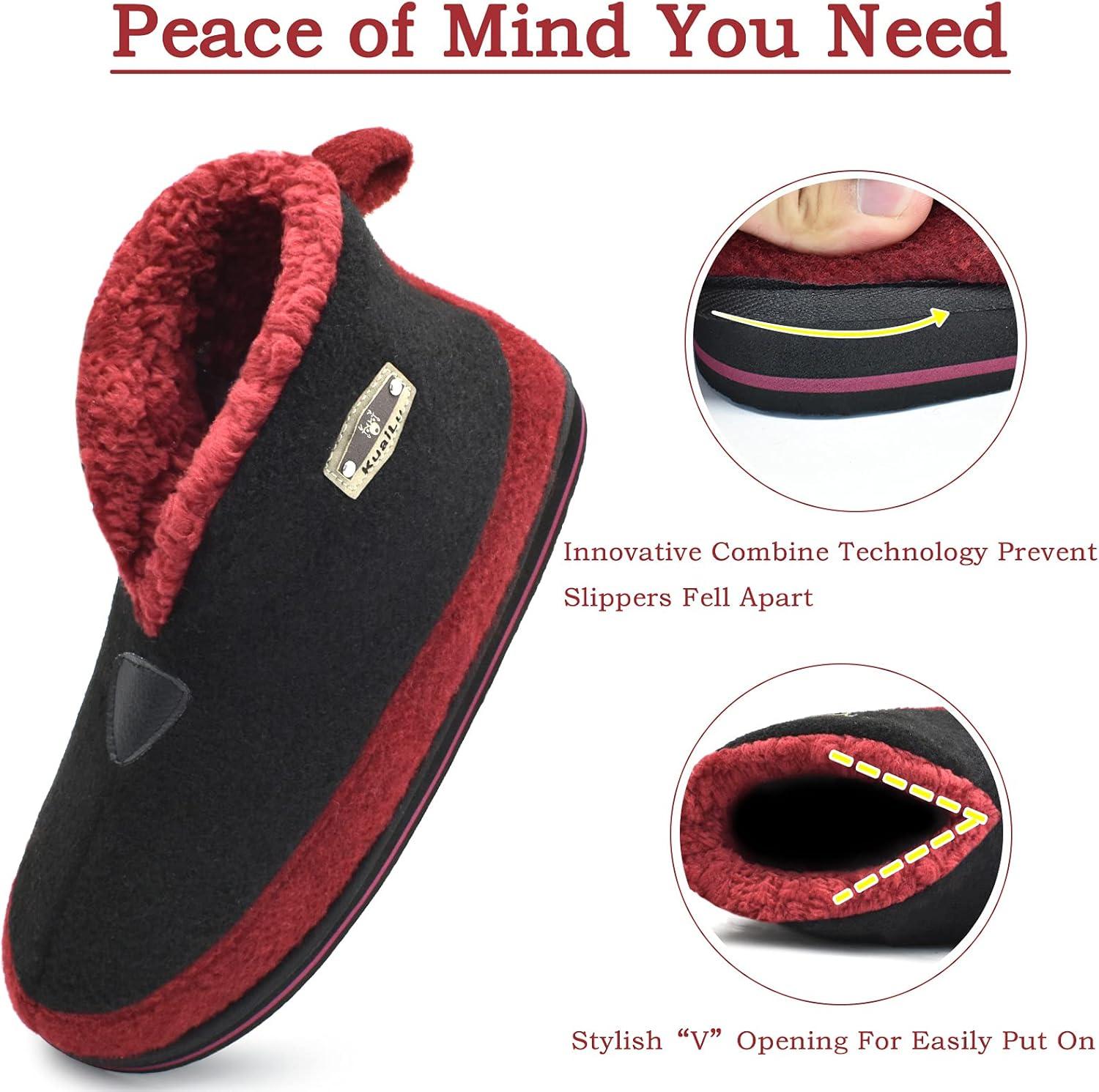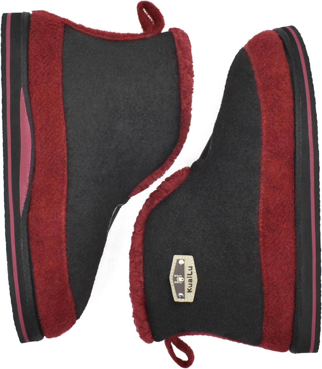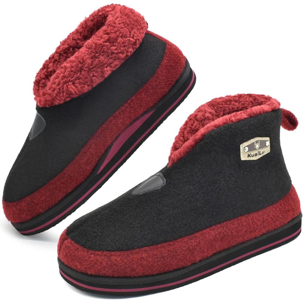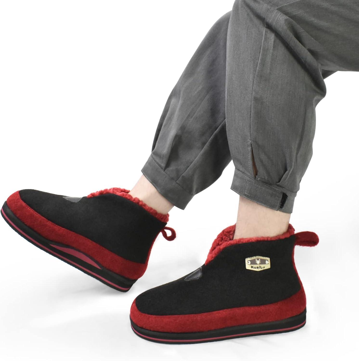 imageKuaiLu Mens Winter Slippers Memory Foam Slipper Boots for Men Cozy Felt Wool House Booties with Warm Sherpa Plush Lining Nonslip Rubber Sole Indoor Outdoor 714Blackred