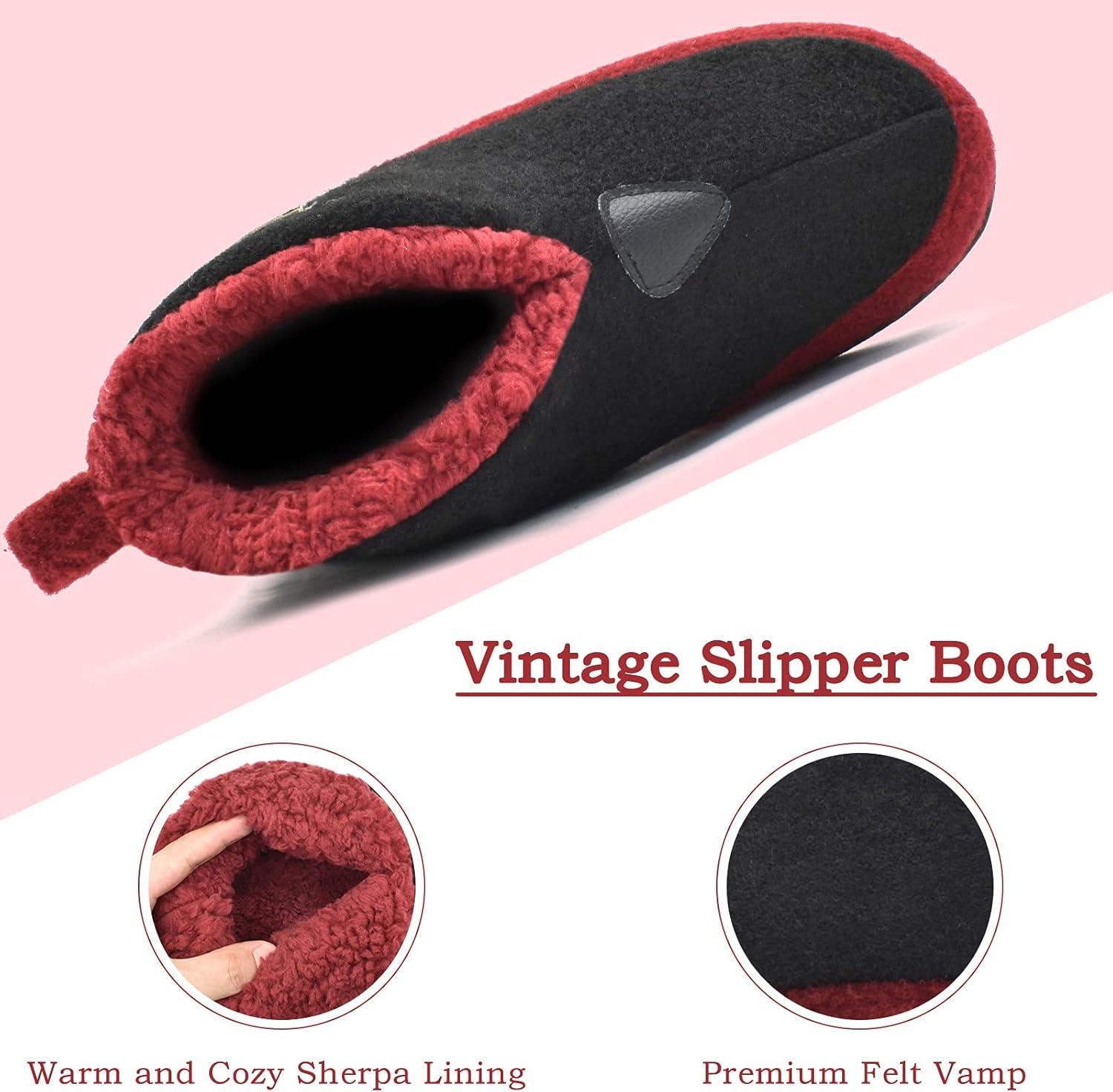 KuaiLu Mens Winter Slippers Memory Foam Slipper Boots for Men Cozy Felt Wool House Booties with Warm Sherpa Plush Lining Non-slip Rubber Sole Indoor Outdoor 7-14(Black-red)