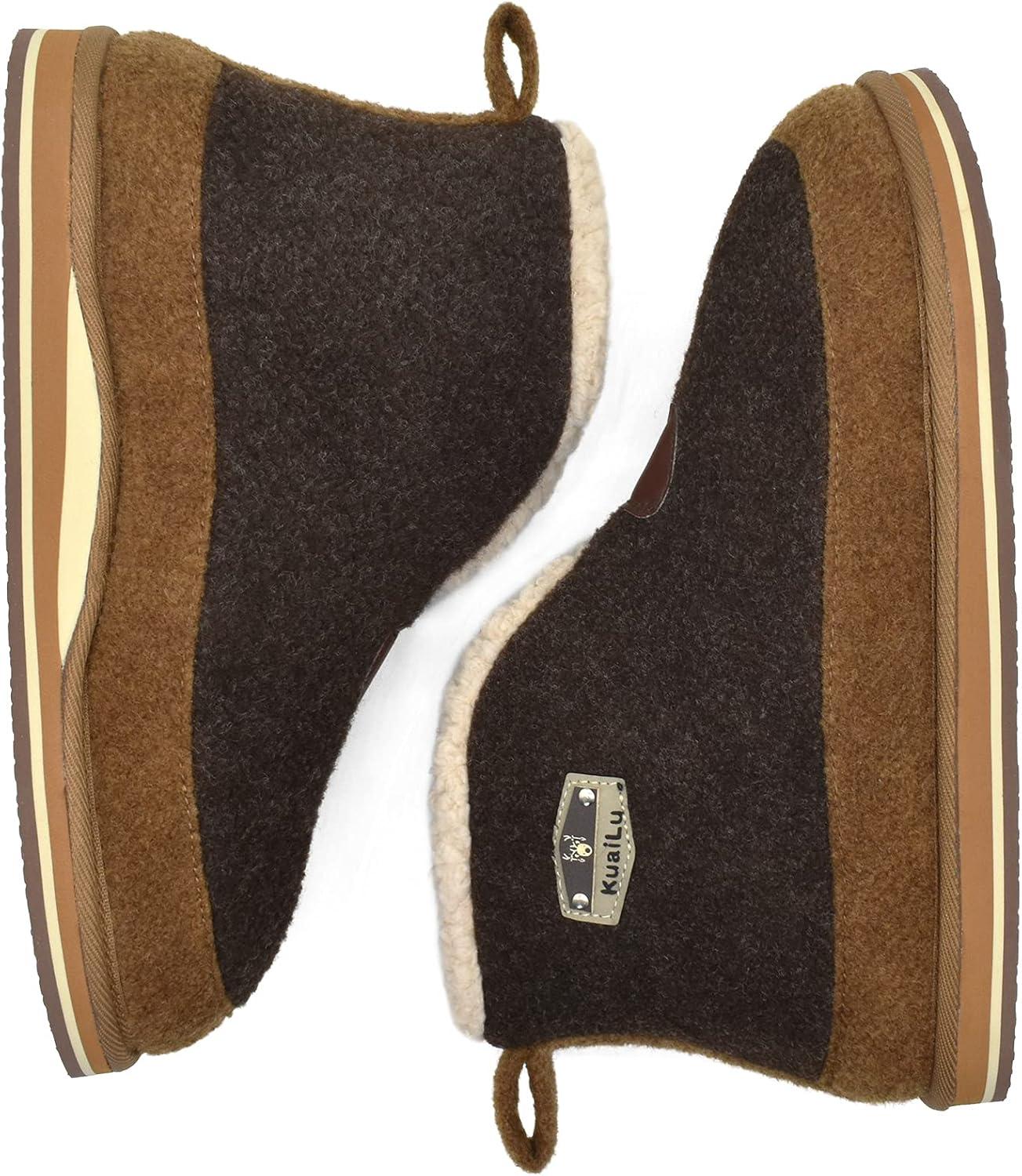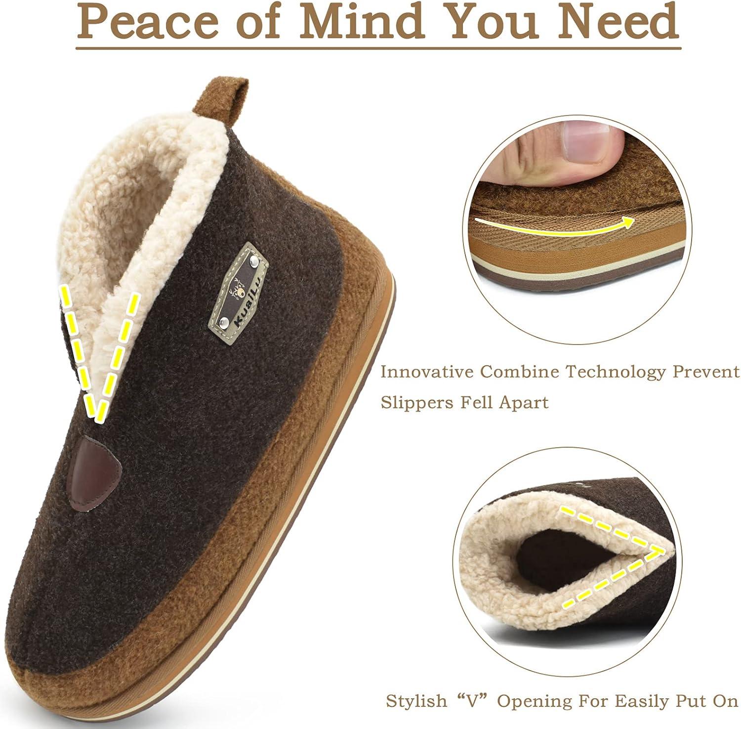 imageKuaiLu Mens Winter Slippers Memory Foam Slipper Boots for Men Cozy Felt Wool House Booties with Warm Sherpa Plush Lining Nonslip Rubber Sole Indoor Outdoor 714Brown