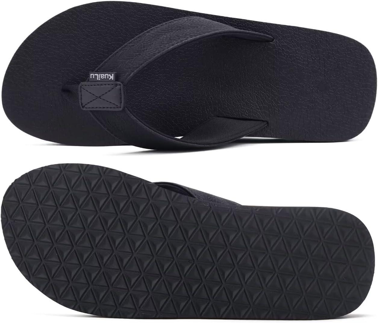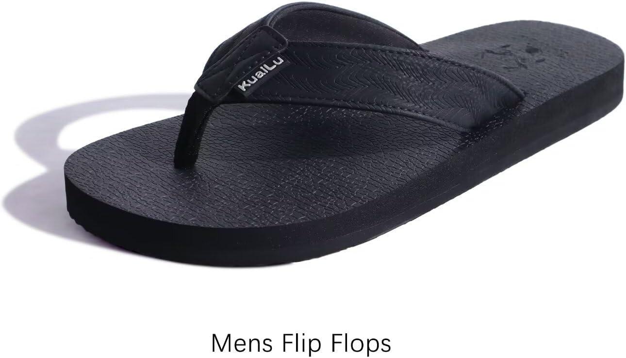 KuaiLu Men’s Yoga Mat Leather Flip Flops with Arch Support Comfortable Cushion Walking Thong Sandals Slip On Indoor Outdoor(Coal Black)