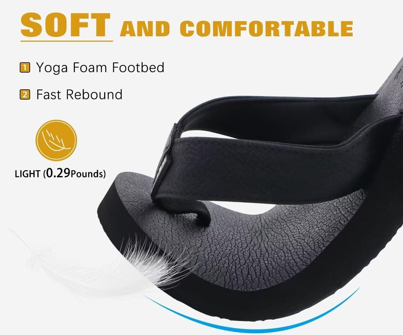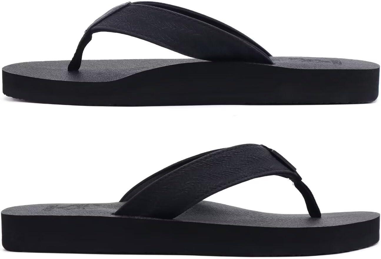 KuaiLu Men's Yoga Mat Leather Flip Flops with Arch Support Comfortable Cushion Walking Thong Sandals Slip On Indoor Outdoor(Coal Black)
