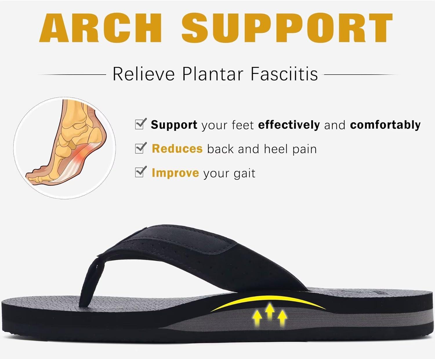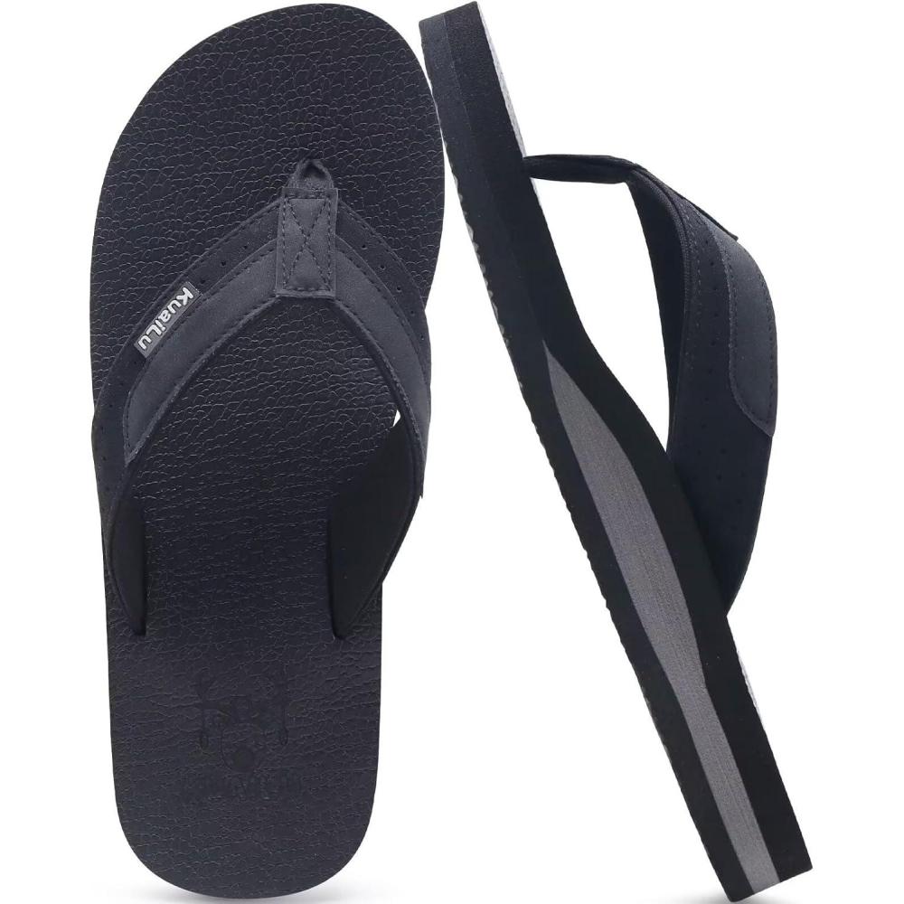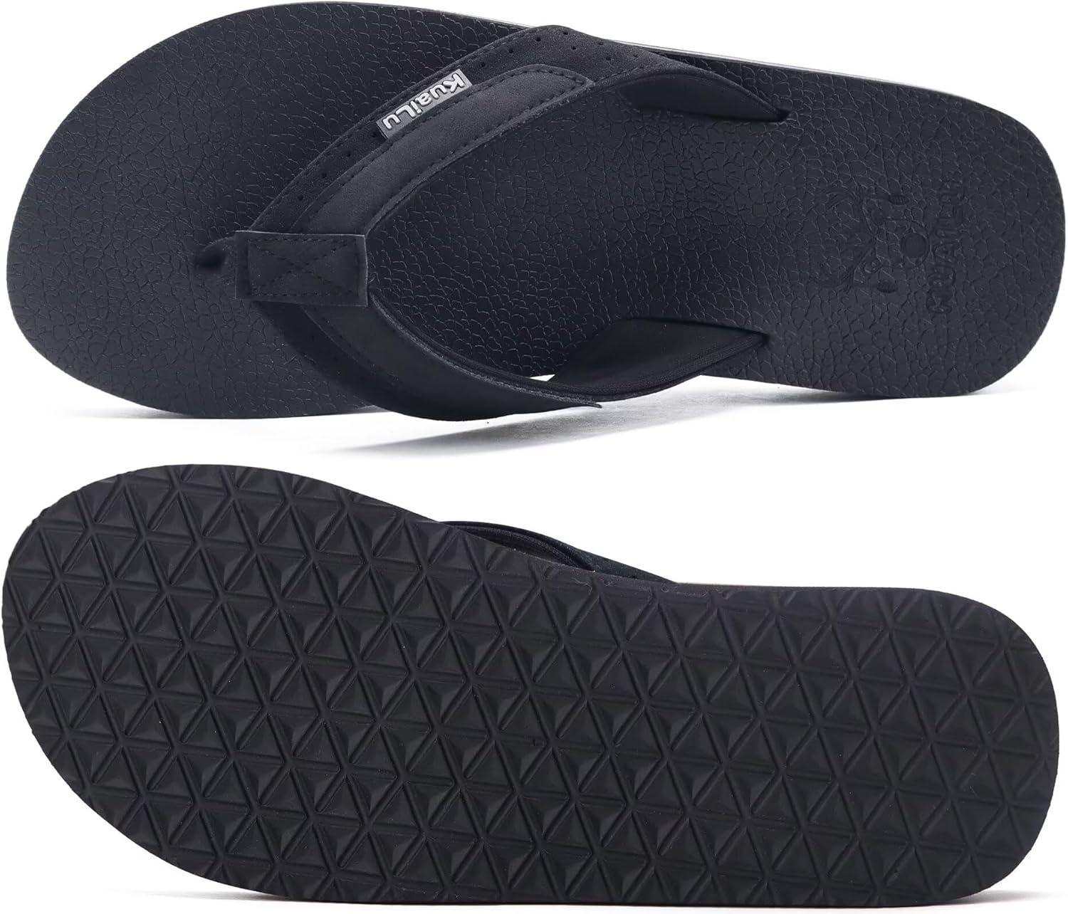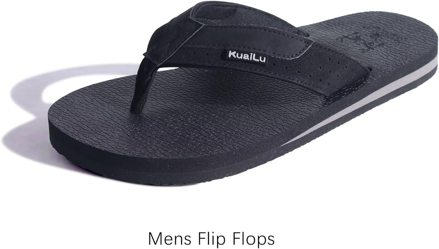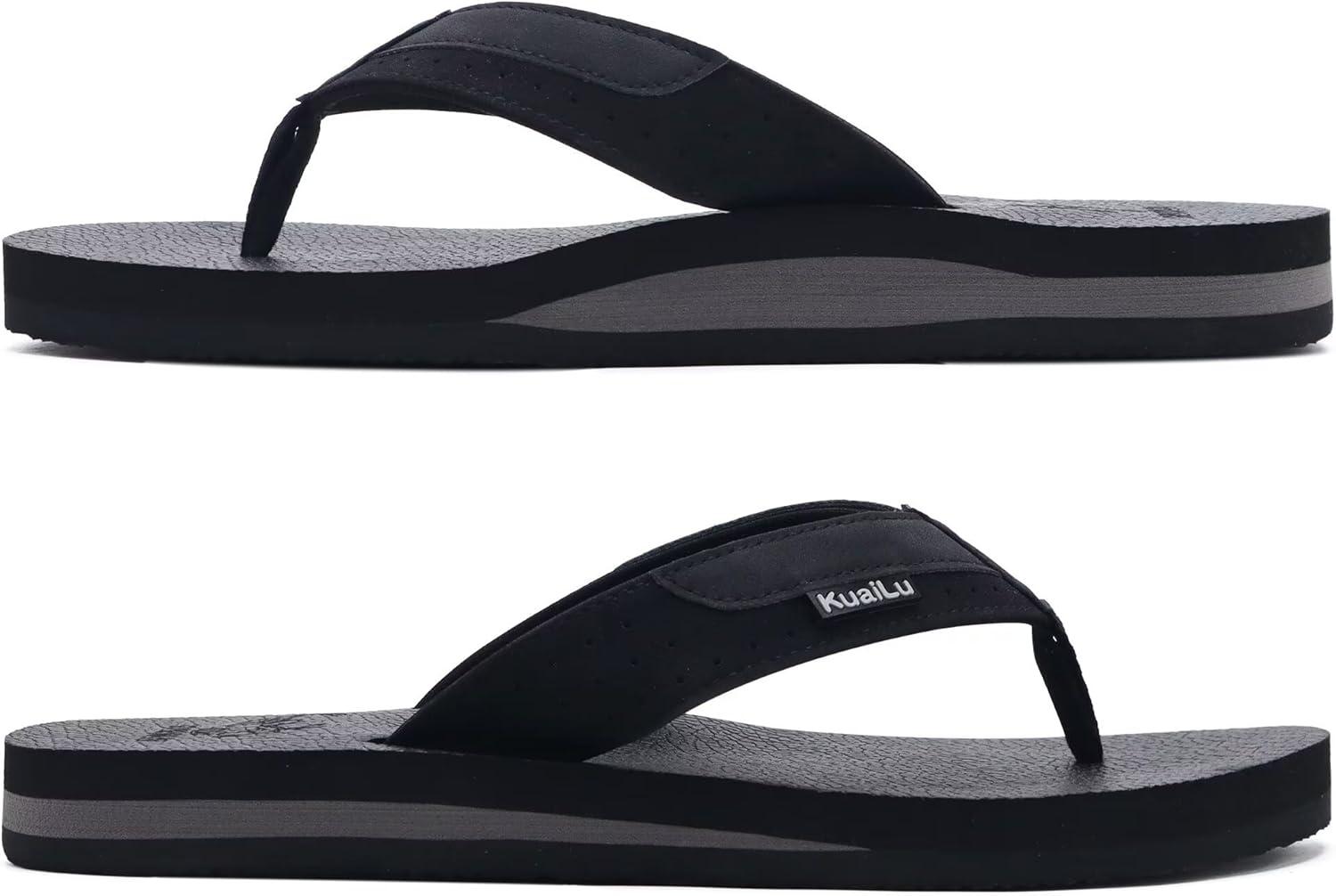 KuaiLu Men’s Yoga Mat Leather Flip Flops with Arch Support Comfortable Cushion Walking Thong Sandals Slip On Indoor Outdoor(Dark Grey)
