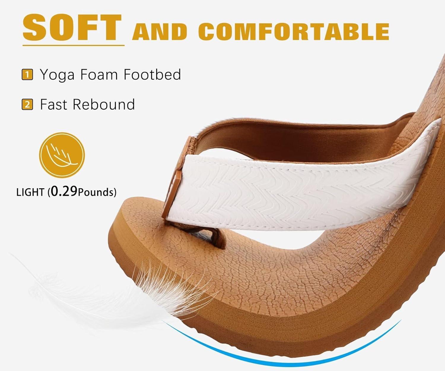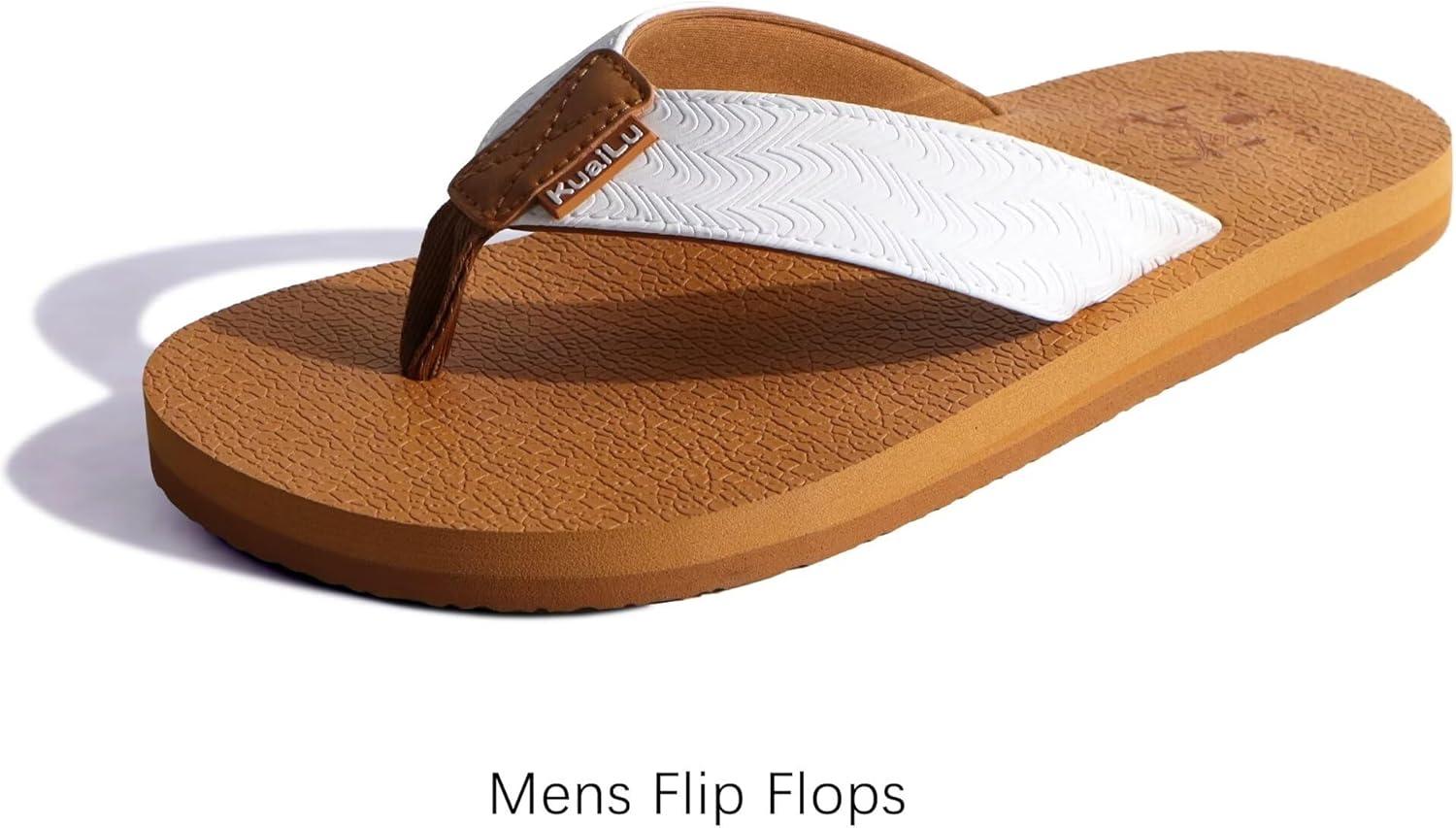 imageKuaiLu Mens Yoga Mat Leather Flip Flops with Arch Support Comfortable Cushion Walking Thong Sandals Slip On Indoor OutdoorKhaki White