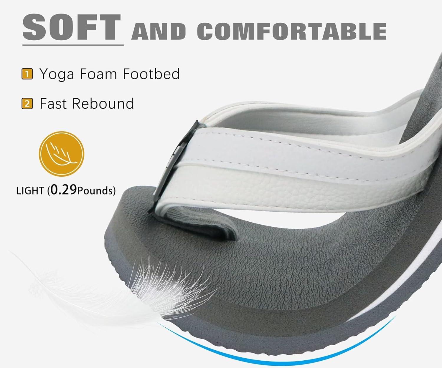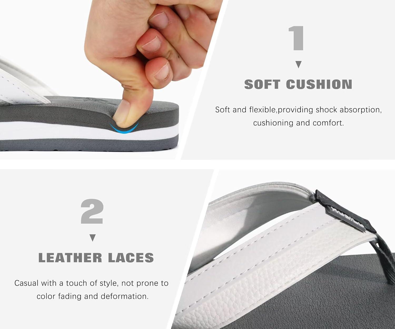 Get up to 70% off on KuaiLu Men’s Yoga Mat Leather Flip Flops with Arch Support Comfortable Cushion Walking Thong Sandals Slip On Indoor Outdoor(White Grey) styles during our end-of-season clearance event.